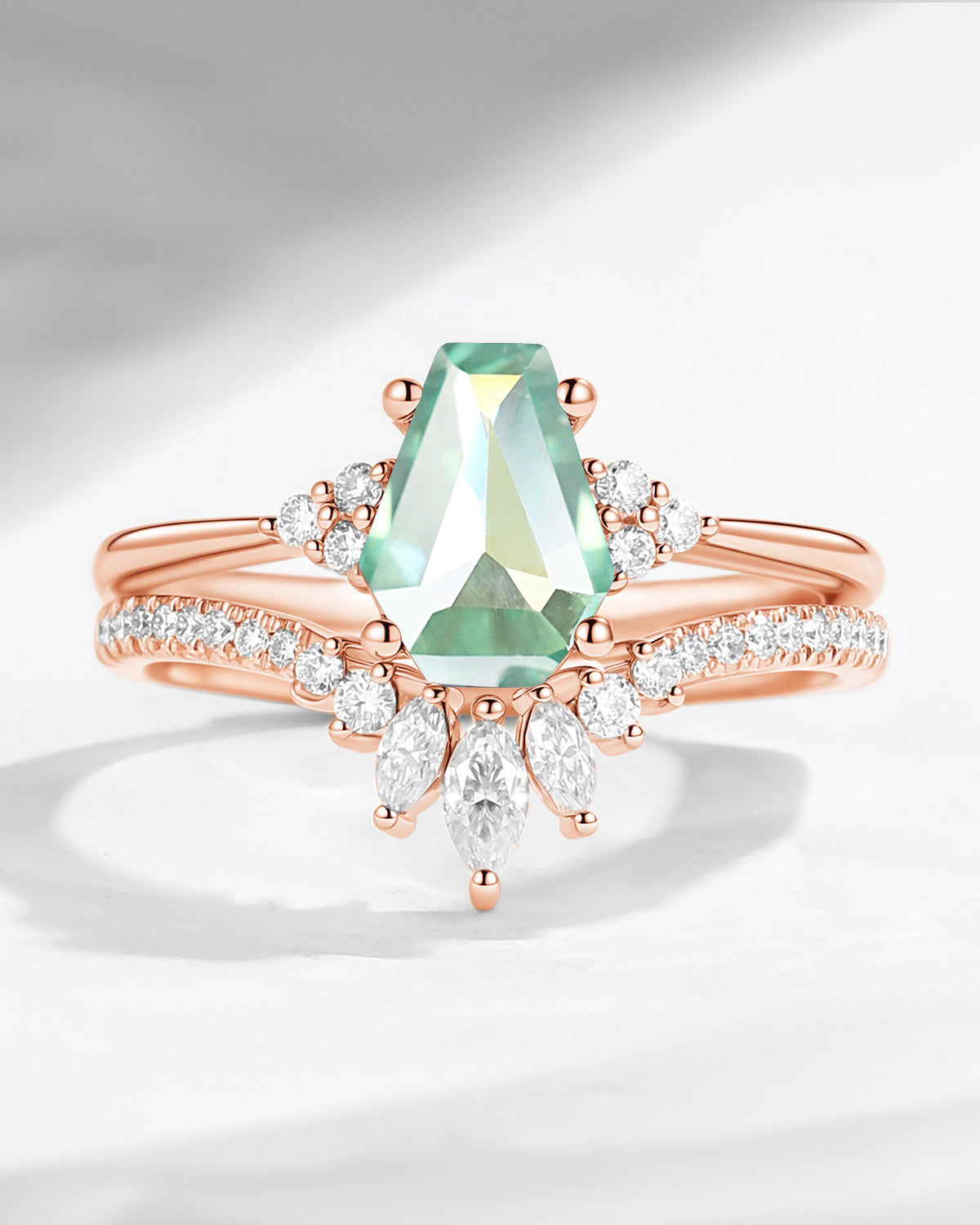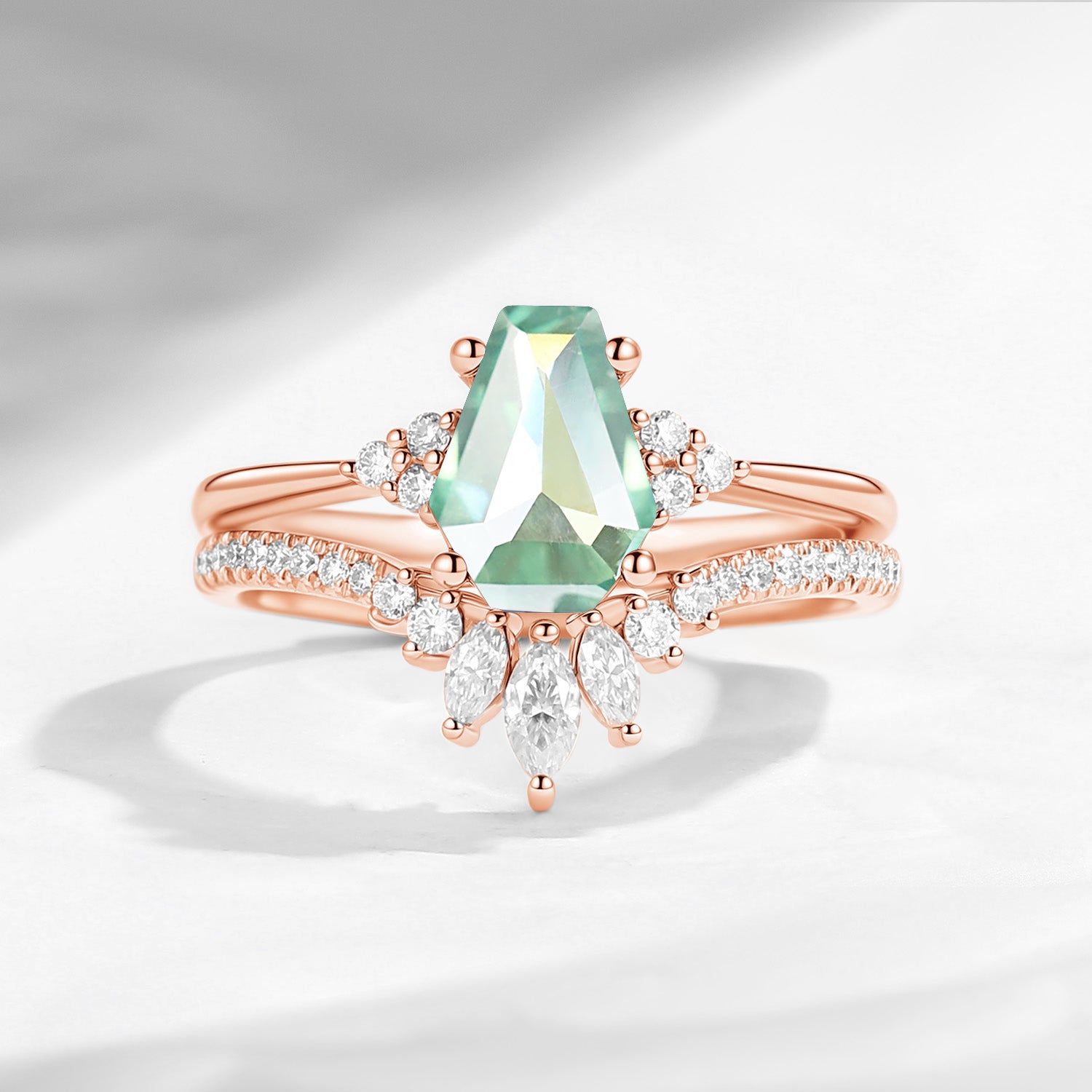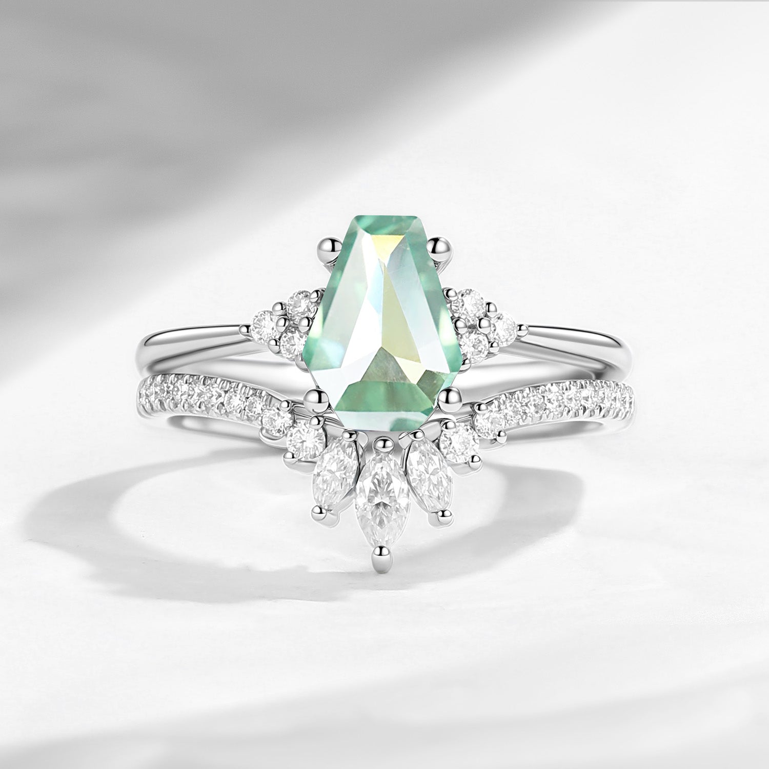 Kite Cut Mint Moissanite Engagement Ring Set 2pcs - Electra