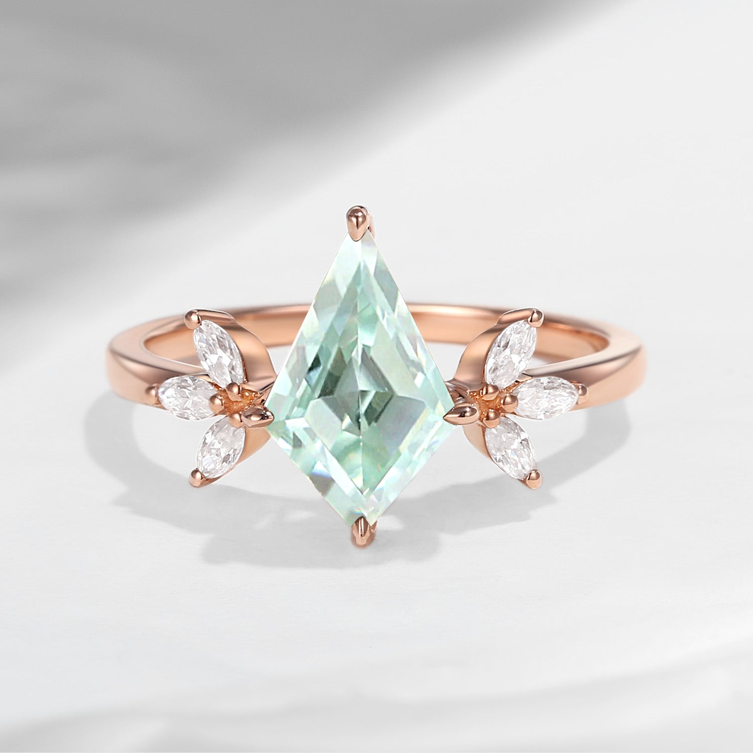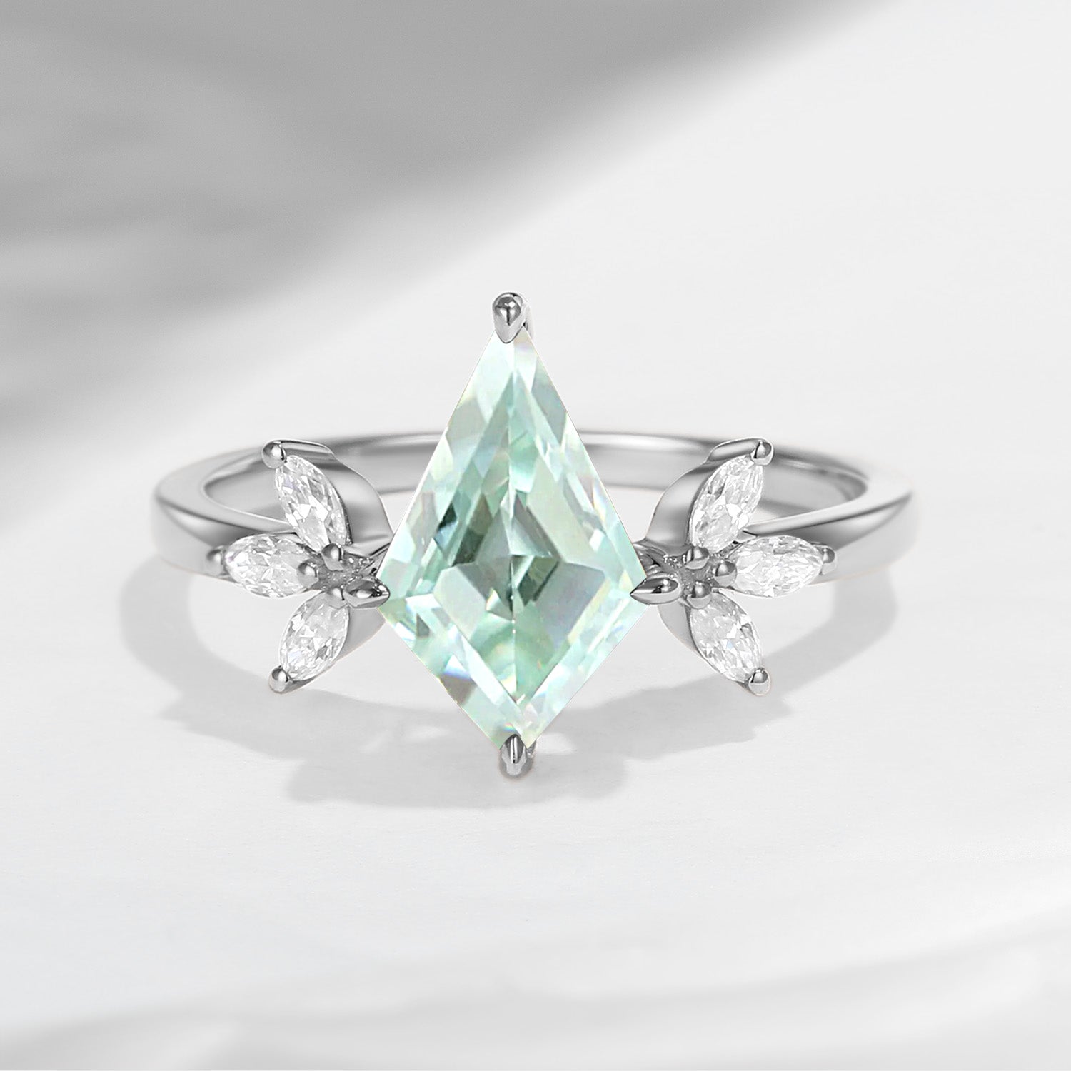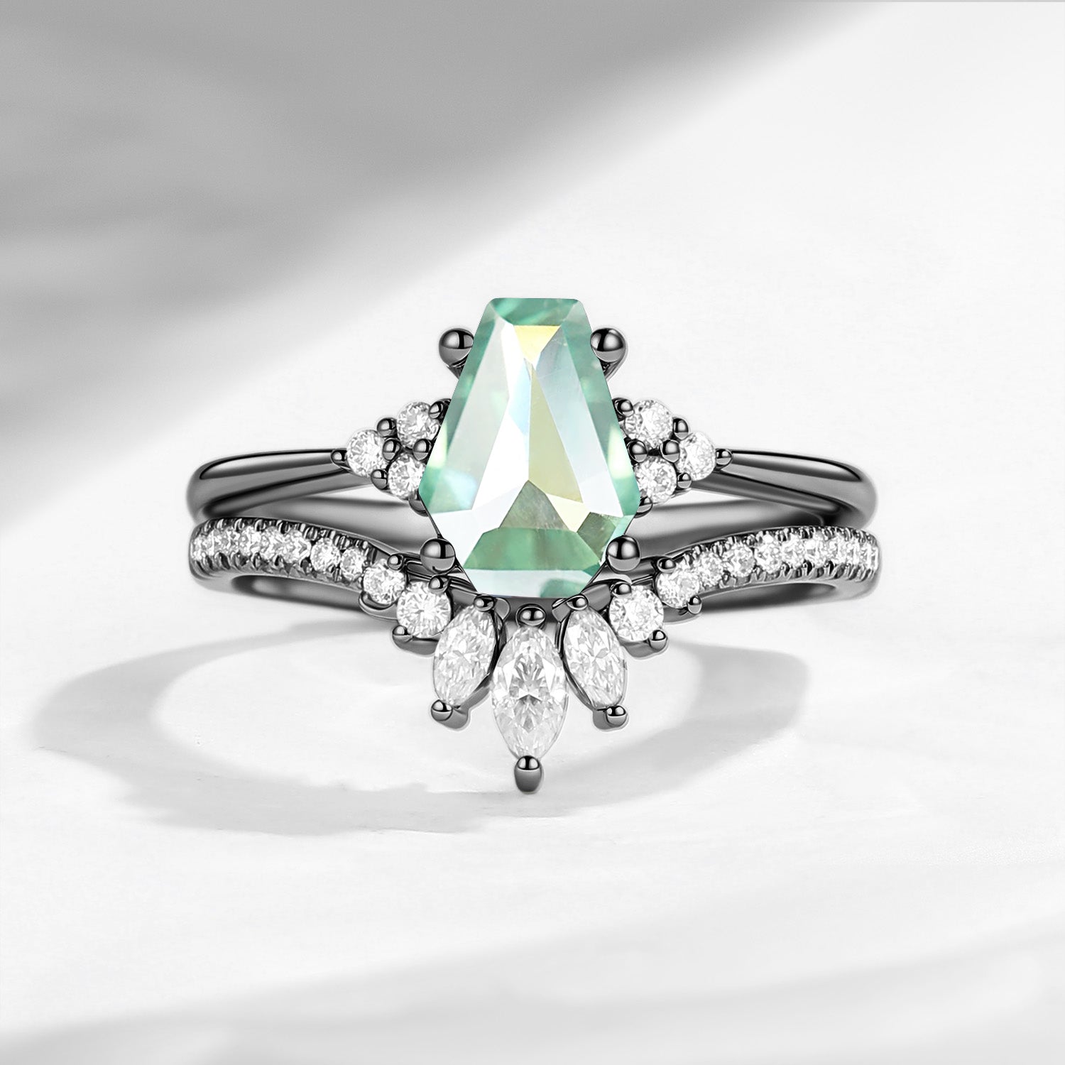 Kite Cut Mint Moissanite Engagement Ring Set 2pcs - Electra