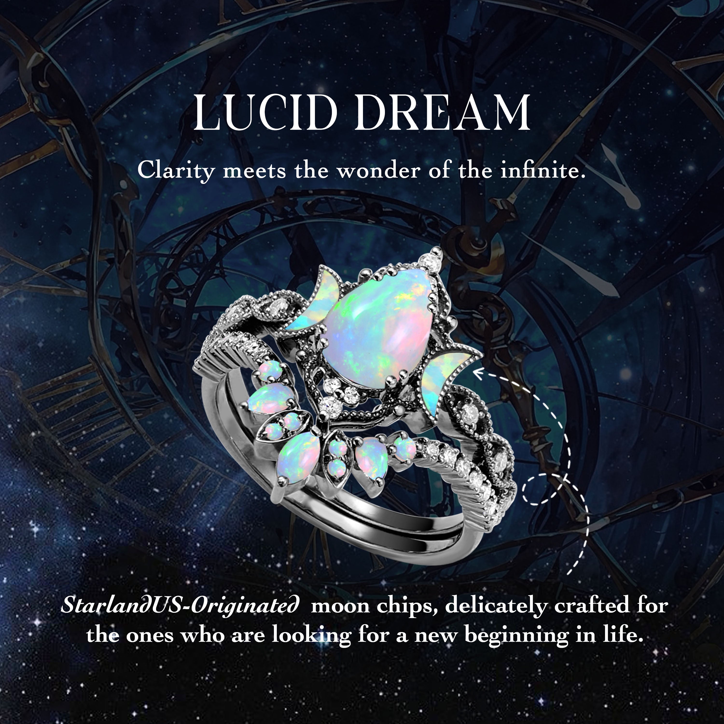 Crescent Moon | Pear Cut Natural Opal 'Ultra Galaxy' Engagement Ring Set 2pcs