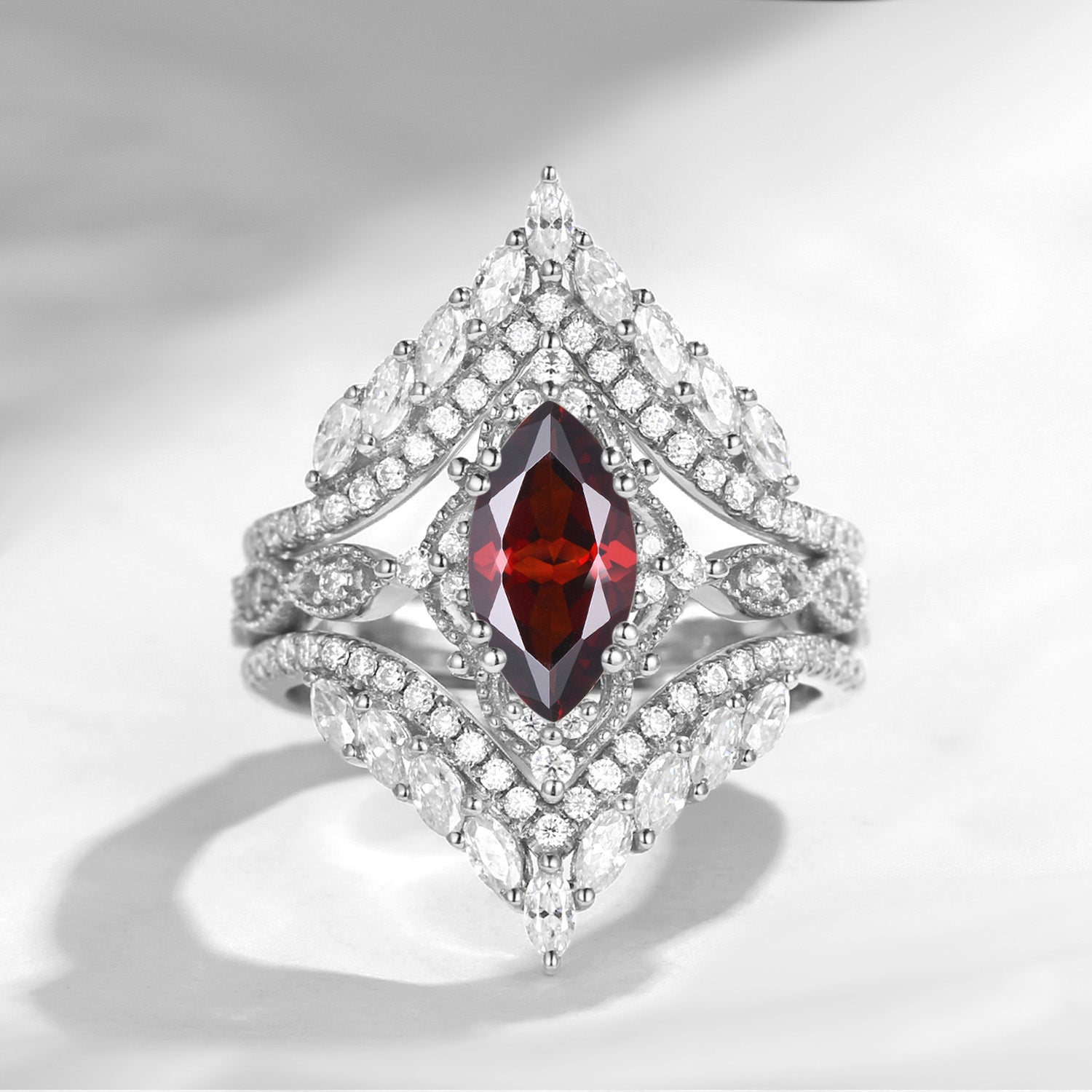 Vintage Style Marquise Garnet Cage Ring 2pcs
