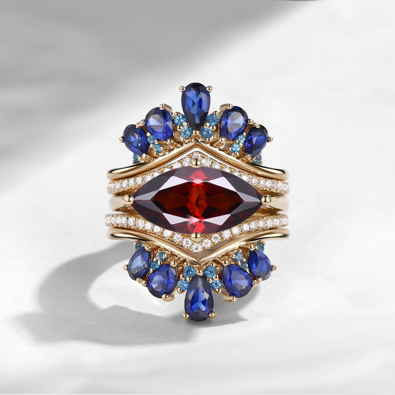 Maximalist Vintage Marquise Garnet 'Royal Extravaganza' Ring Set 5pcs