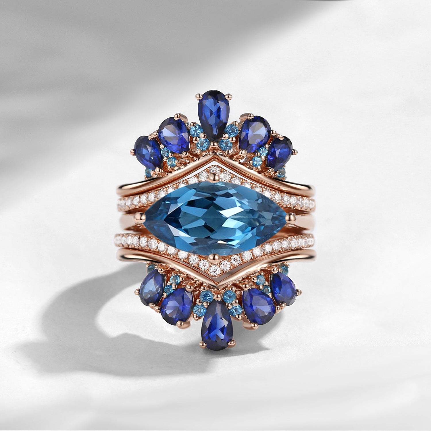 Maximalist Vintage Marquise Blue Topaz 'Royal Extravaganza' Ring Set 5pcs