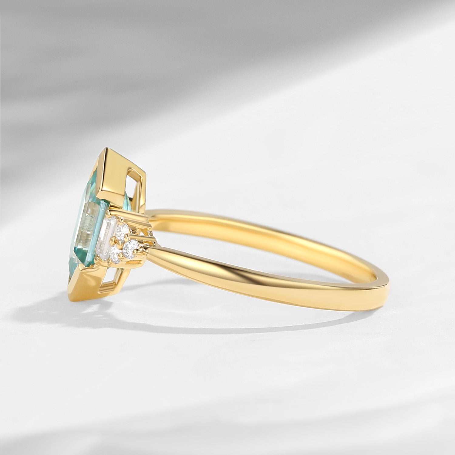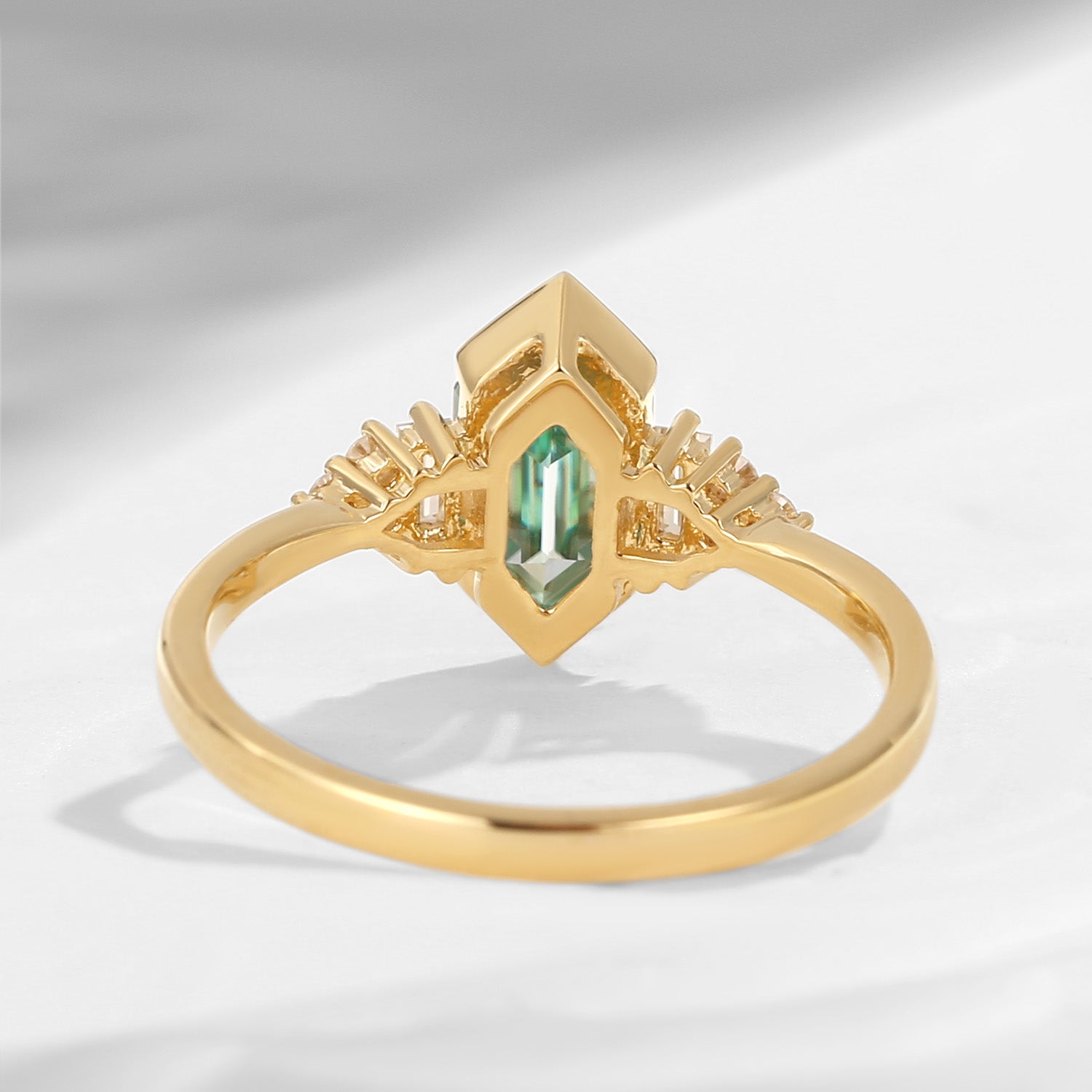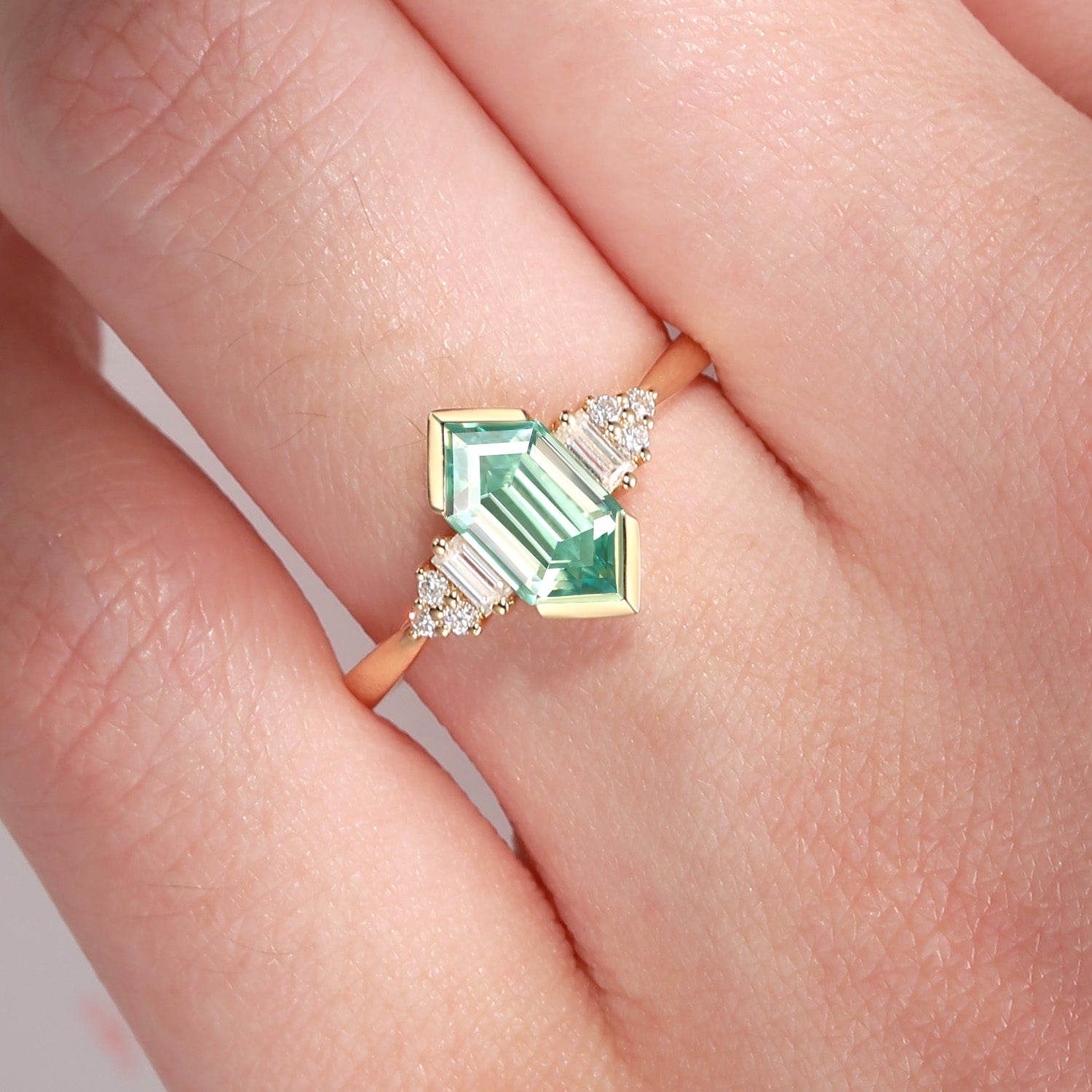 Long Hexagon Mint Moissanite Vintage Cluster Ring