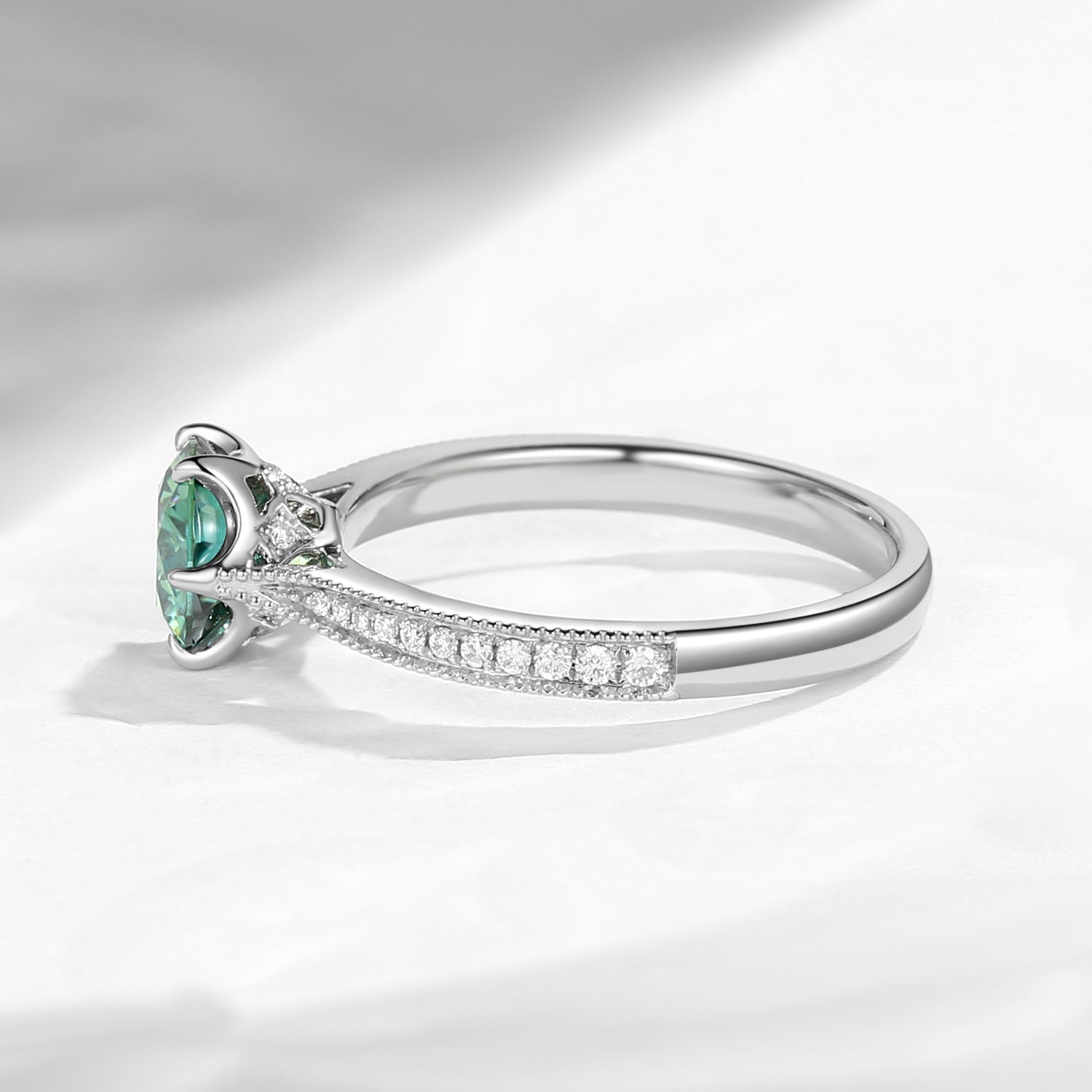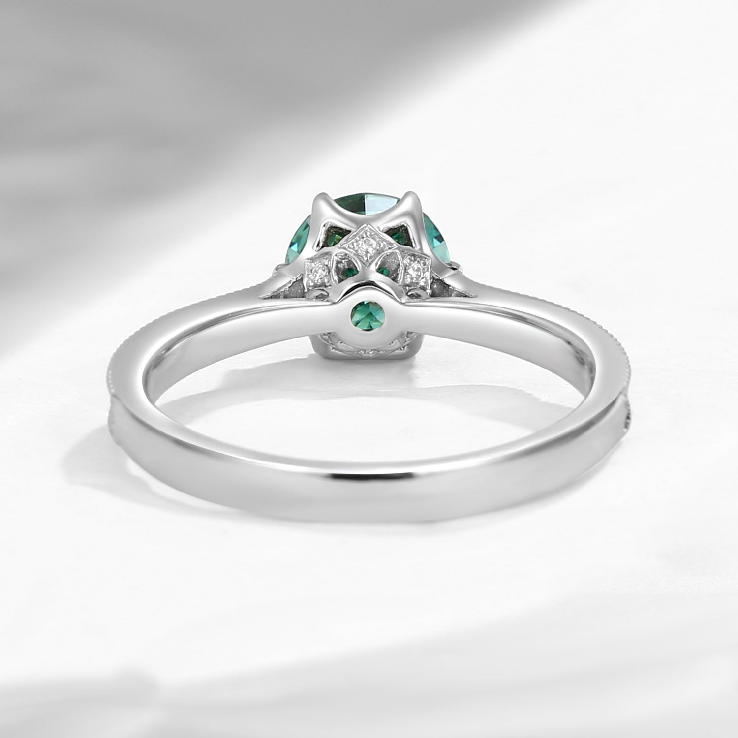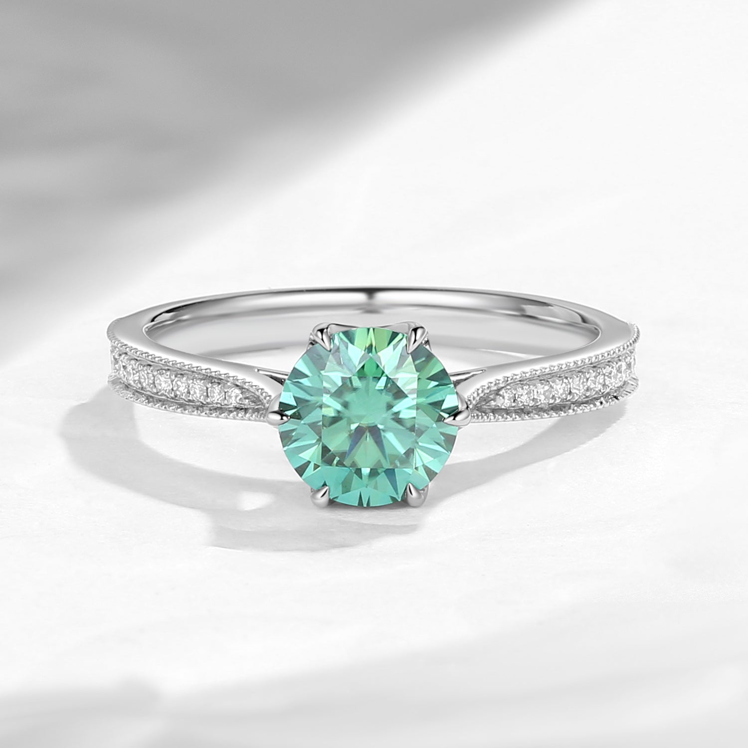 Long Hexagon Mint Moissanite Vintage Cluster Ring