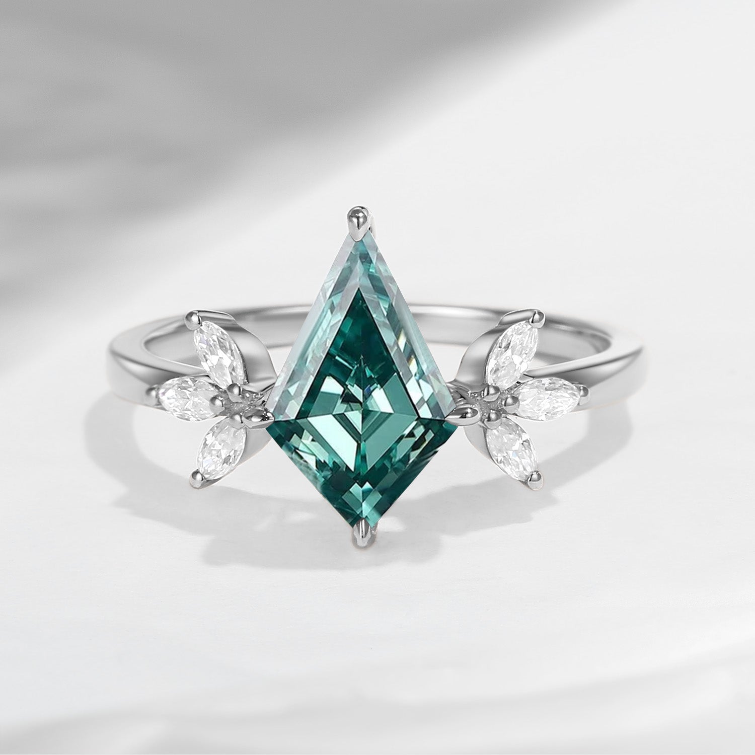 Unique Kite Shaped Teal Moissanite Butterfly Engagement Ring
