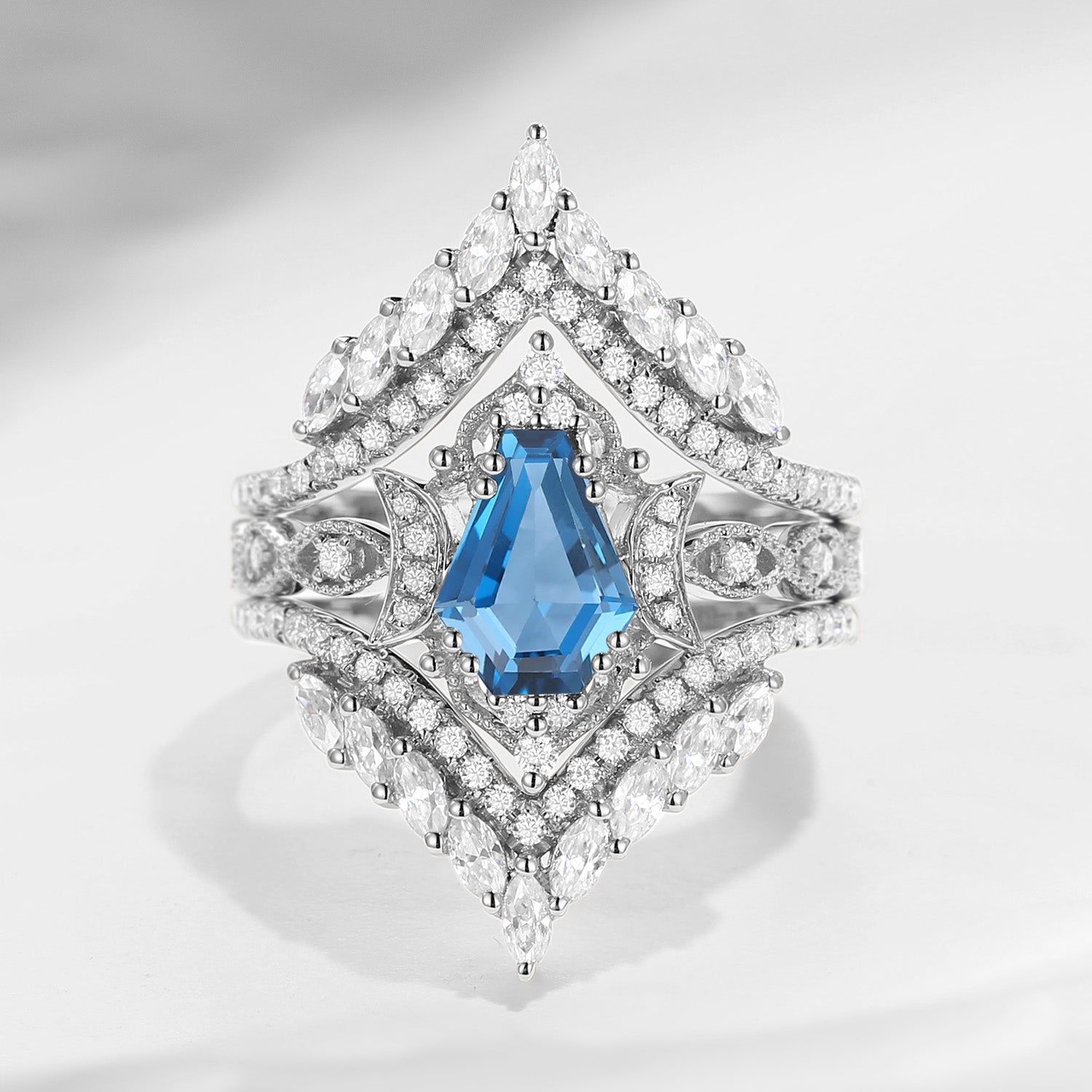Kite Cut Teal Moissanite Engagement Ring Set 2pcs - Electra