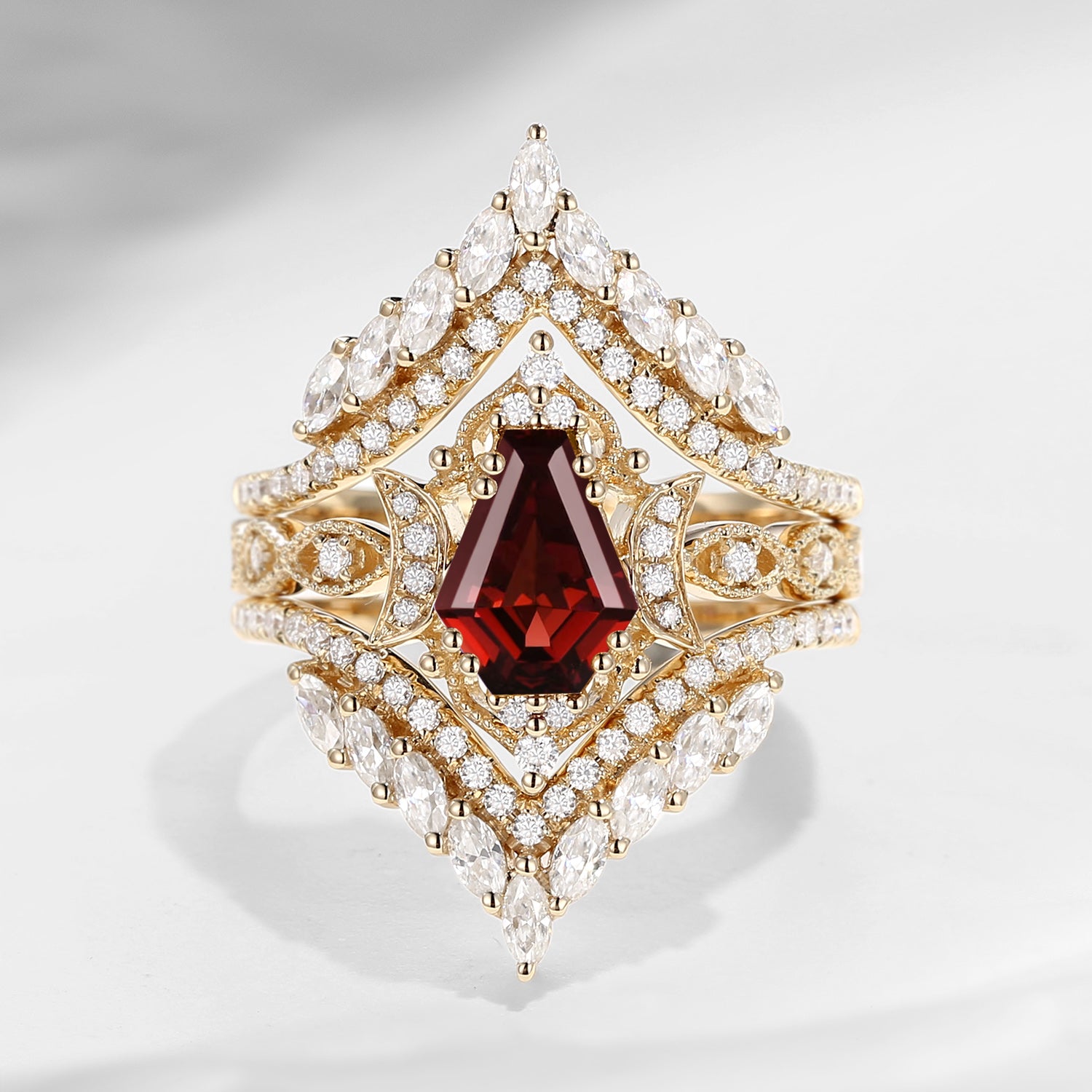 Crescent Moon | Vintage Coffin Cut Garnet Engagement Ring Jacket 2pcs - Guardian Angel