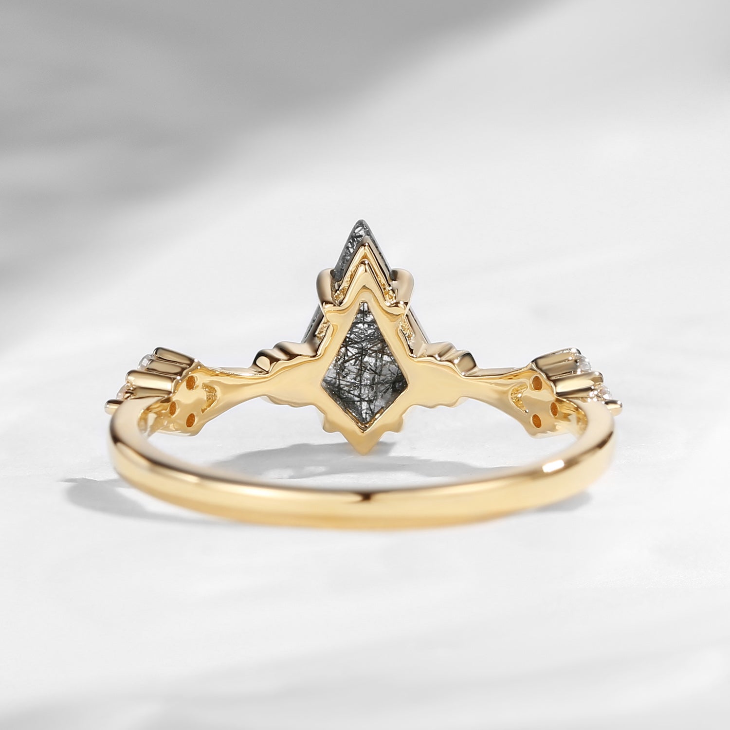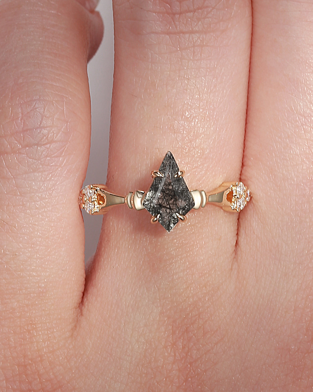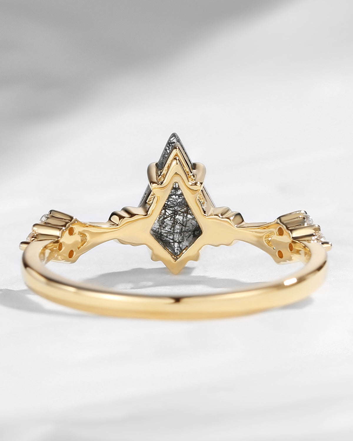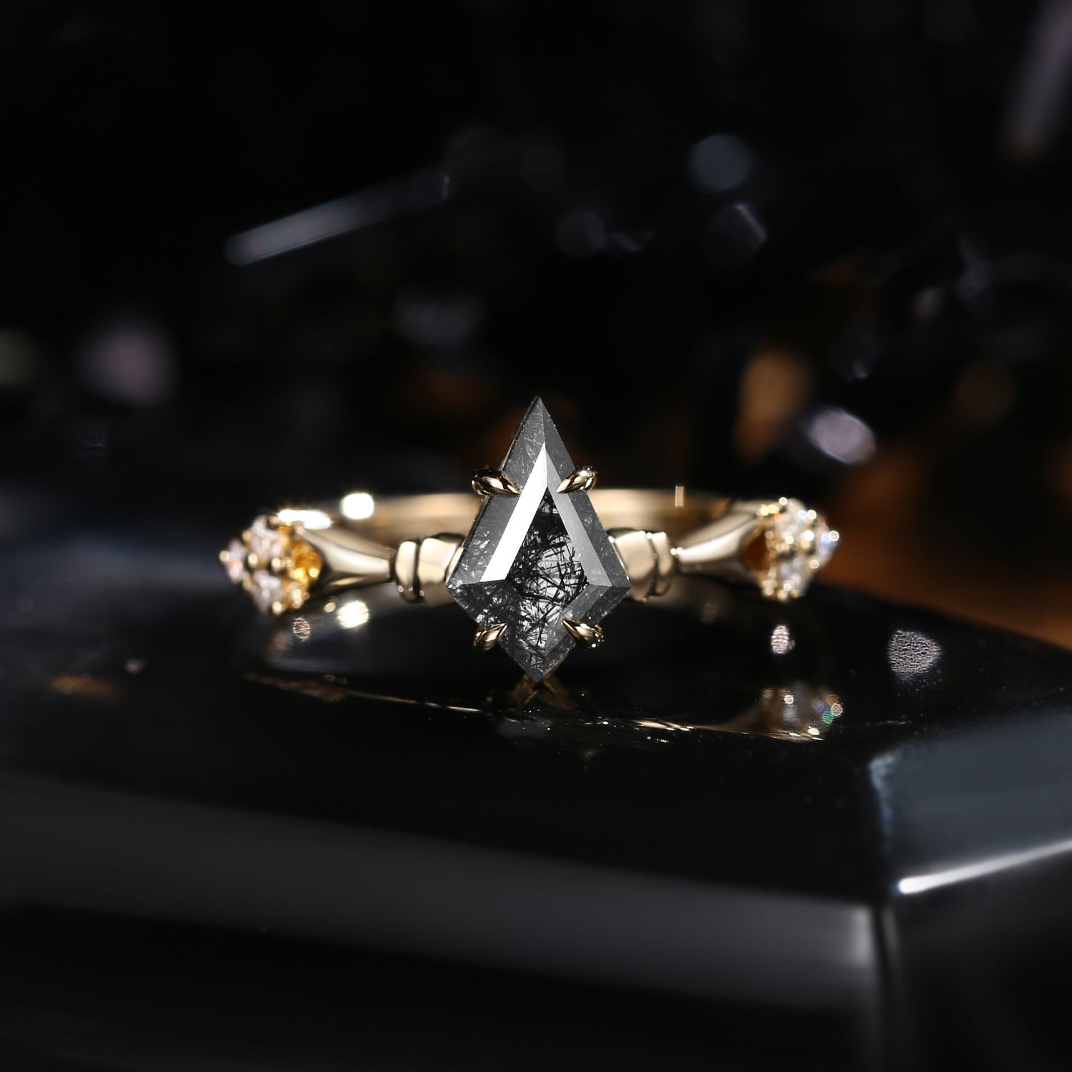 Vintage Inspired Kite Cut Black Rutilated Quartz Engagement Ring