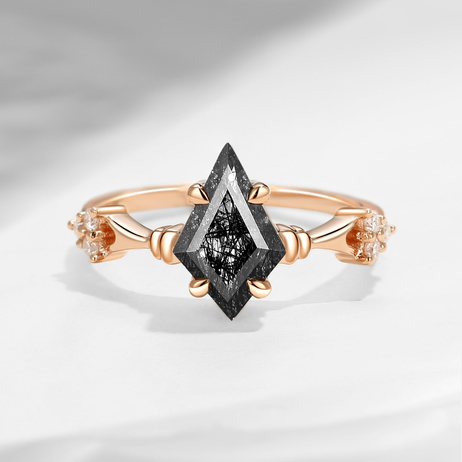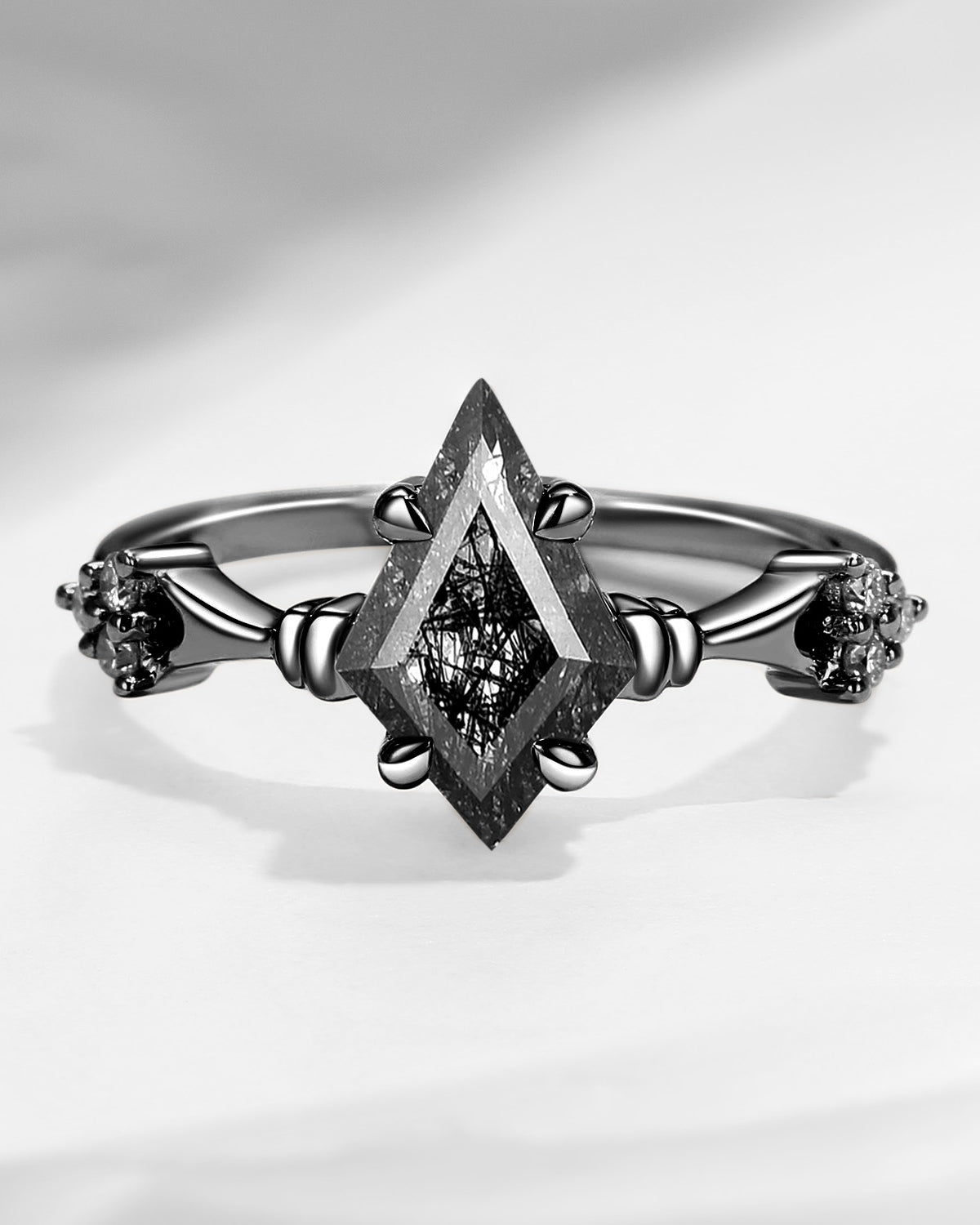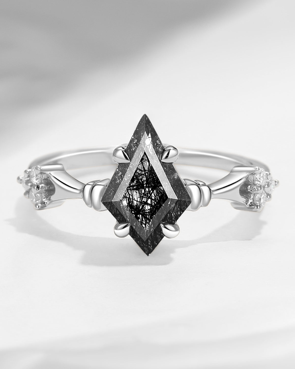Vintage Inspired Kite Cut Black Rutilated Quartz Engagement Ring