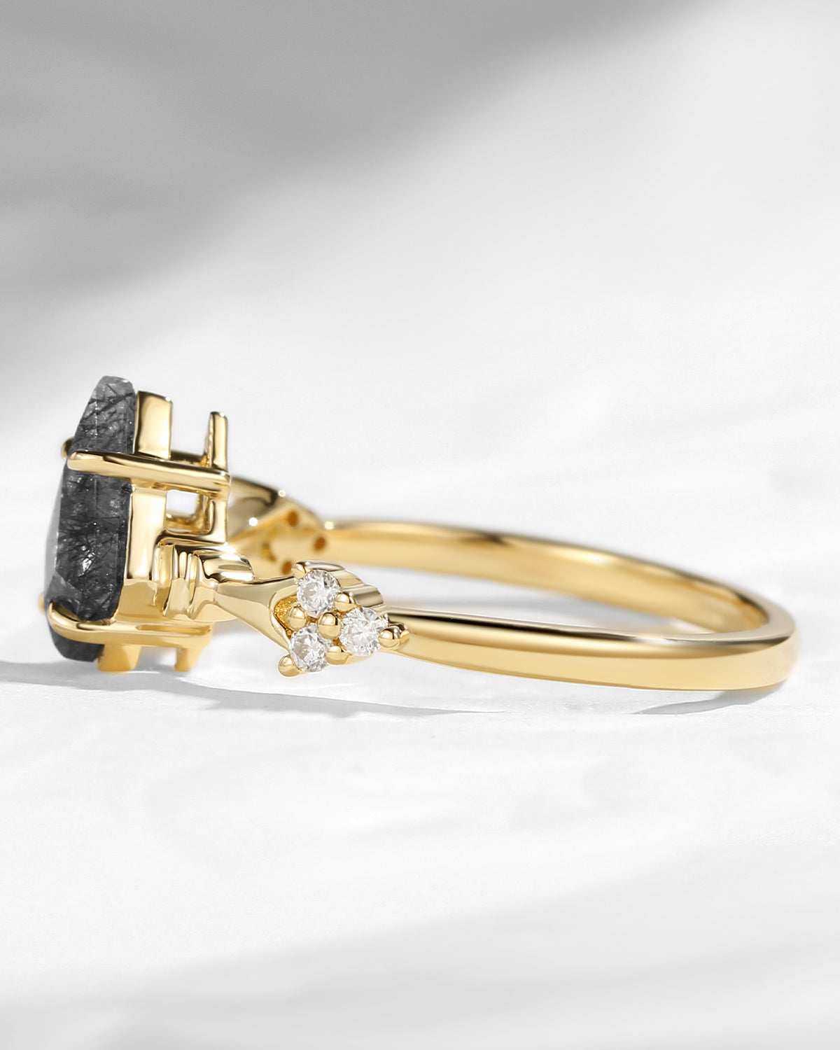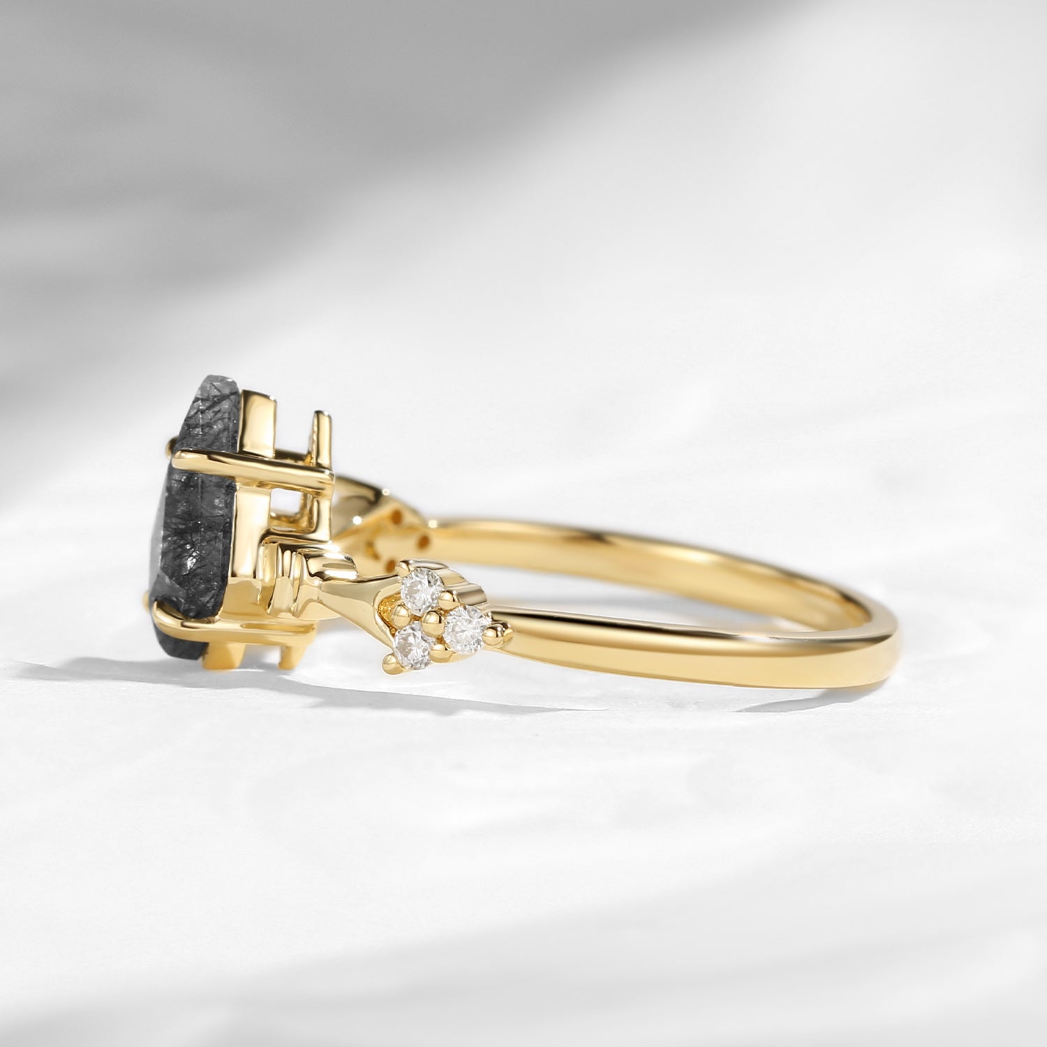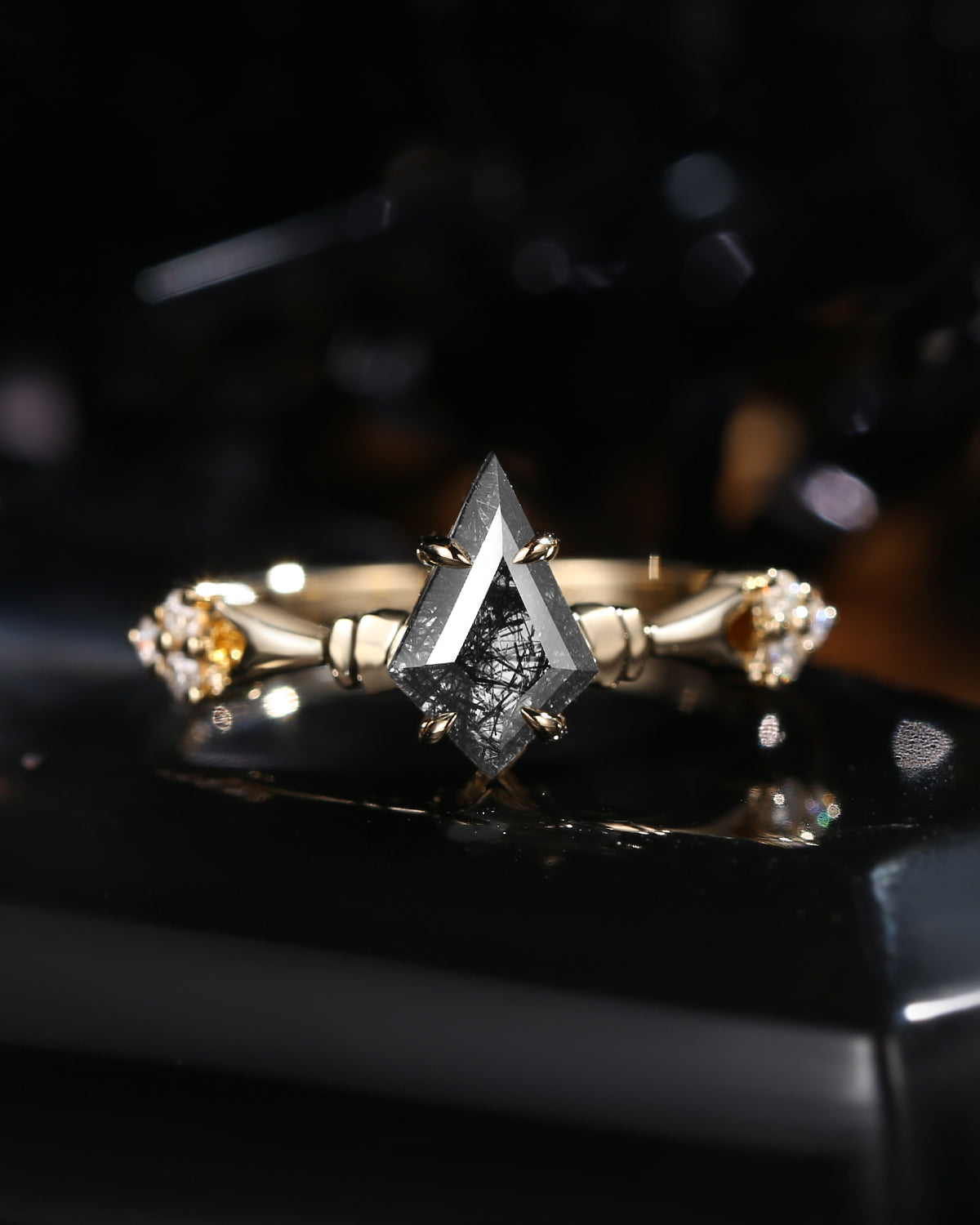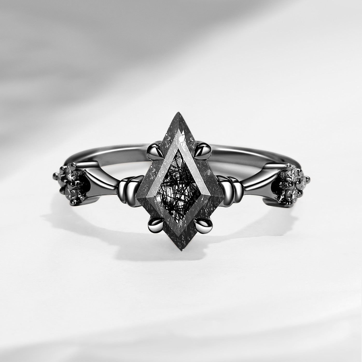 Vintage Inspired Kite Cut Black Rutilated Quartz Engagement Ring