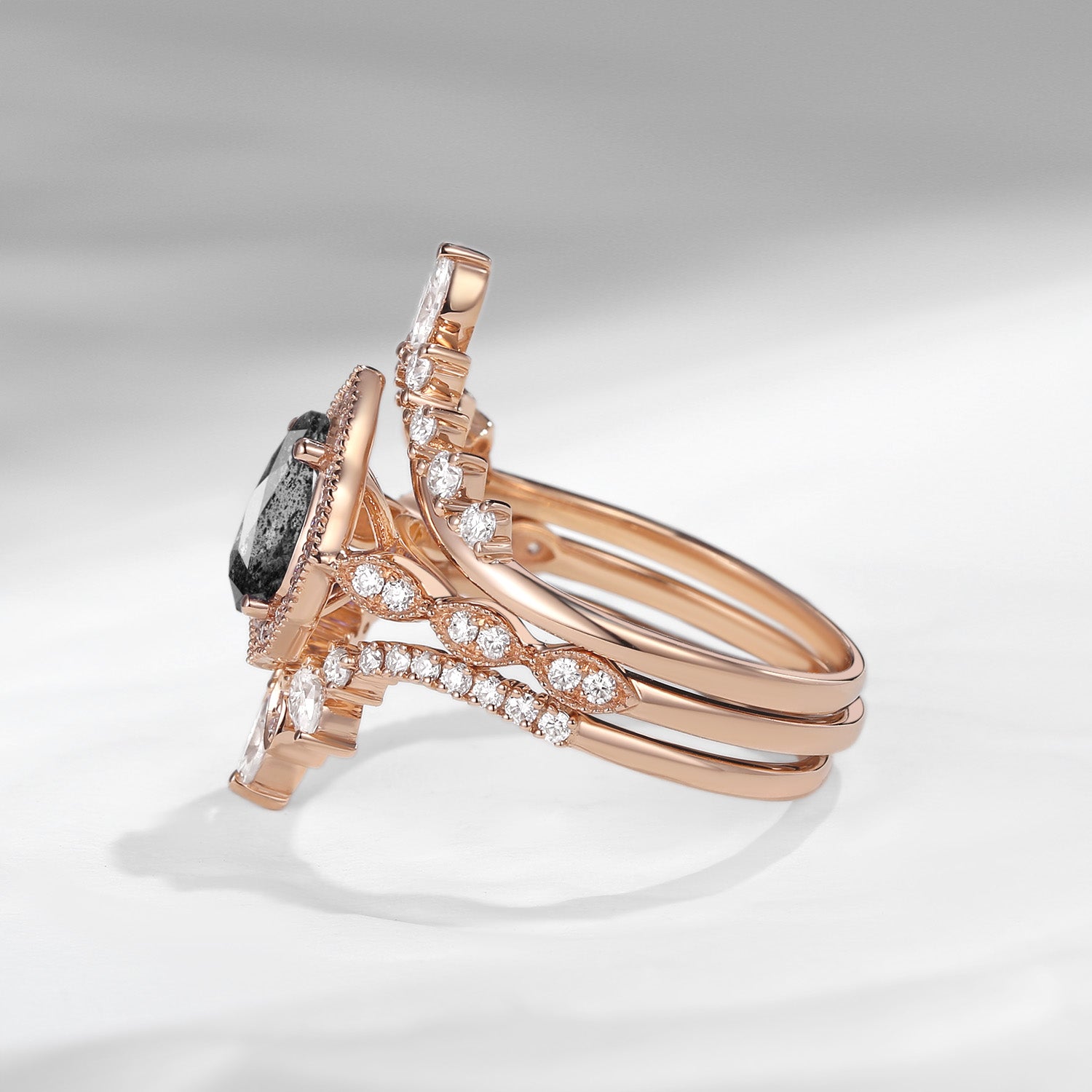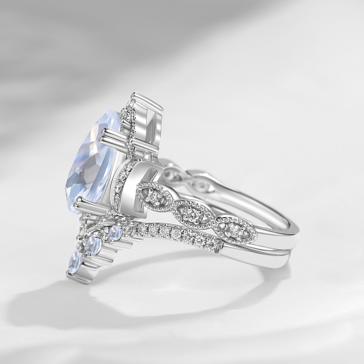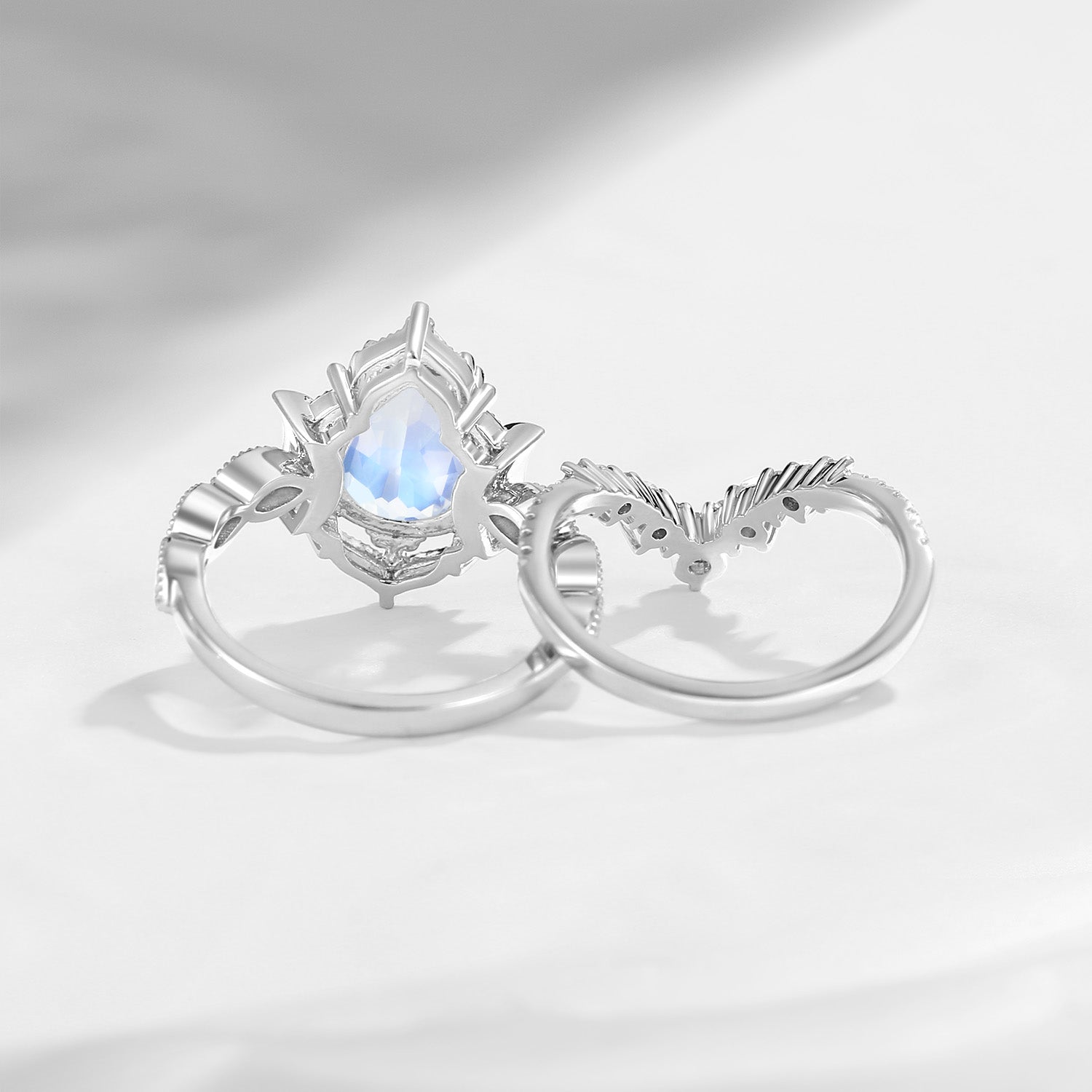 Crescent Moon | Pear Cut Moonstone Engagement Ring Set 2PCS 18K