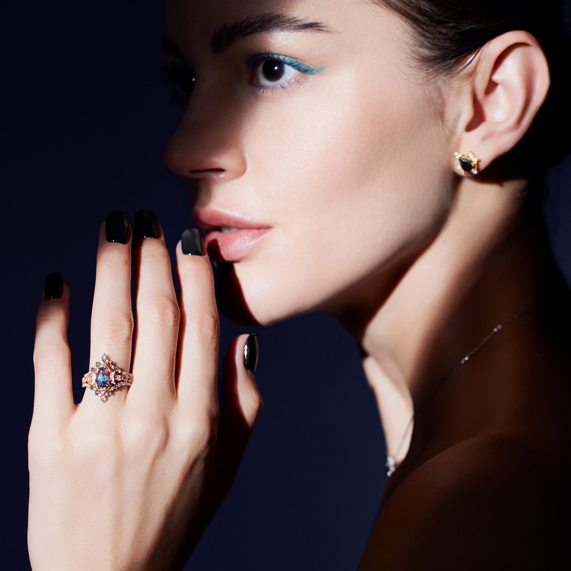 Crescent Moon | Unique Pear Royal Blue Moissanite Engagement Ring - Luna