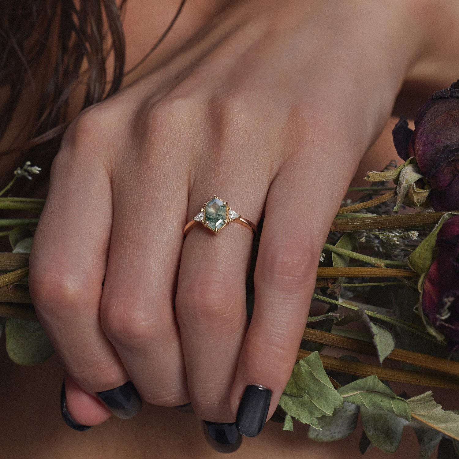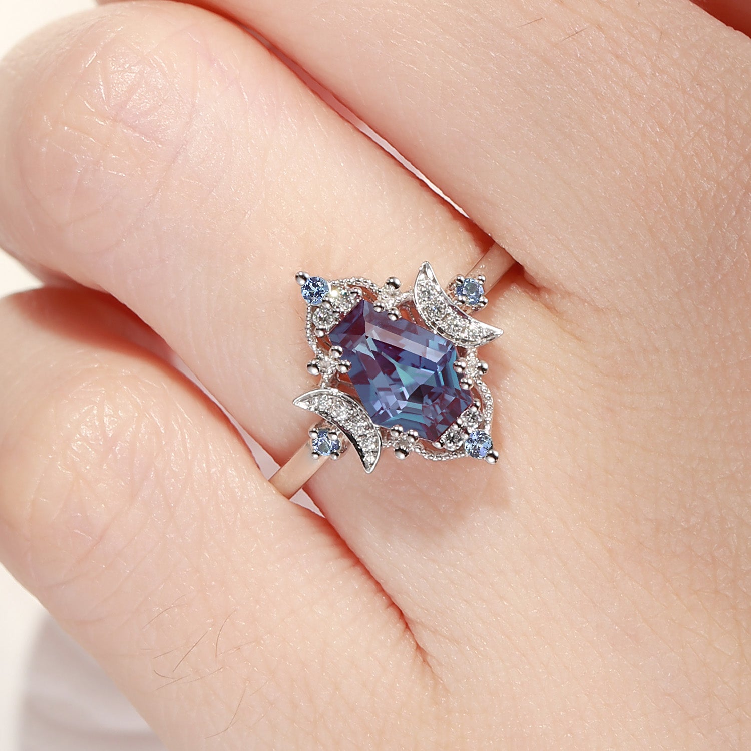 Crescent Moon|Unique Coffin Lab Alexandrite Engagement Ring-'Evermore'