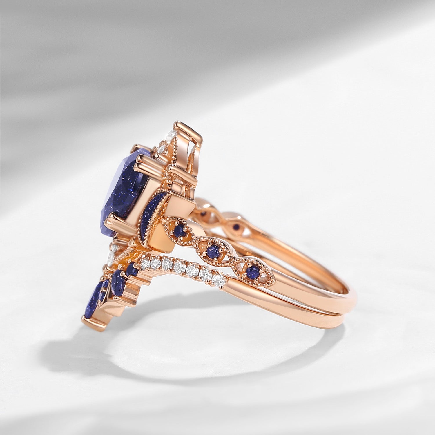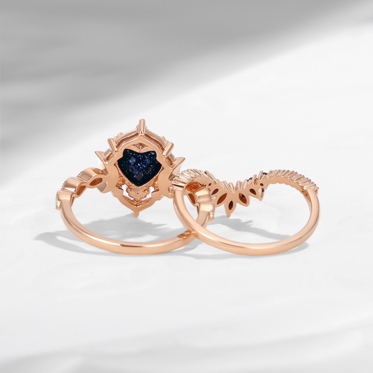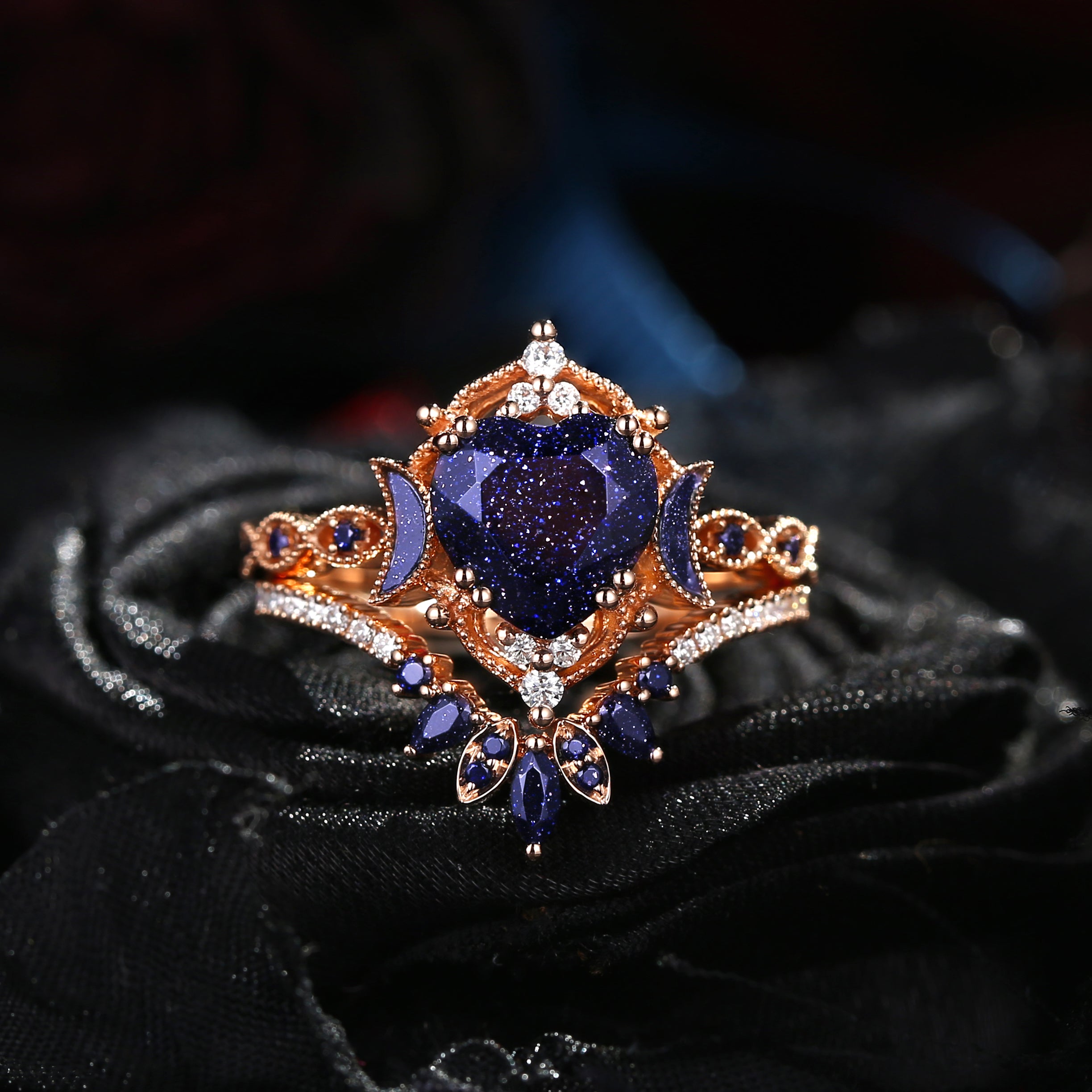 Crescent Moon | Heart Cut Blue Sandstone 'Ultra Galaxy' Engagement Ring Set 2pcs