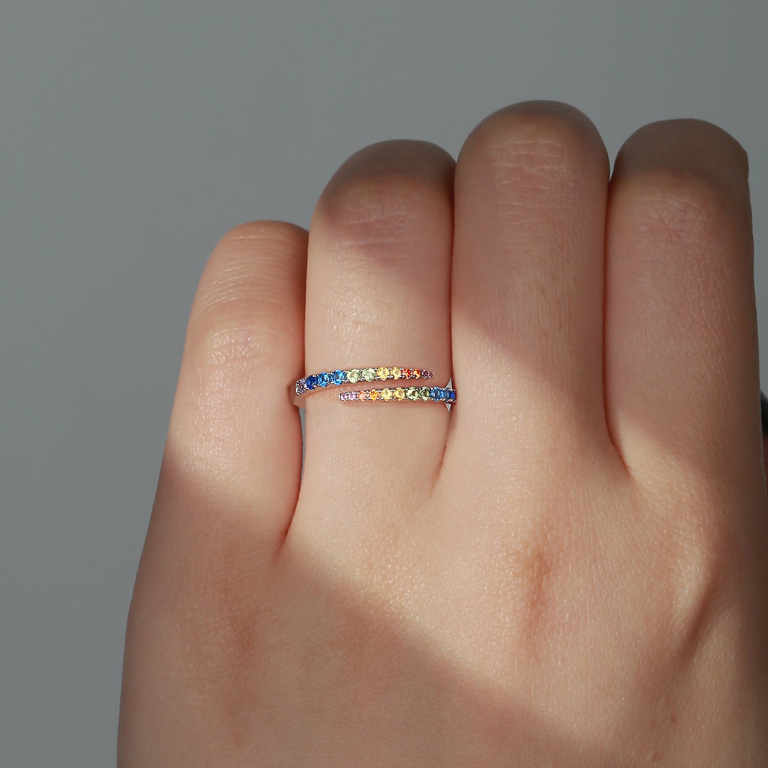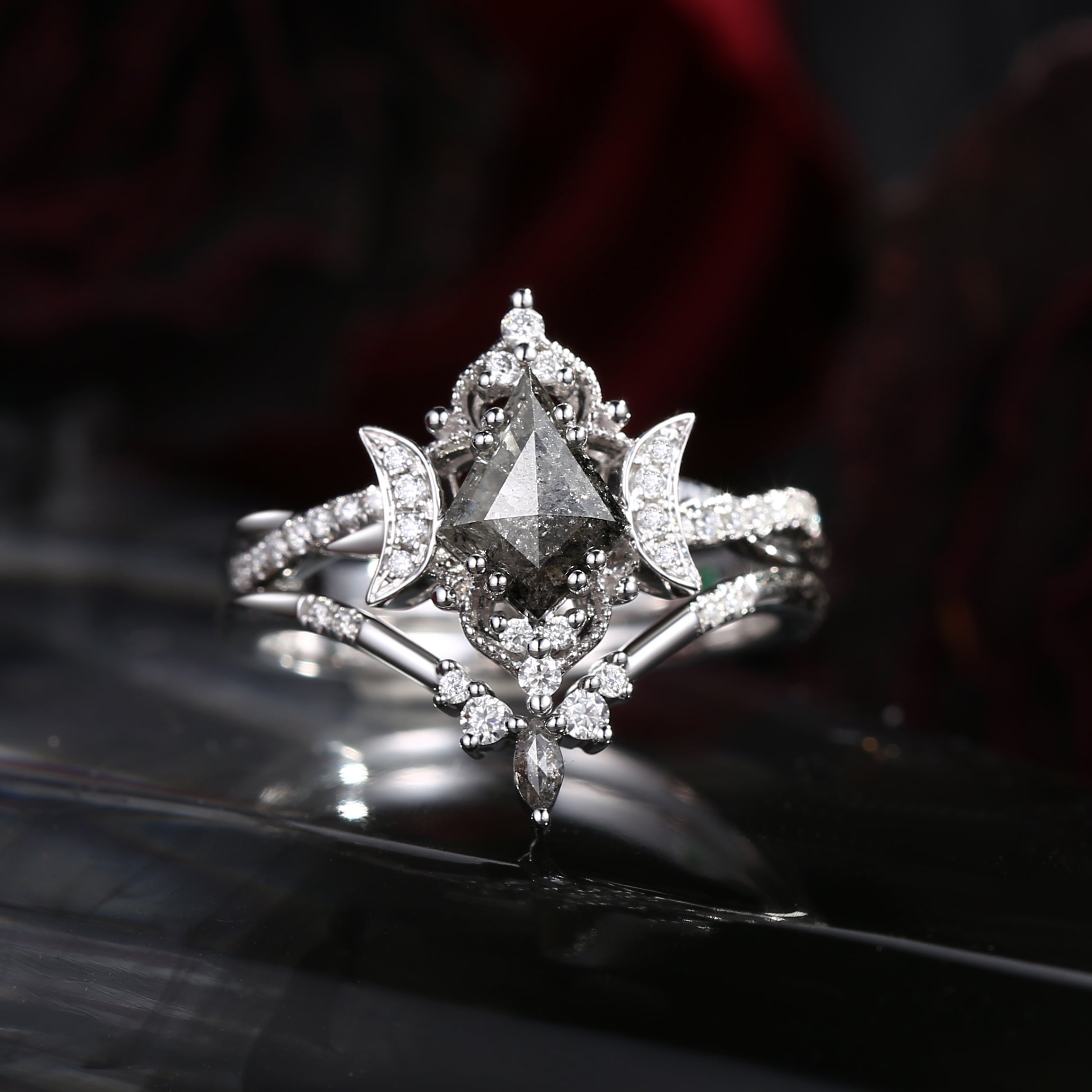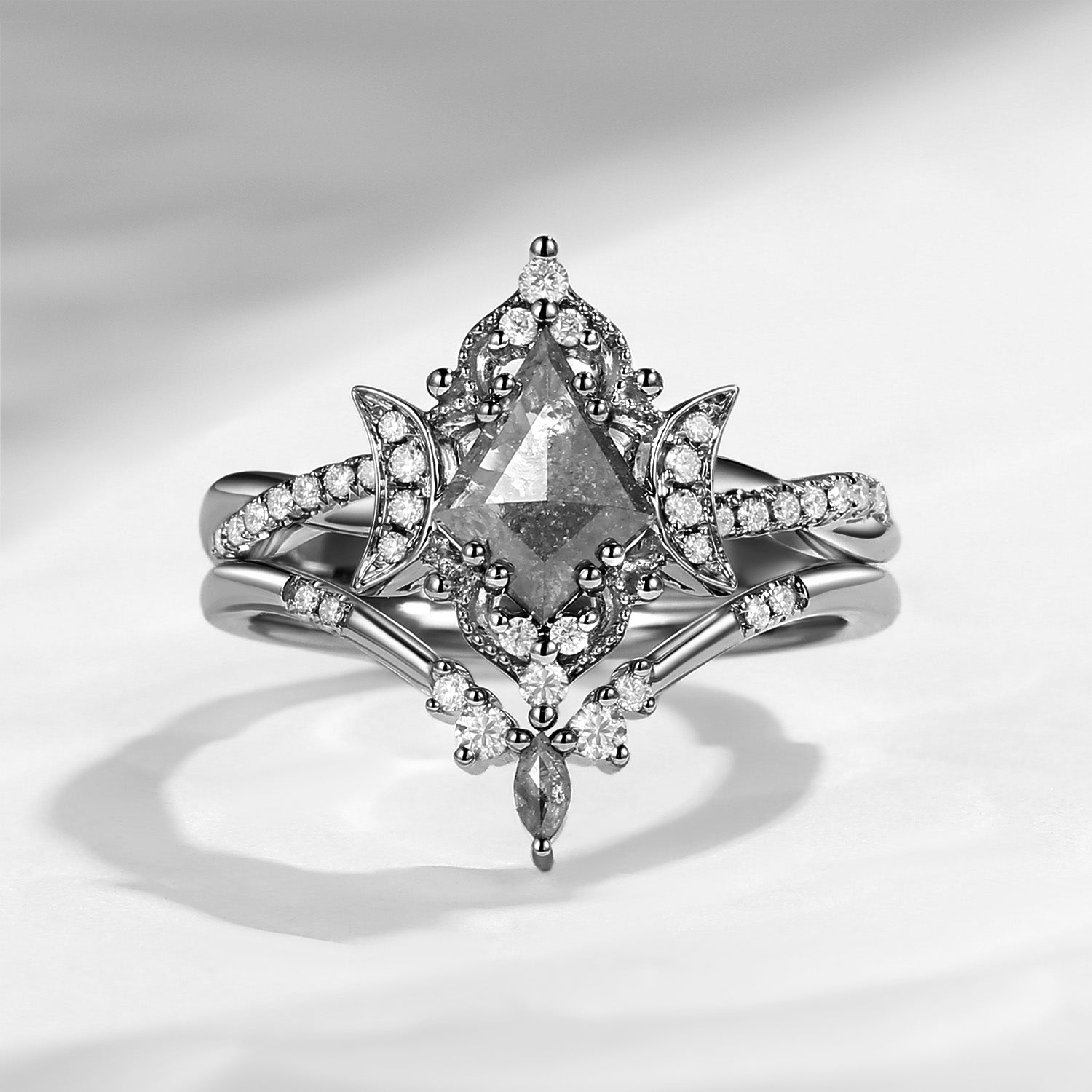 Crescent Moon | Kite Cut Salt And Pepper Twisted Diamond Ring Set 2pcs