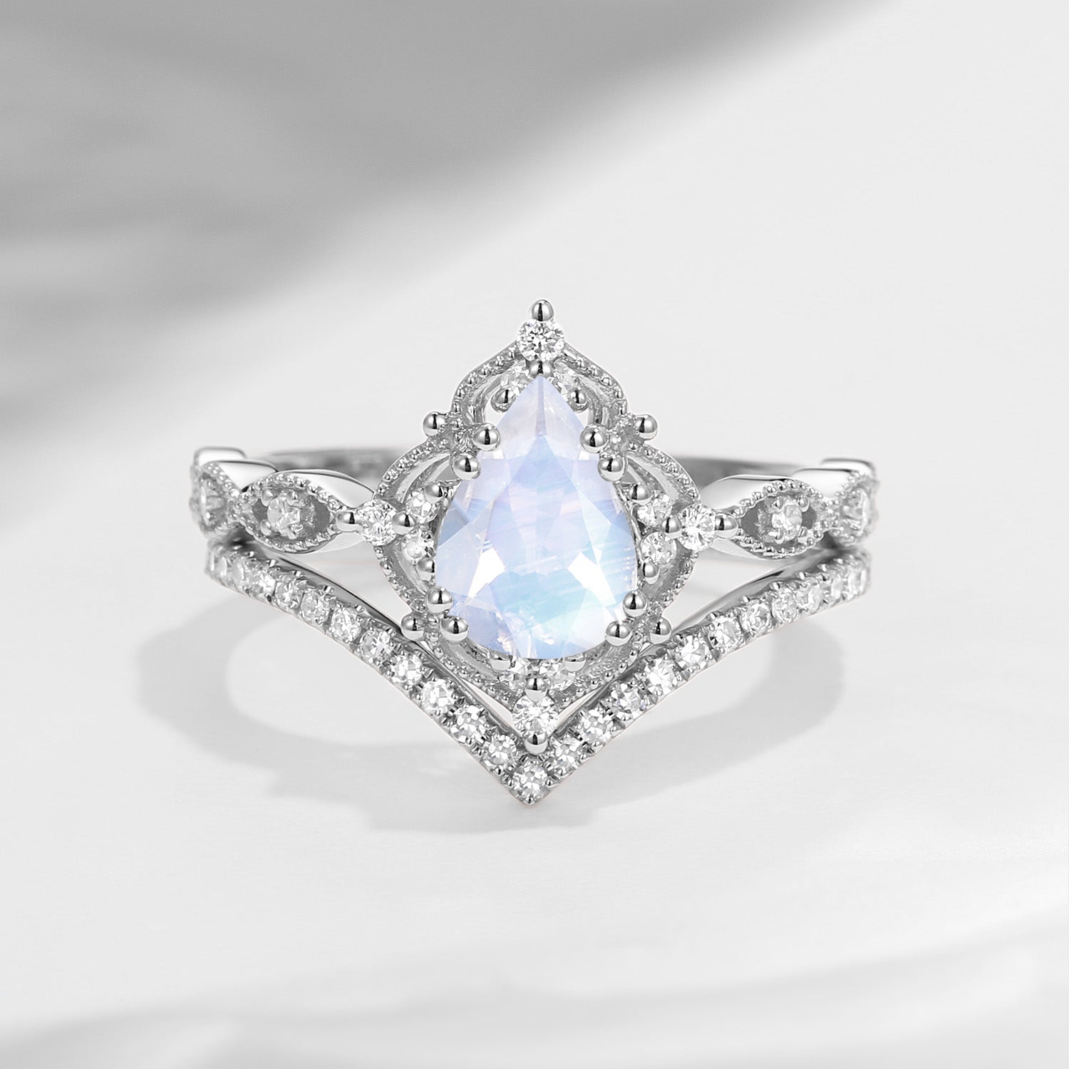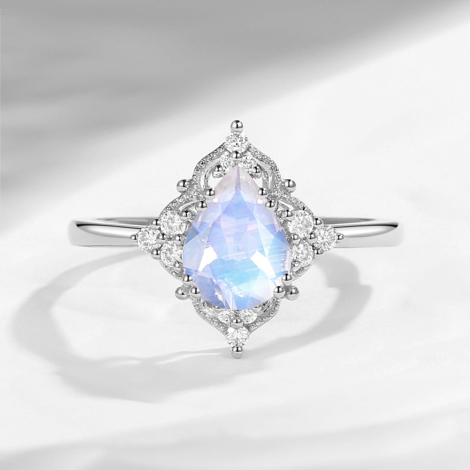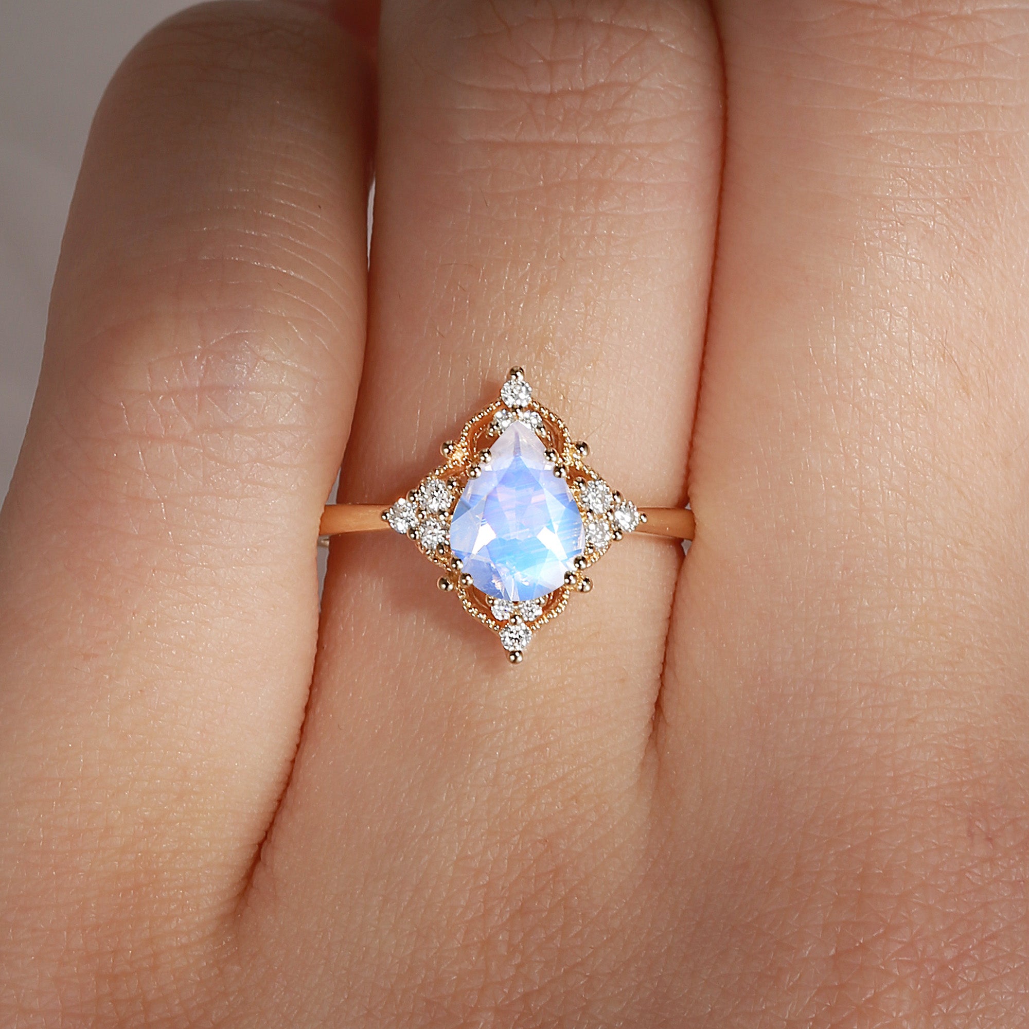 Vintage Inspired Pear Shaped Moonstone Engagement Ring
