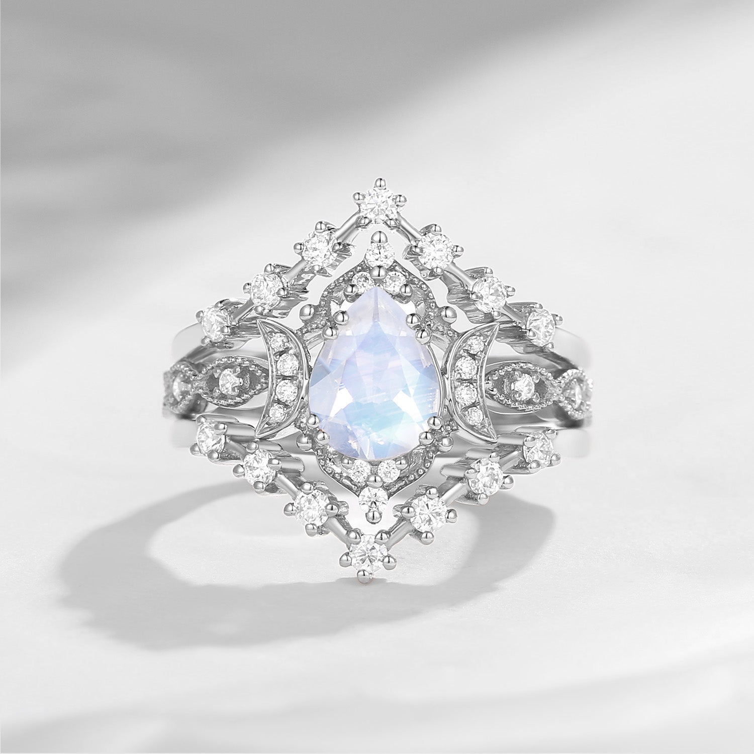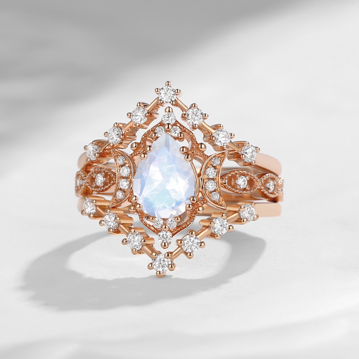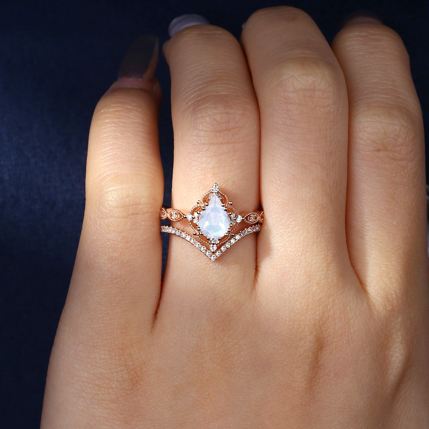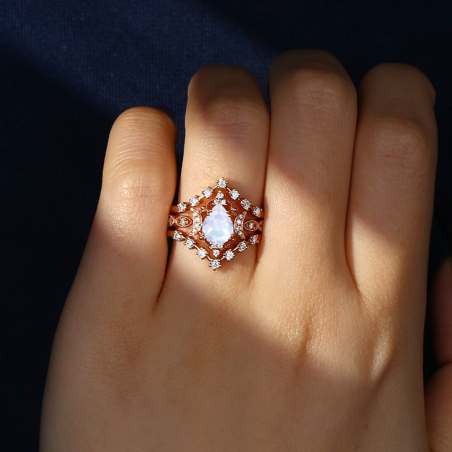 Vintage Inspired Pear Shaped Moonstone Engagement Ring