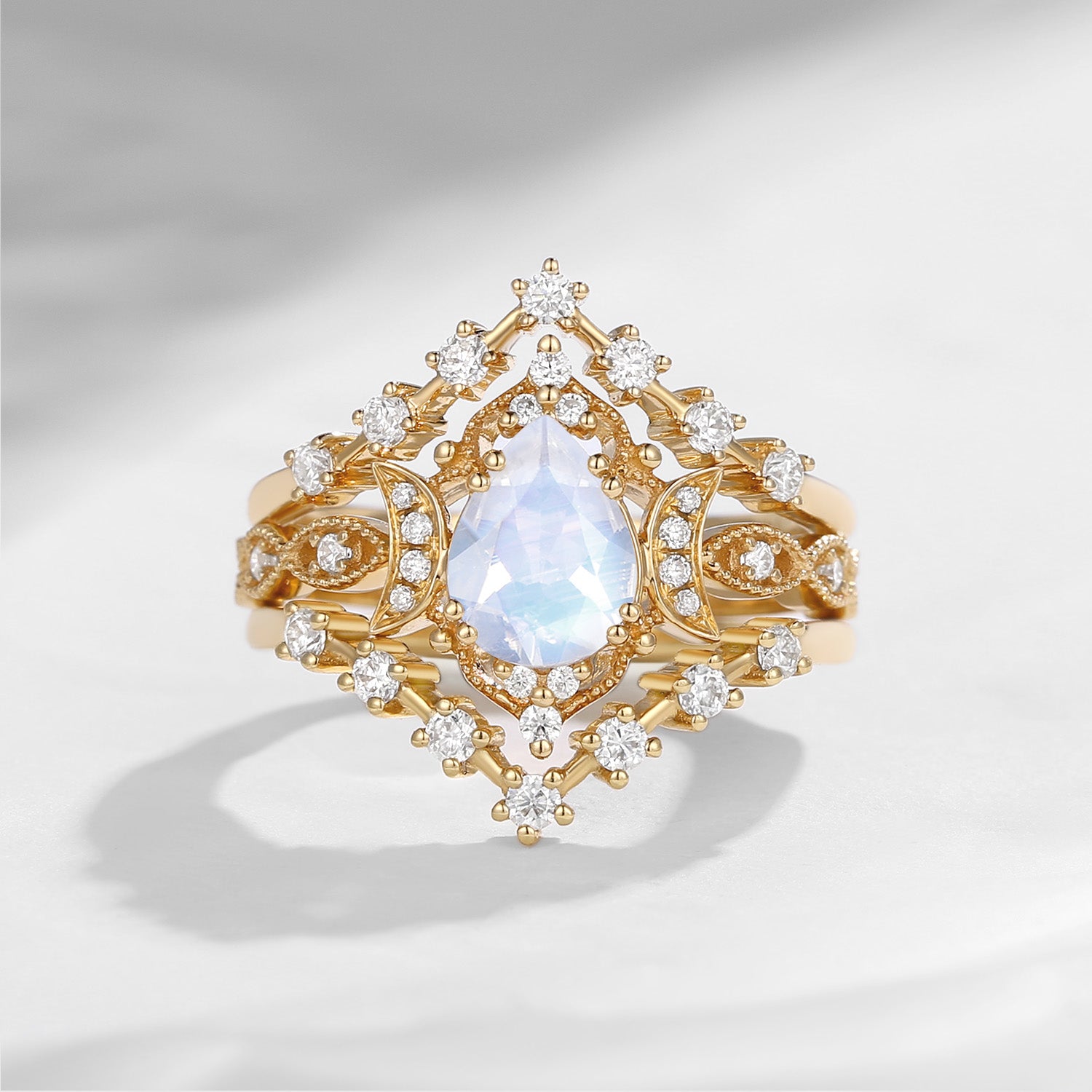Crescent Moon | Vintage Moonstone Galaxy Bridal Set 3pcs
