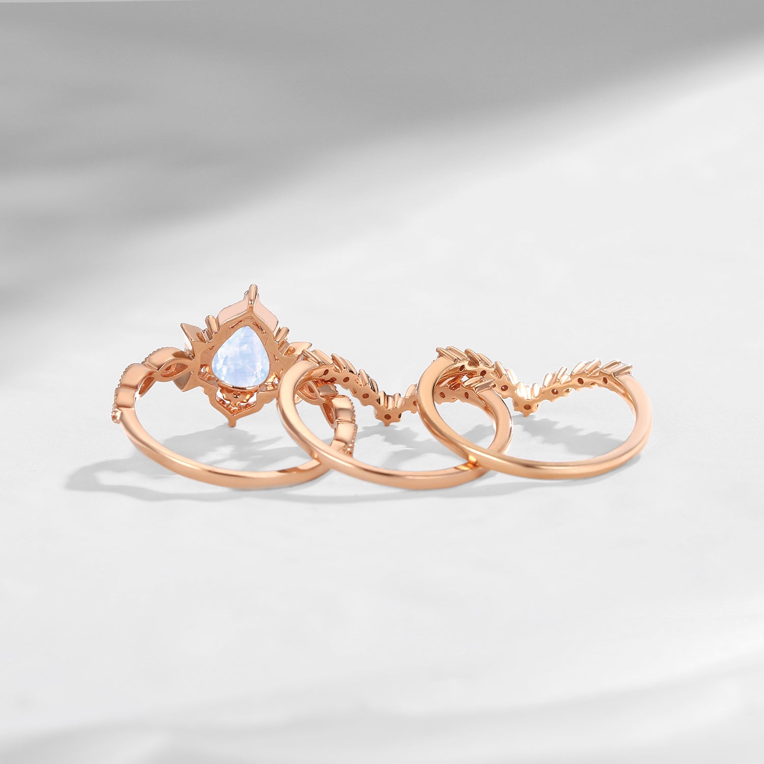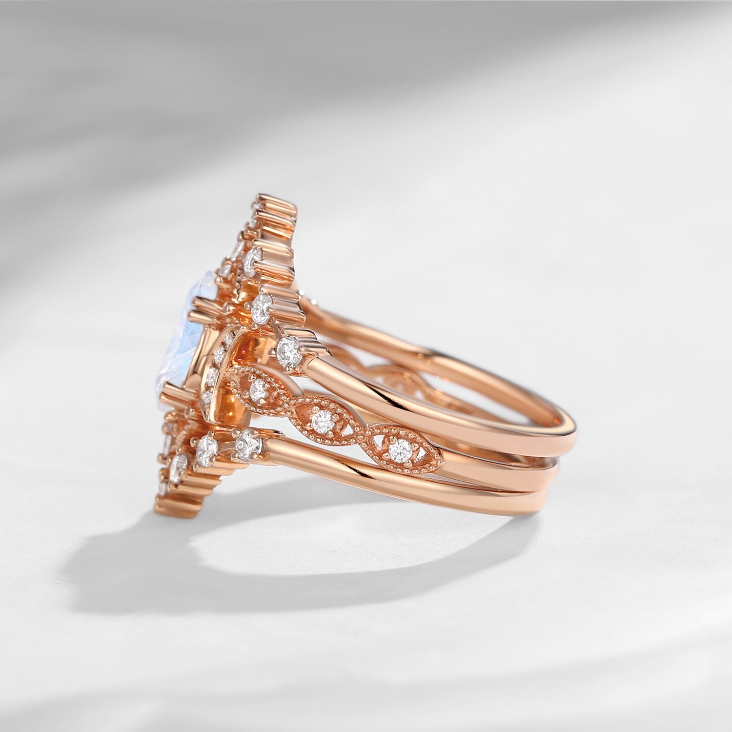 Crescent Moon | Antique Pear Cut Alexandrite Engagement Ring Set 3pcs 18K