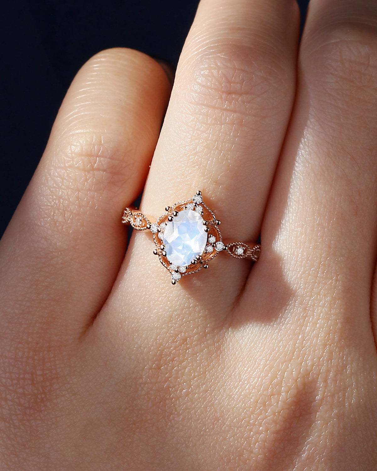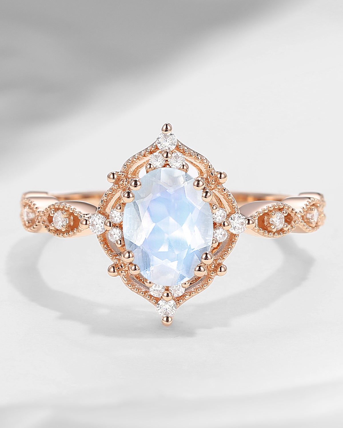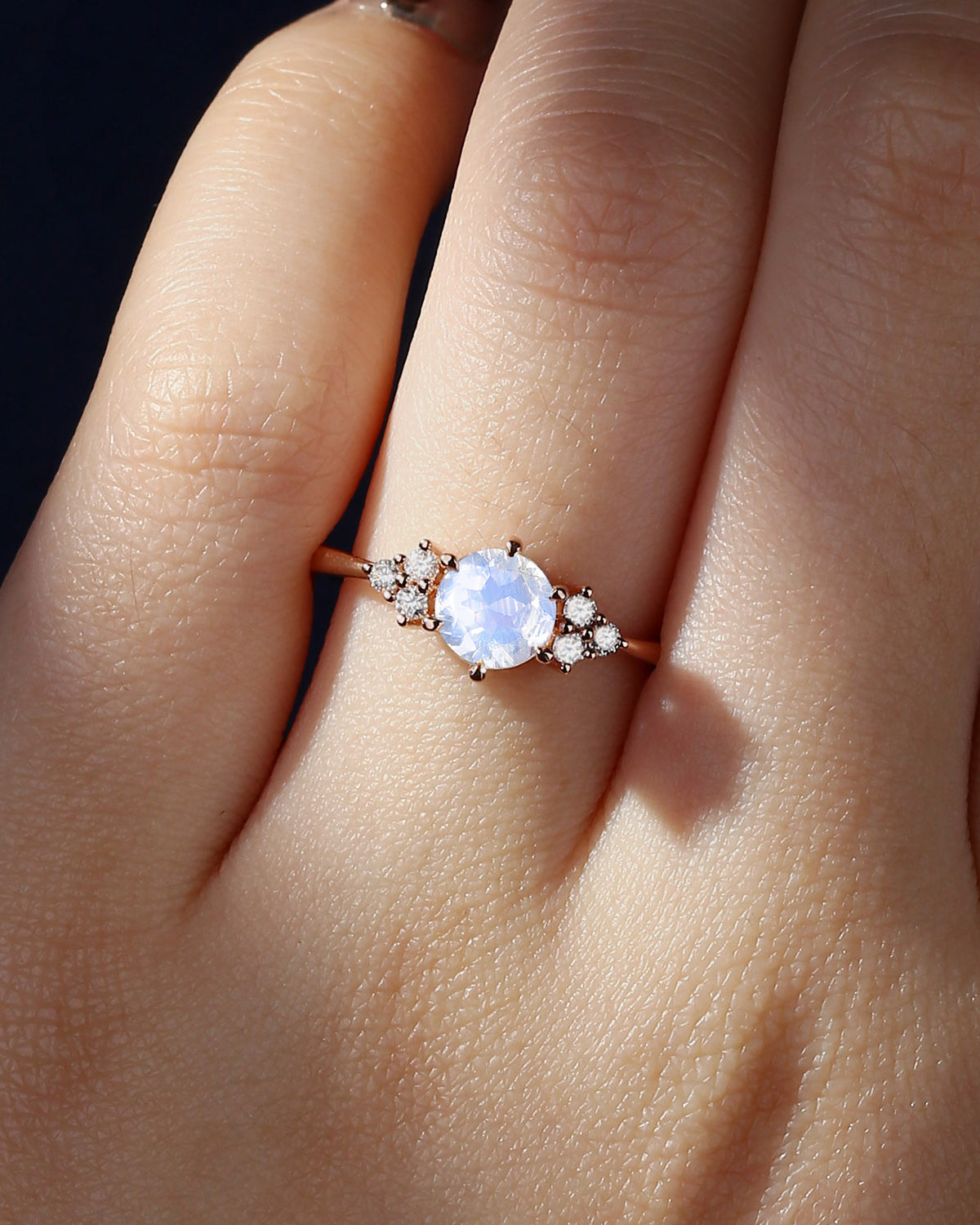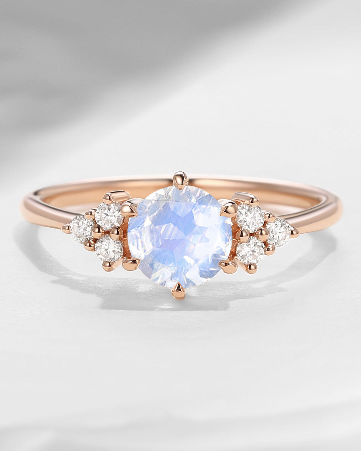 1.2ct Round Cut Moonstone Cluster Engagement Ring