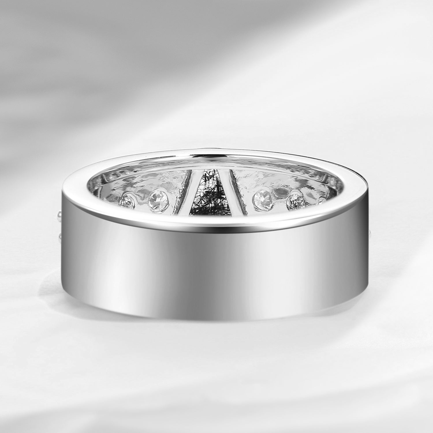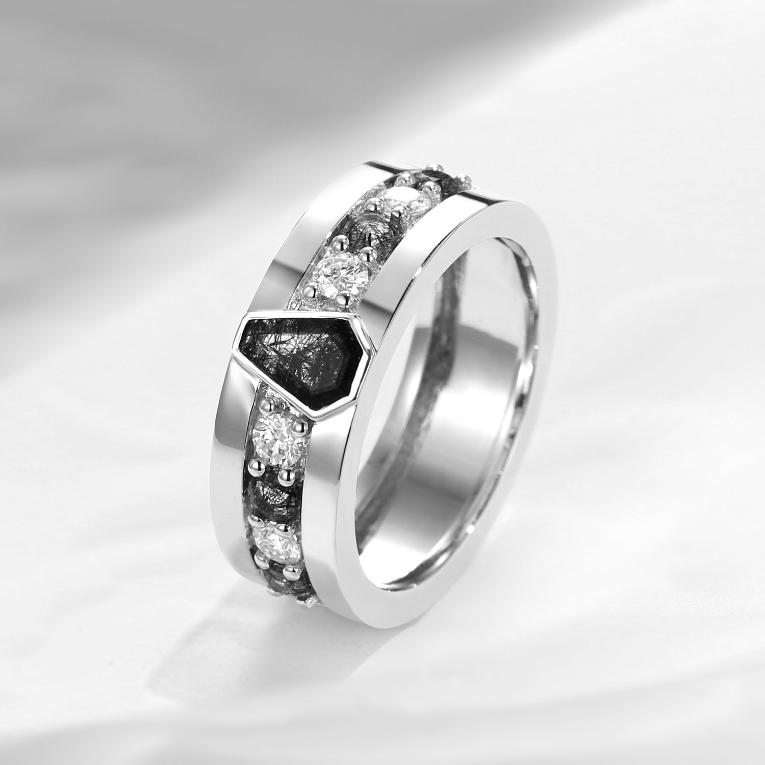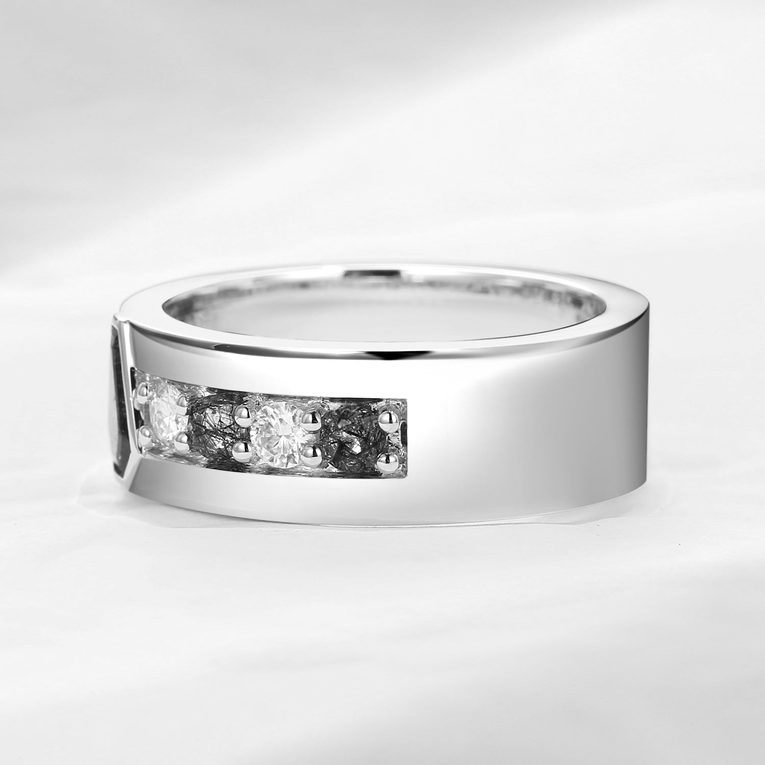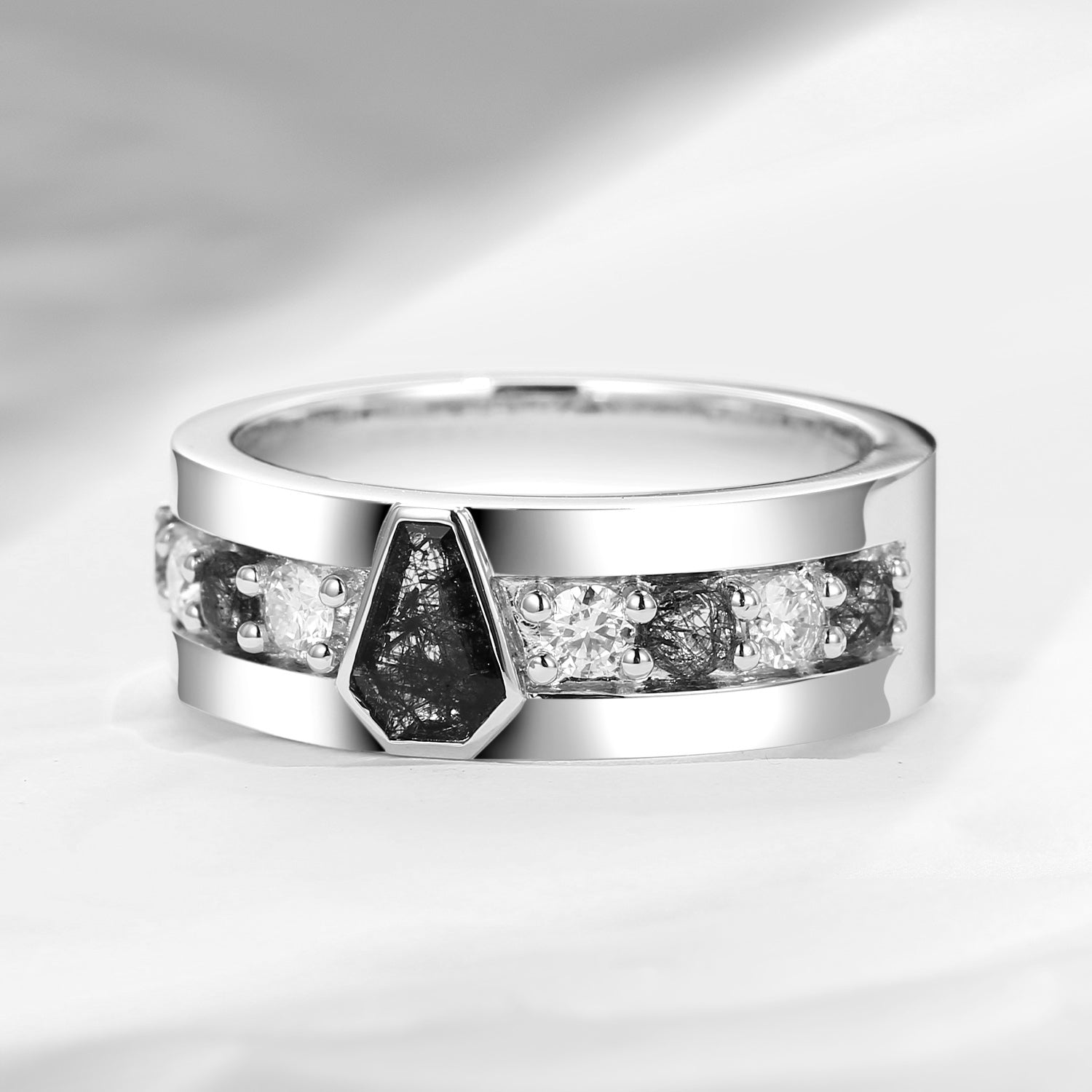 Unique Coffin Cut Black Rutilated Quartz Wedding Band For Men - King's Scepter