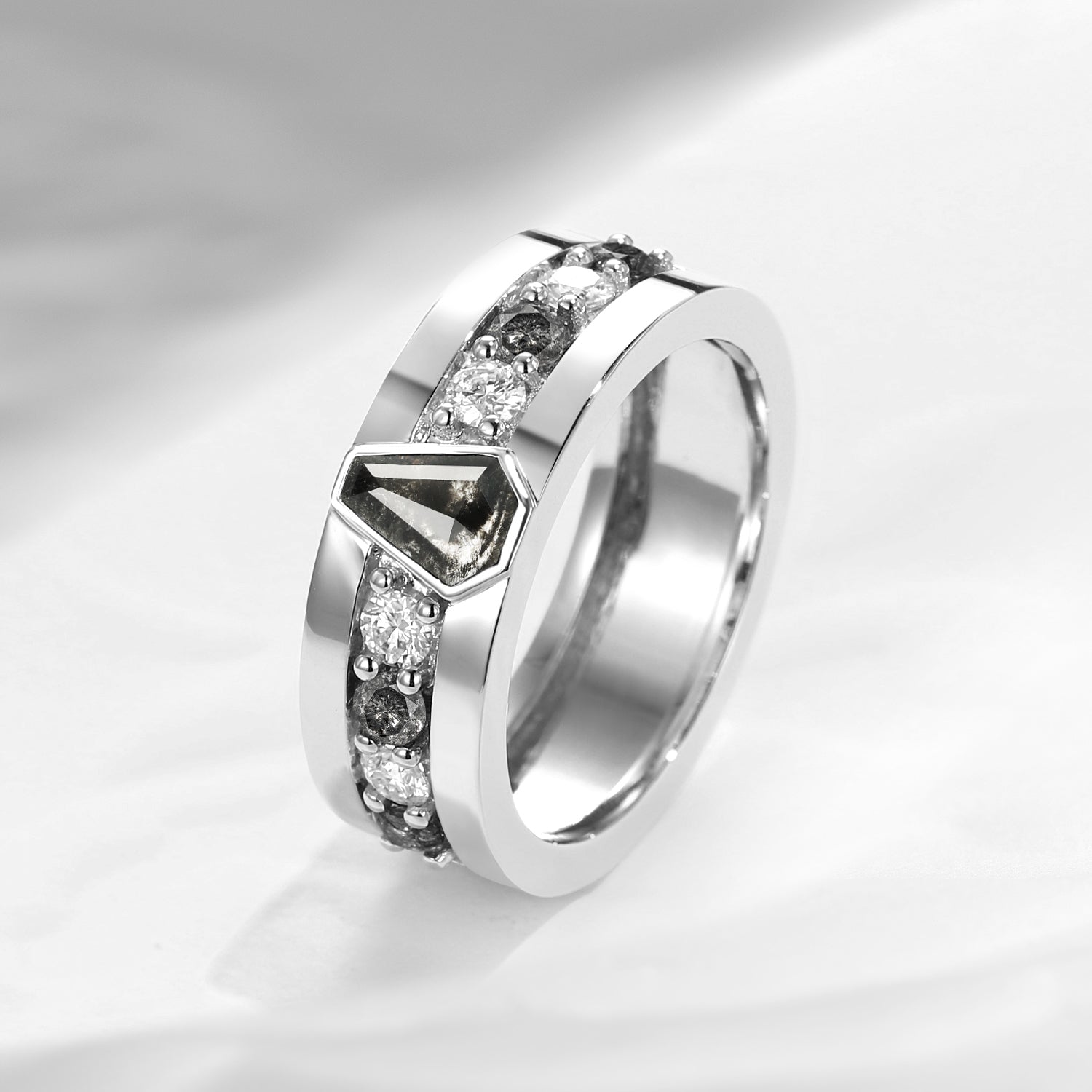 Unique Coffin Cut Salt & Pepper Diamond Wedding Band For Men - King's Scepter