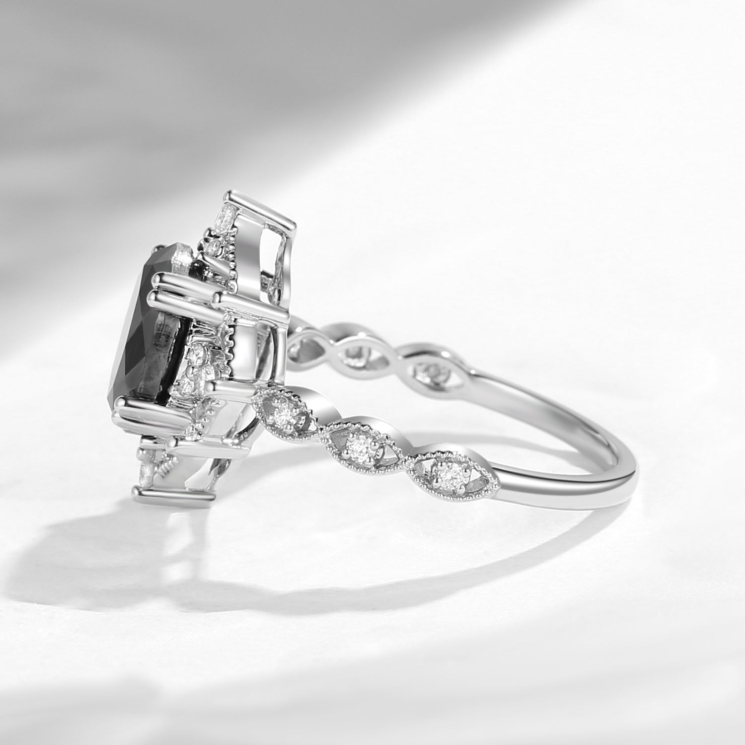 Long Hexagon Salt and Pepper Art-Deco Engagement Ring
