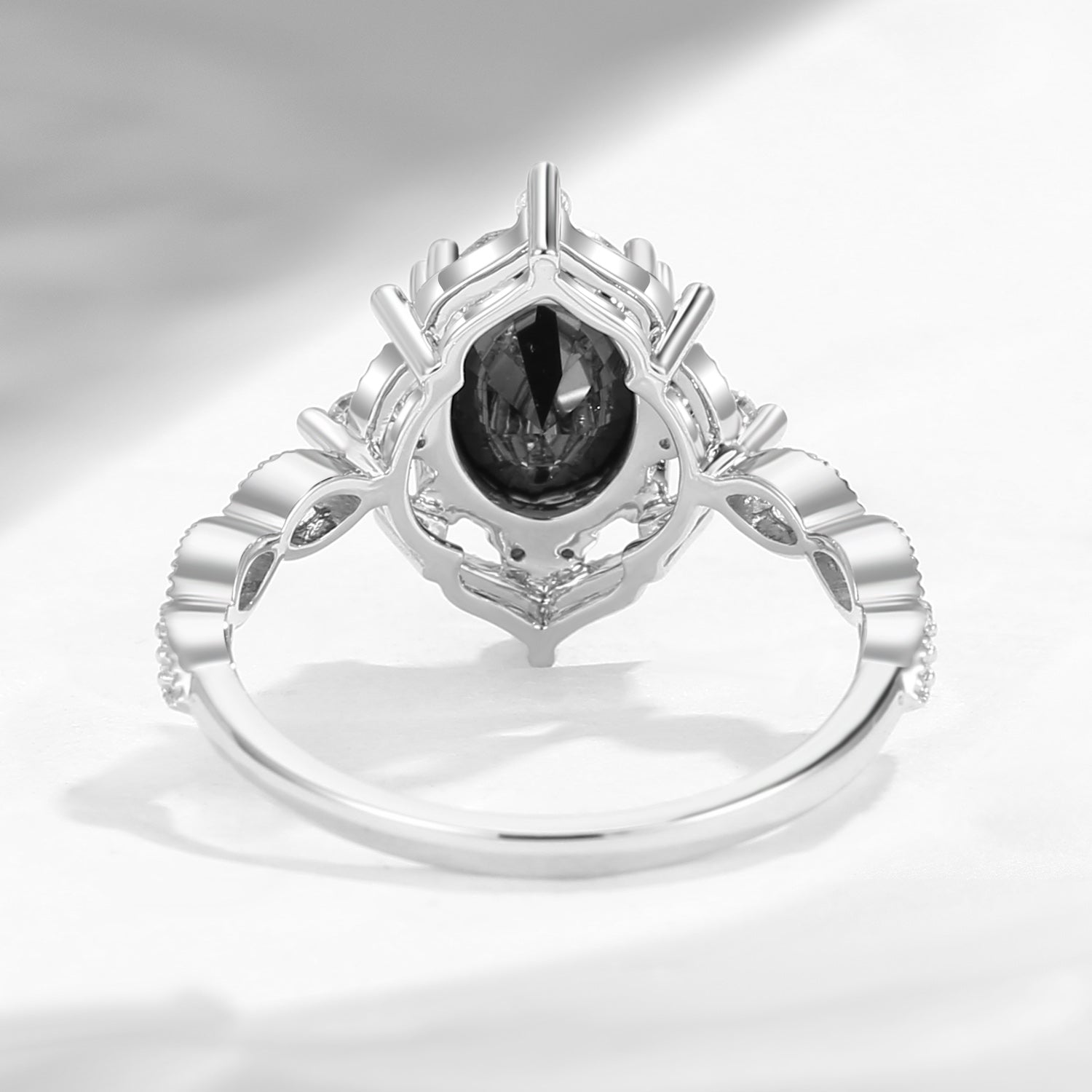 Antique Oval Black Moissanite Engagement Ring 18K