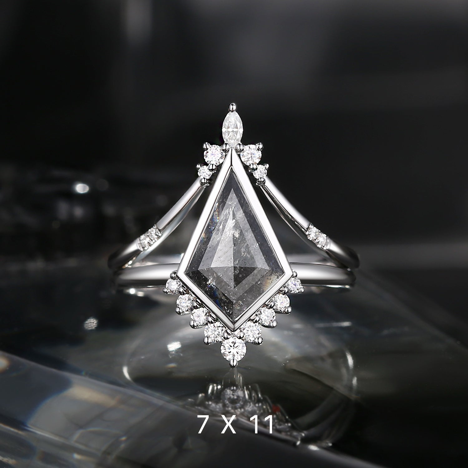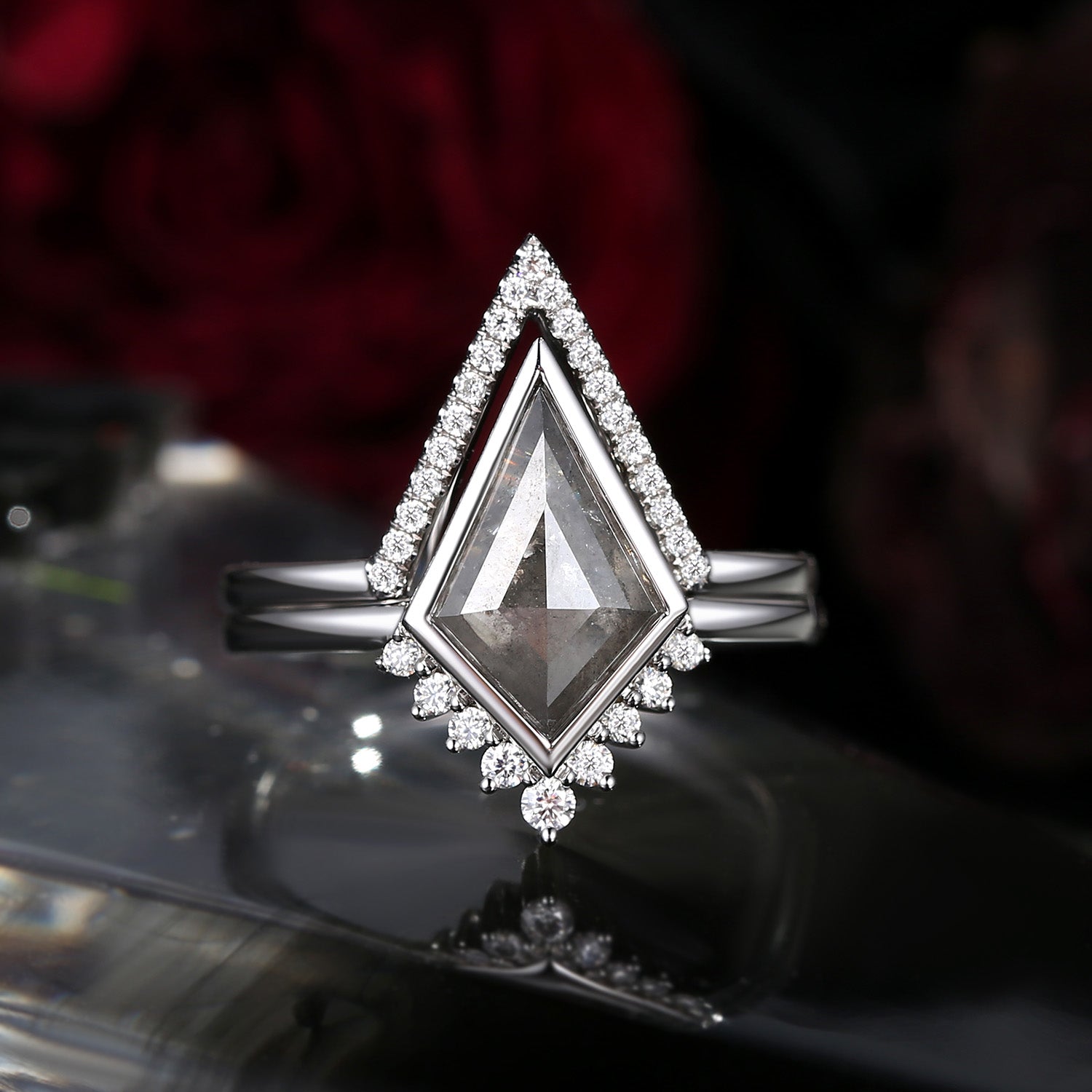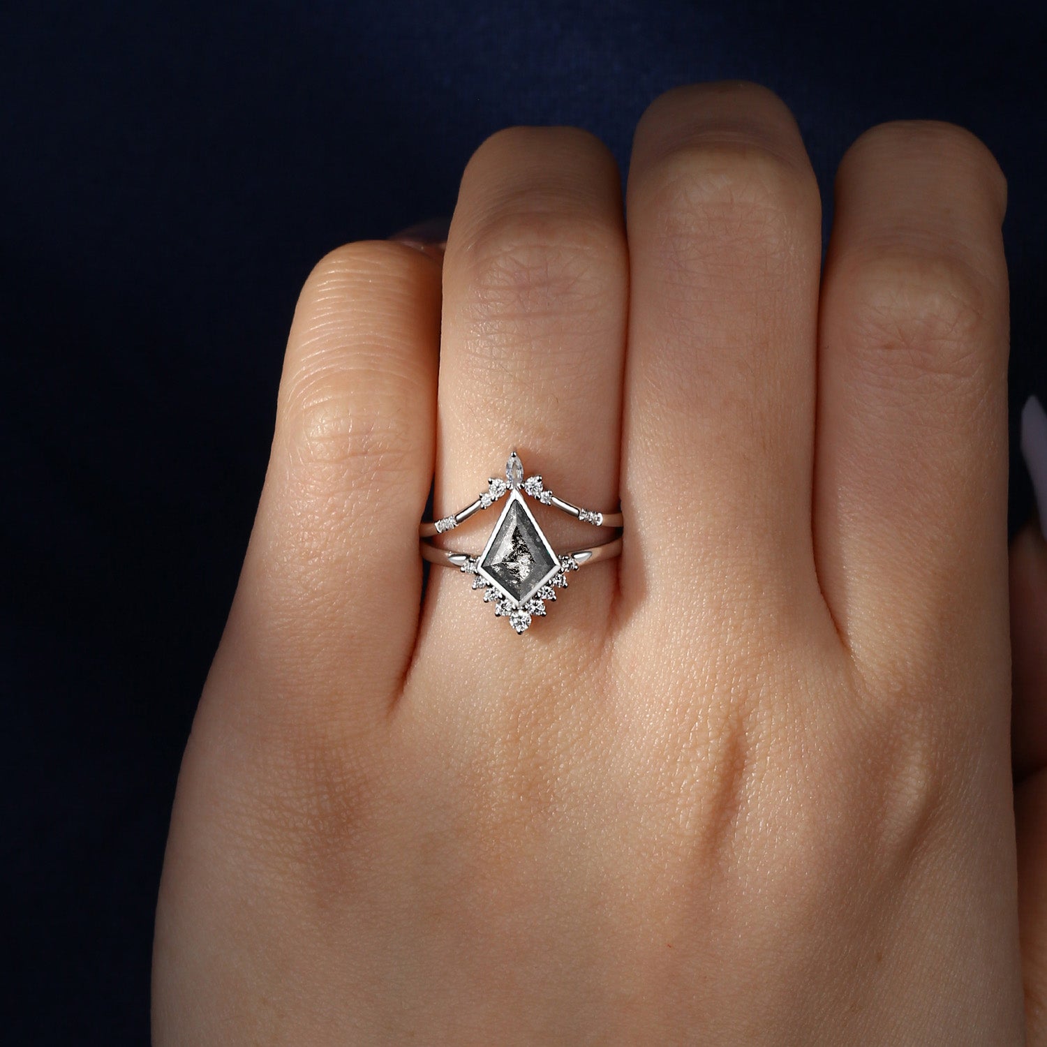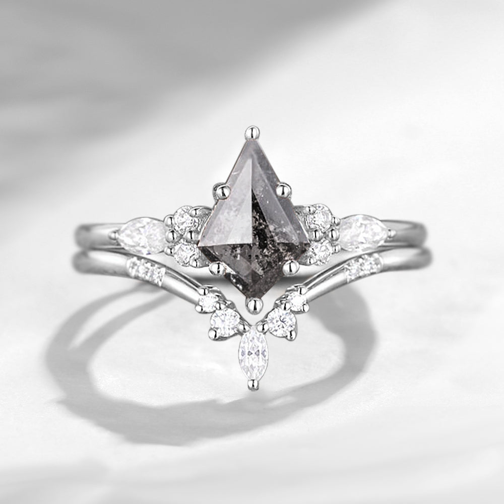 Kite Natural Salt And Pepper Diamond Engagement Ring Set 2pcs