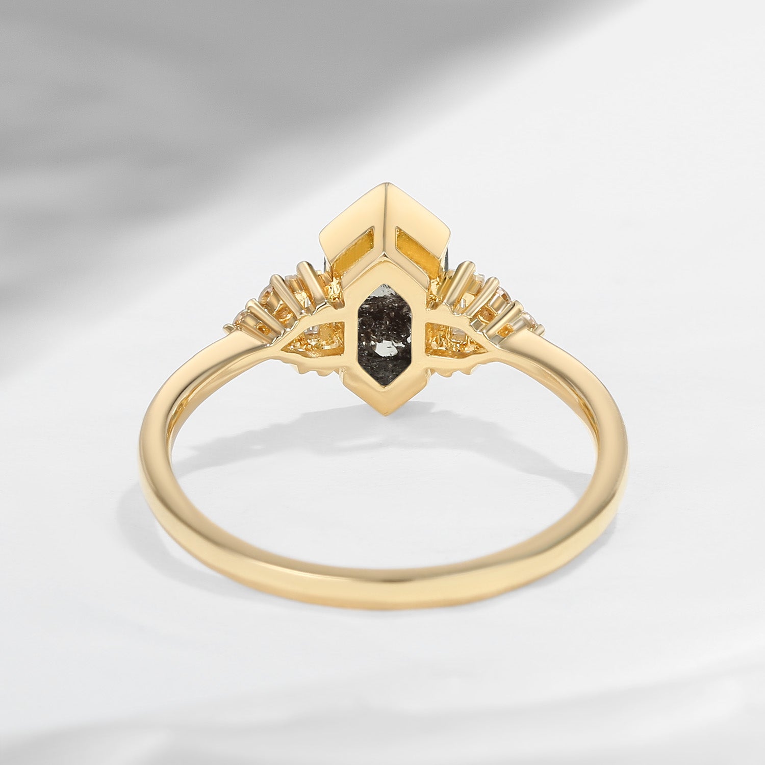 Long Hexagon Natural Salt And Pepper Diamond Vintage Cluster Engagement Ring