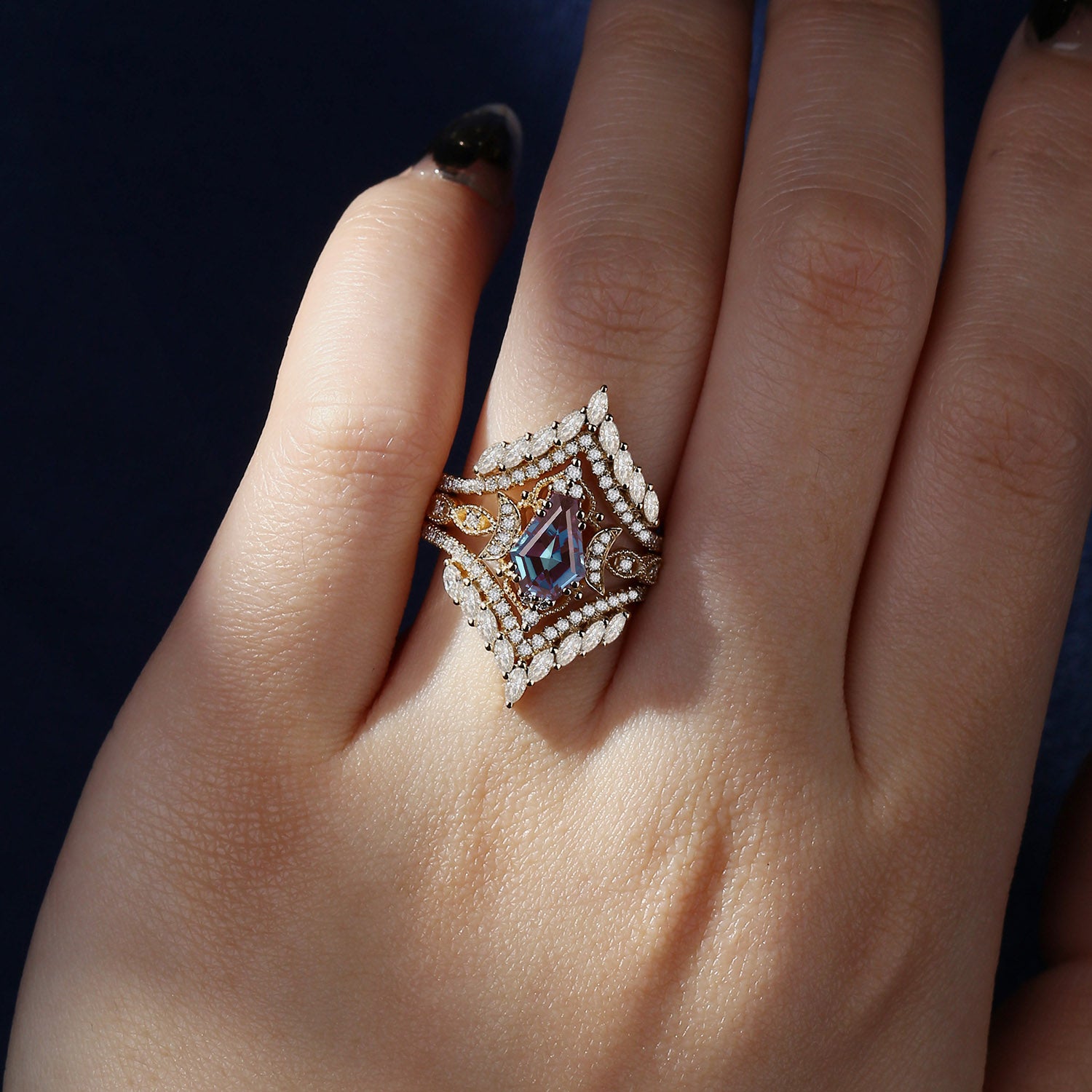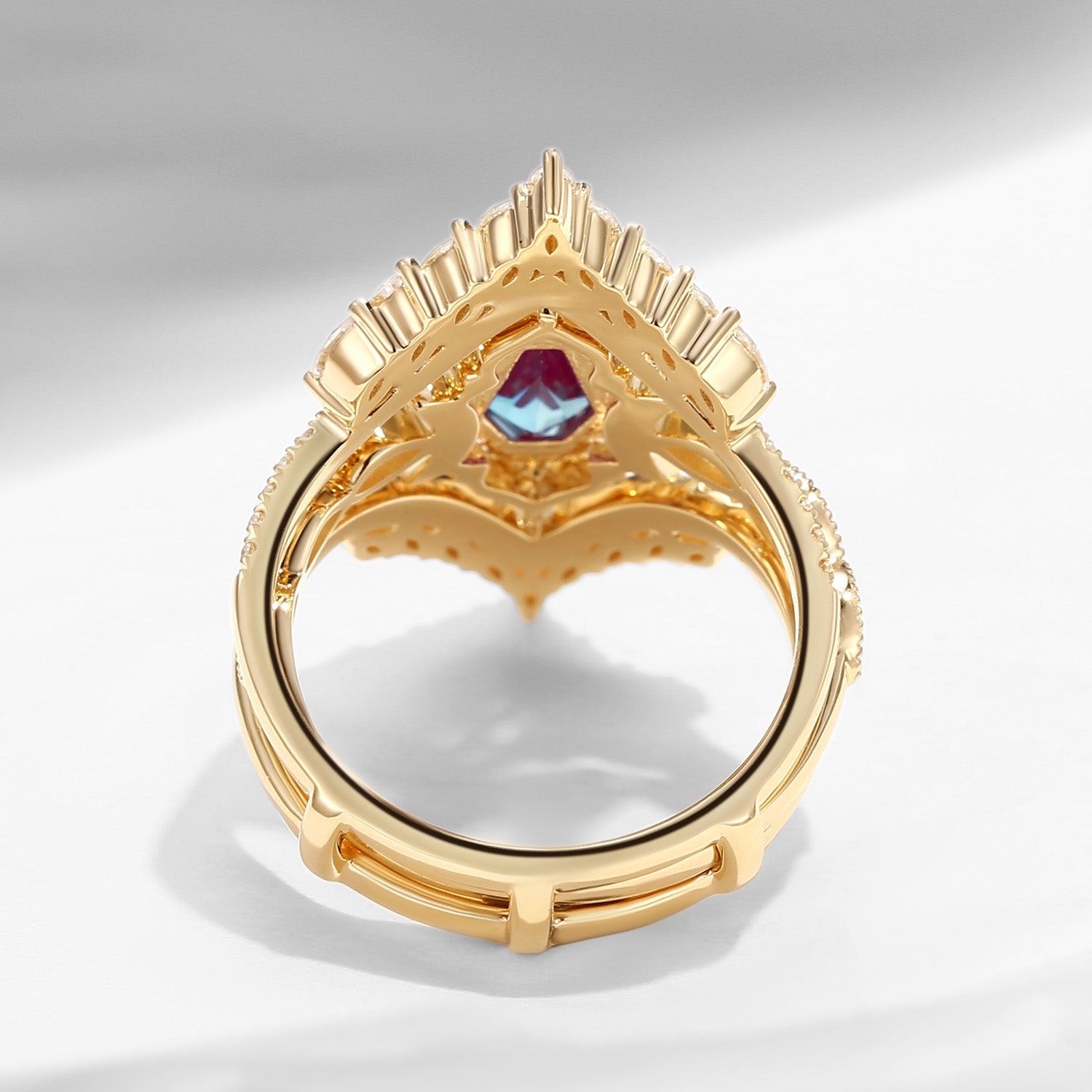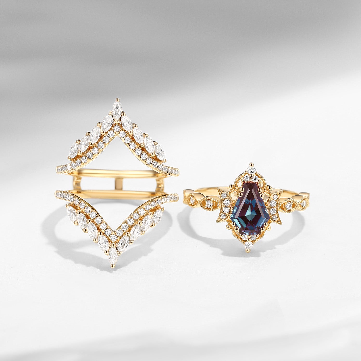 Crescent Moon | Vintage Coffin Cut Alexandrite Engagement Ring Jacket 2pcs 18K - Guardian Angel