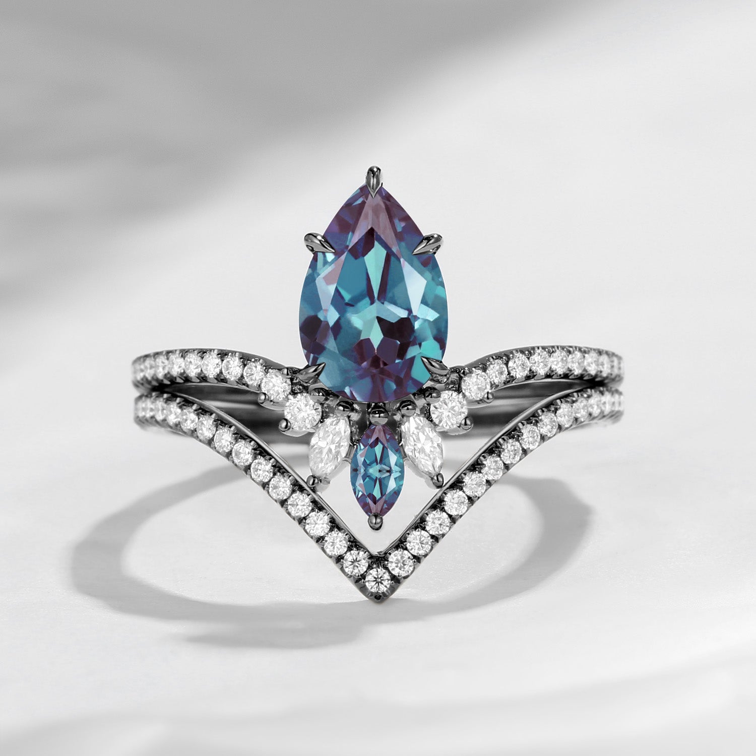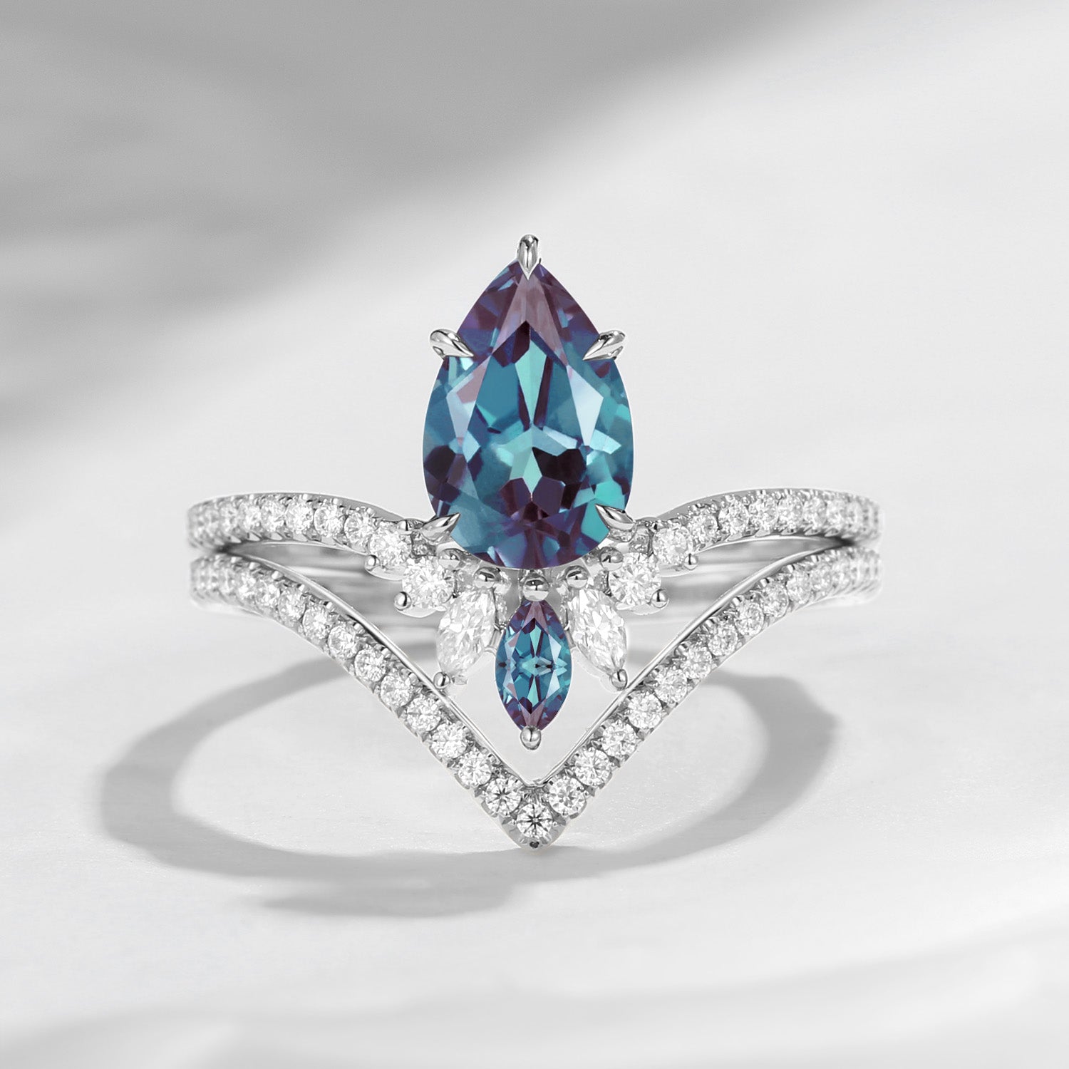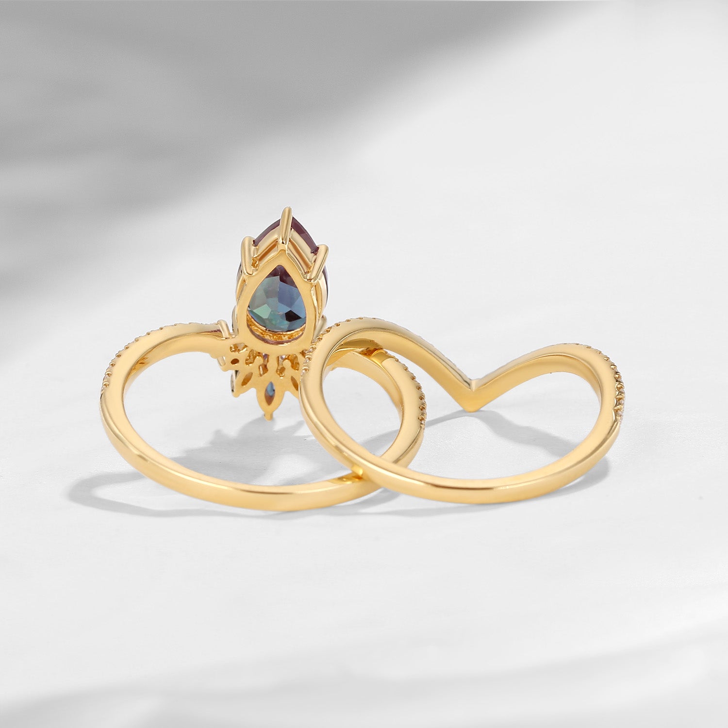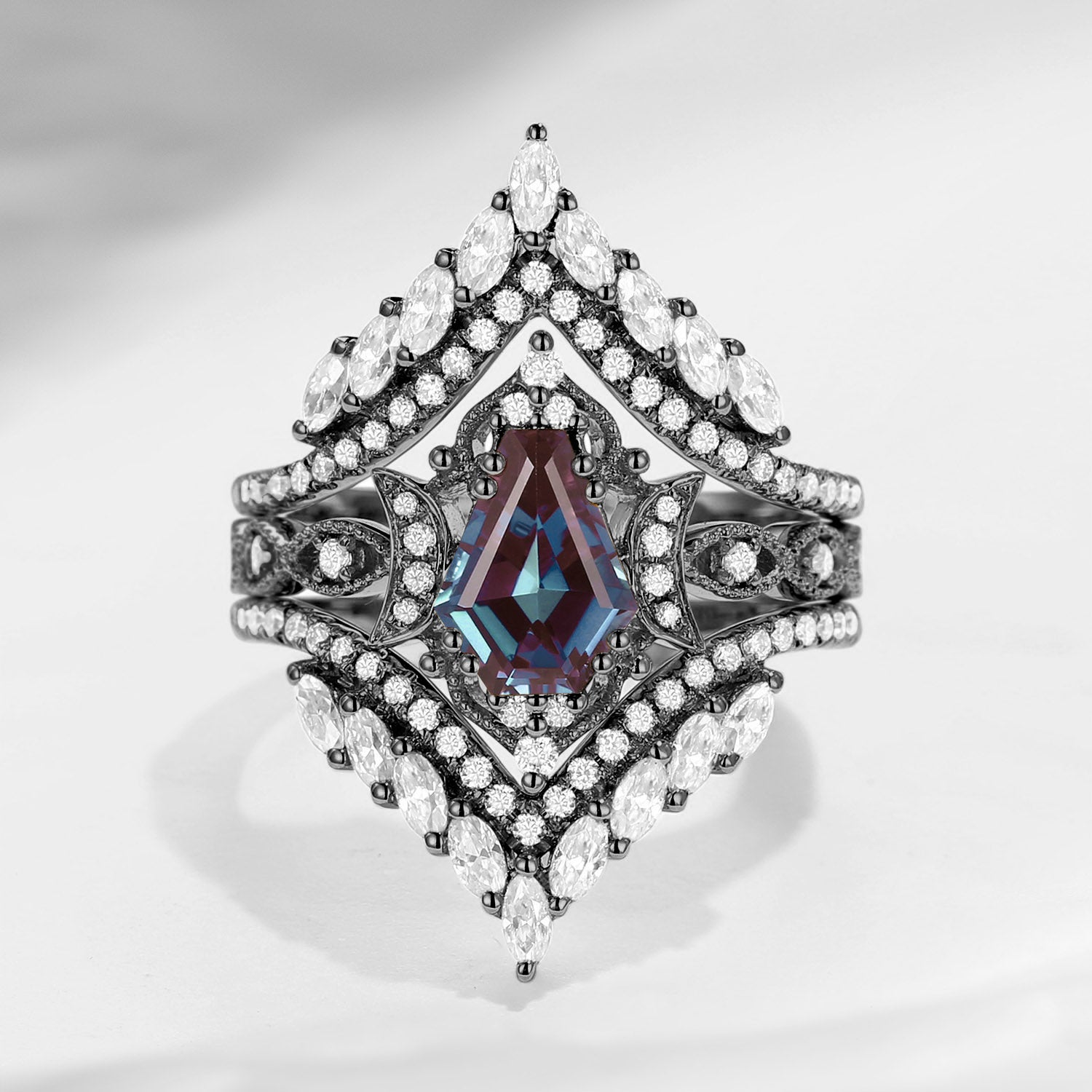Coffin Cut Lab Alexandrite Ring Set 2pcs