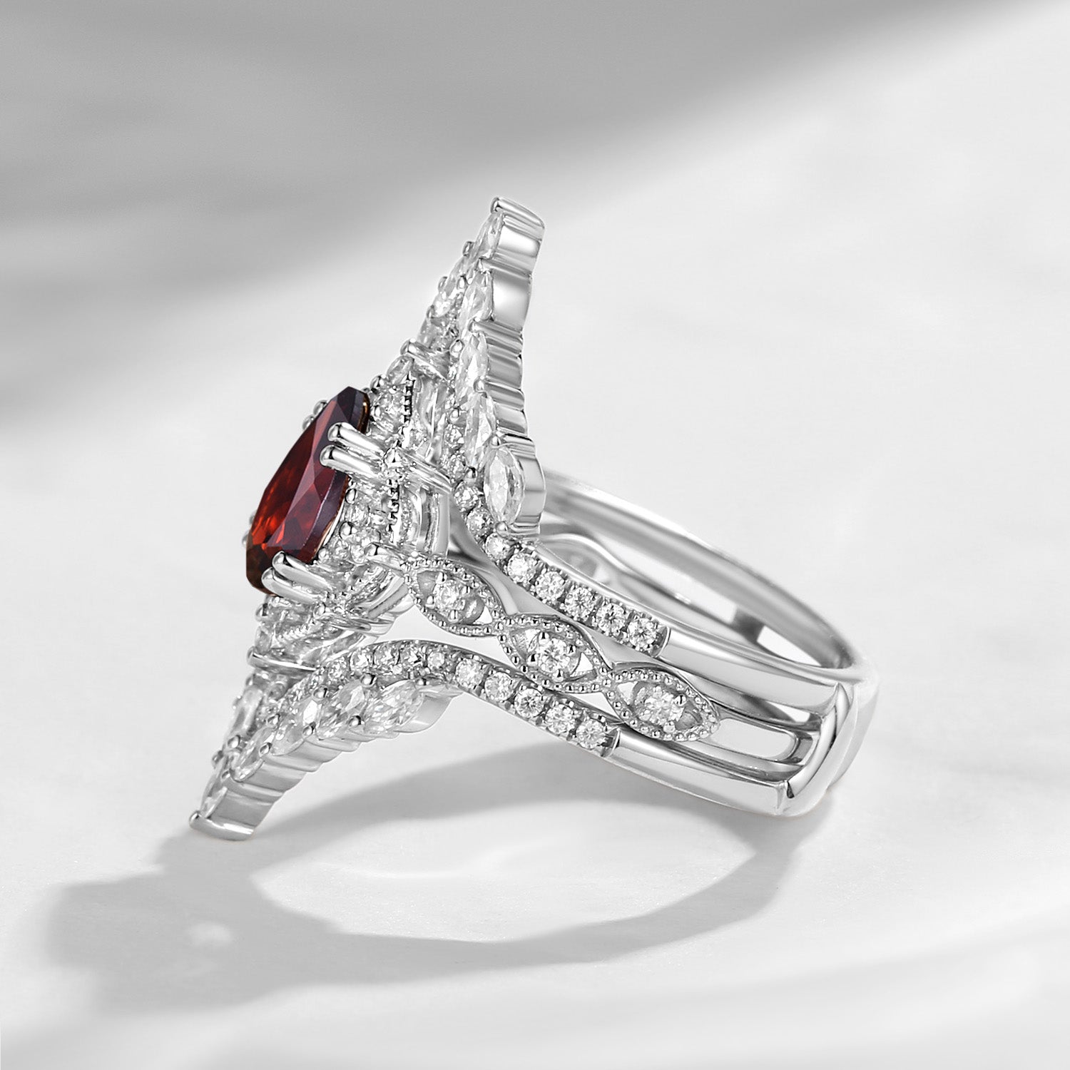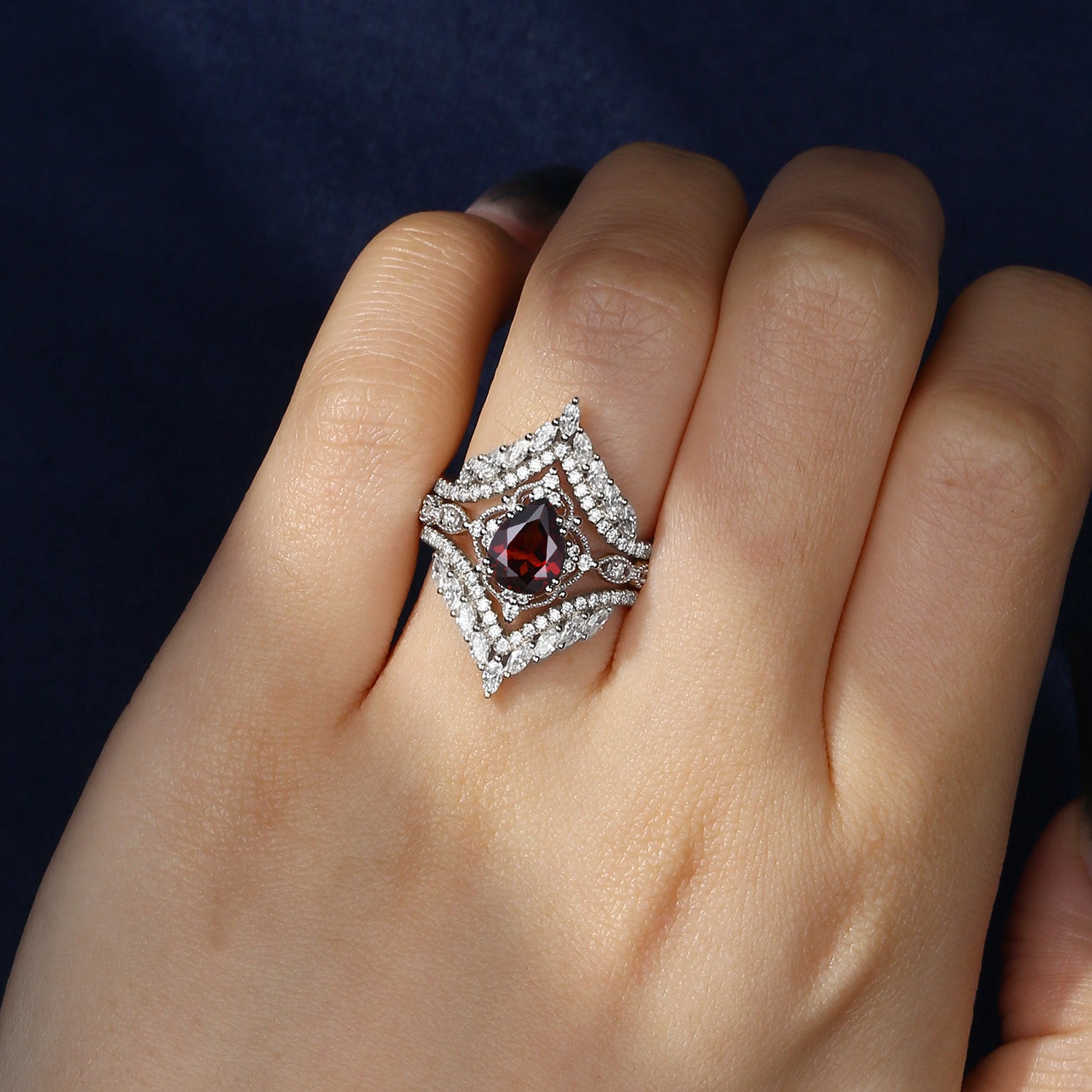 Vintage Inspired Pear Shaped Milgrain Morganite Engagement Ring Set 3pcs - Diva