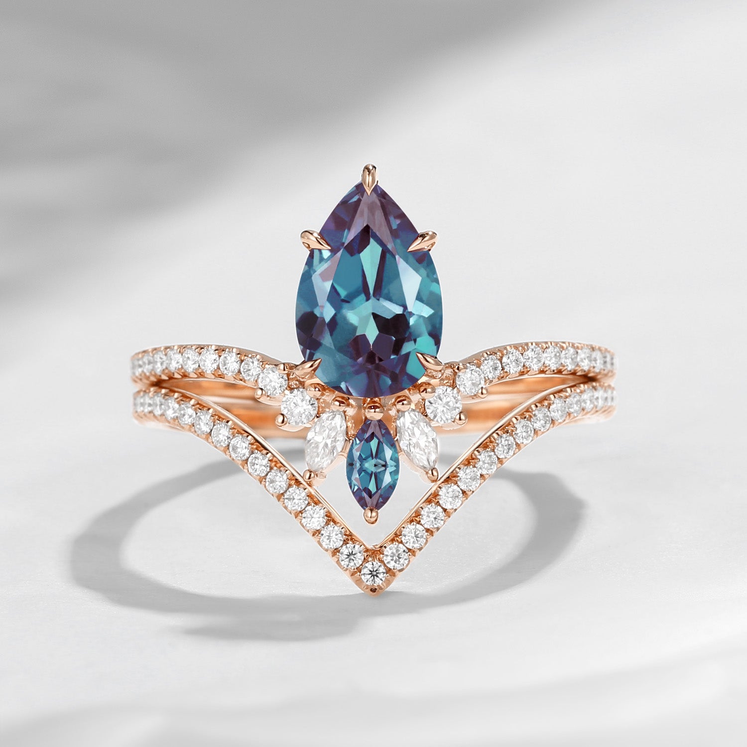 Vintage Pear Cut Alexandrite Engagement Halo Ring