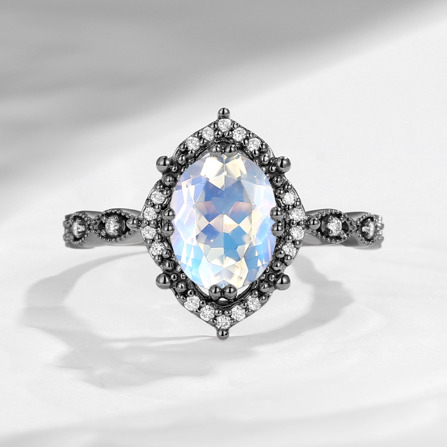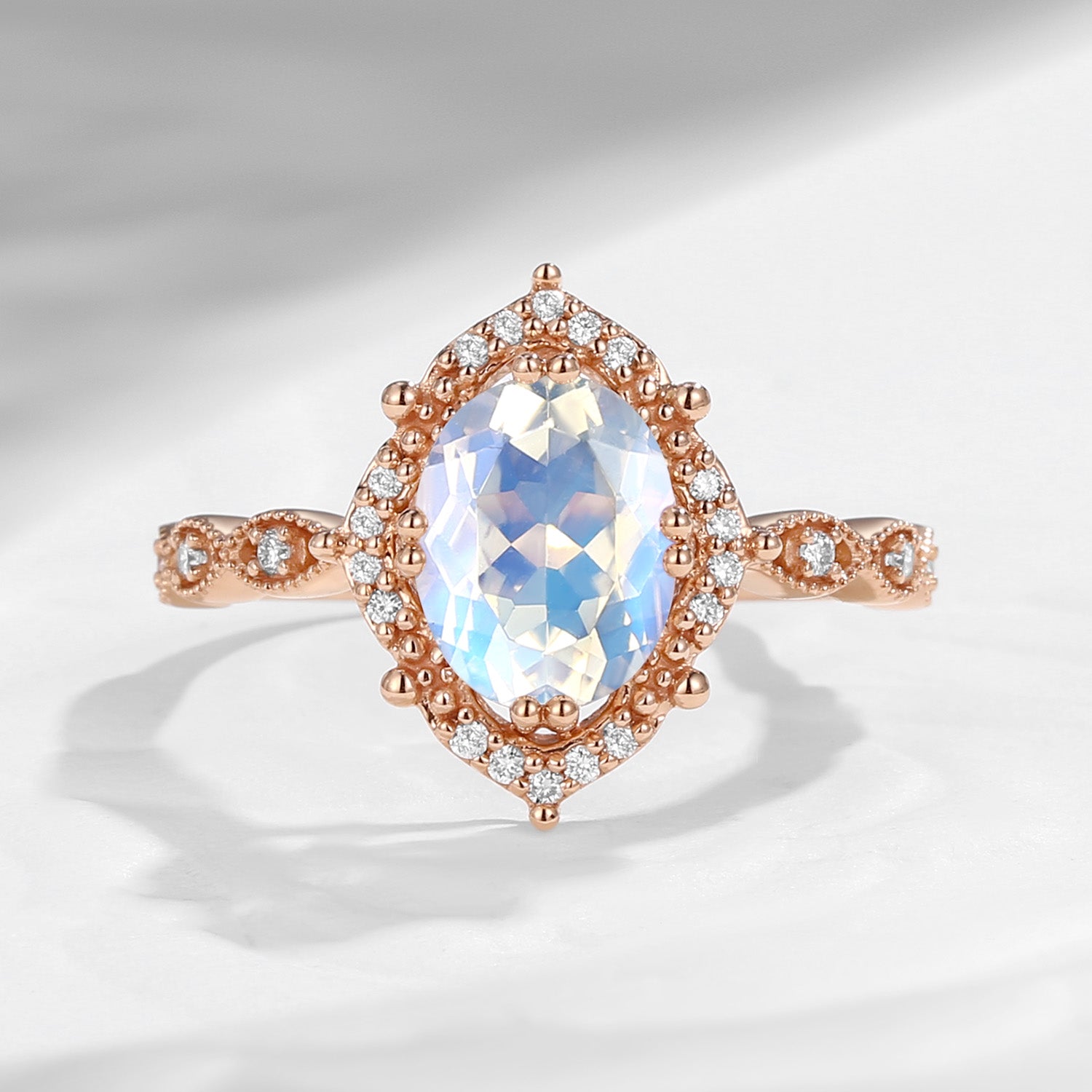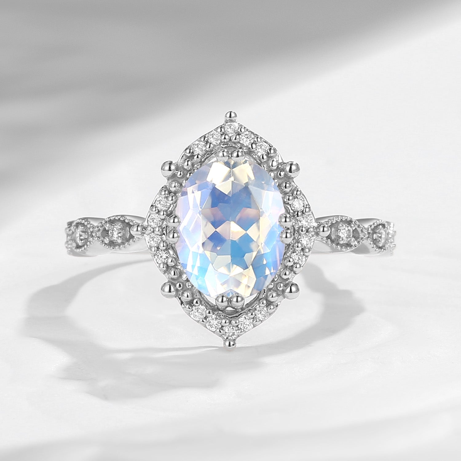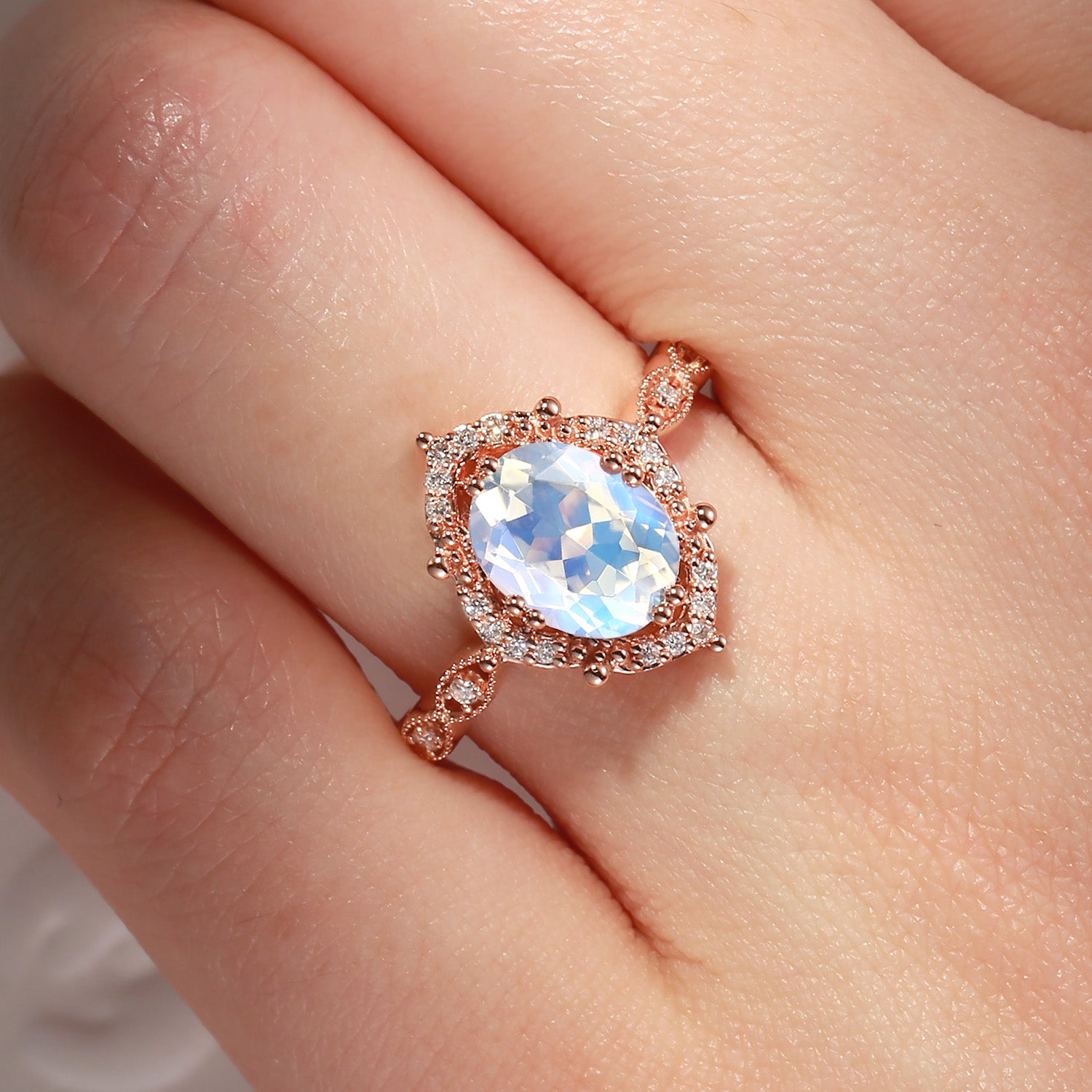 Vintage Style Oval Moonstone Engagement Ring 1ct