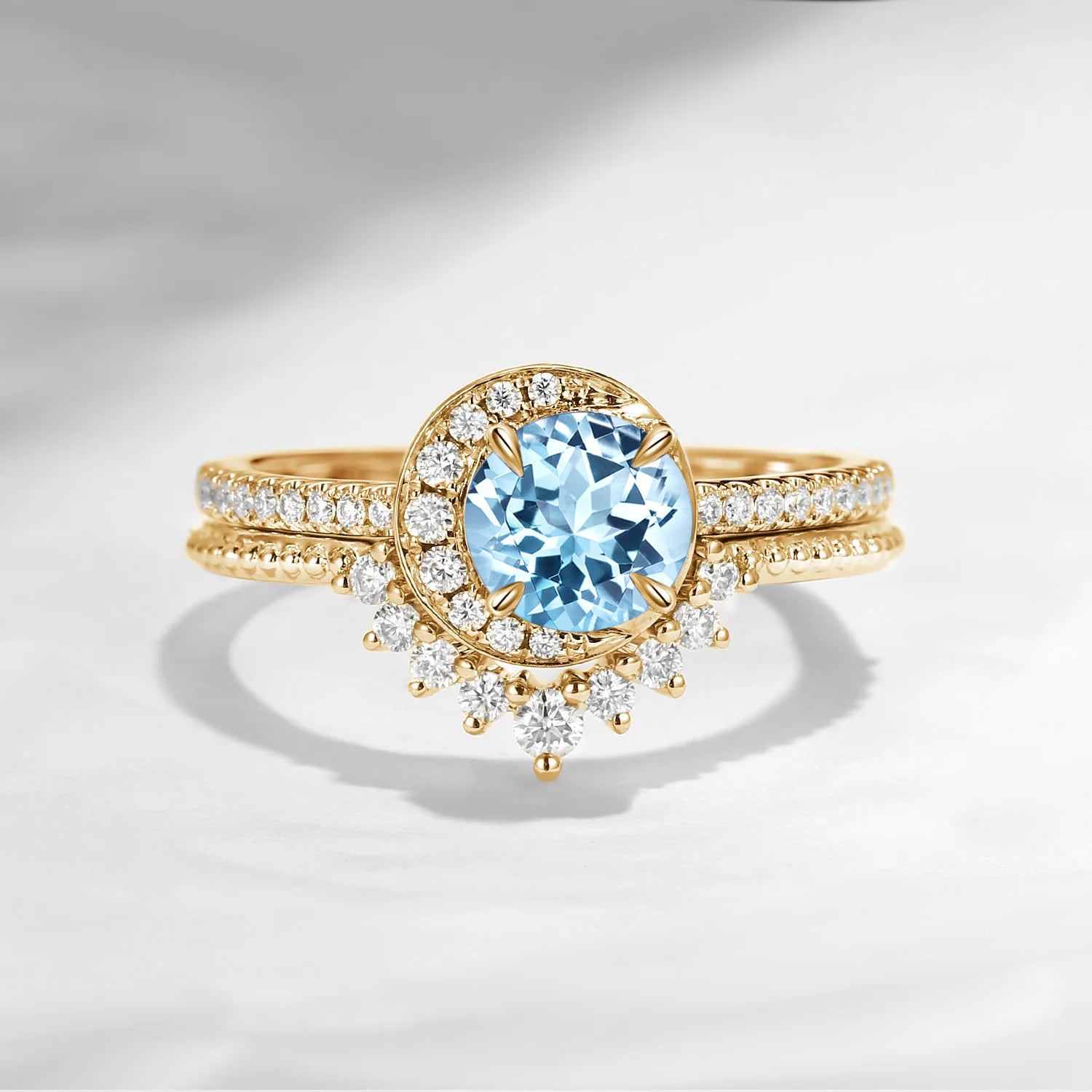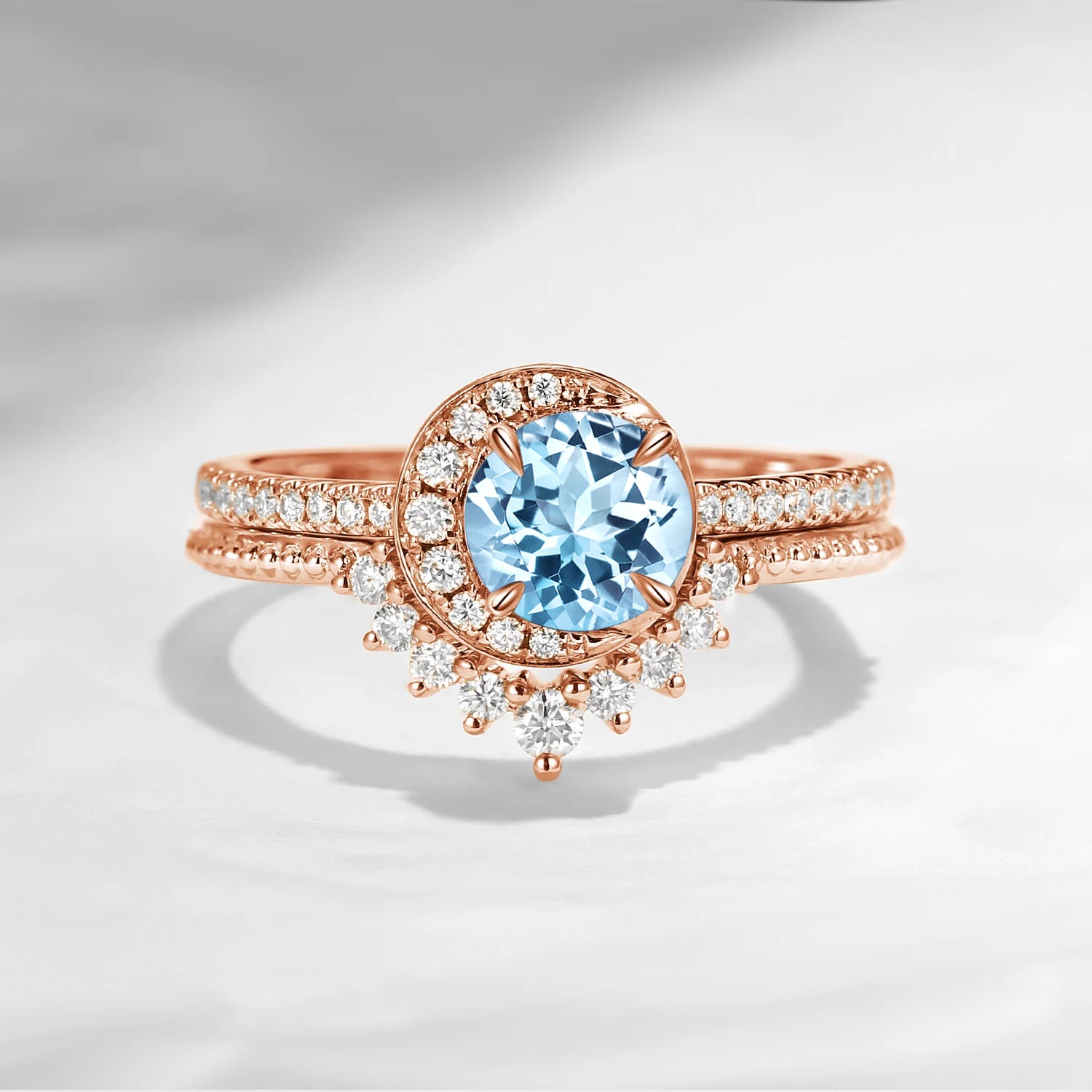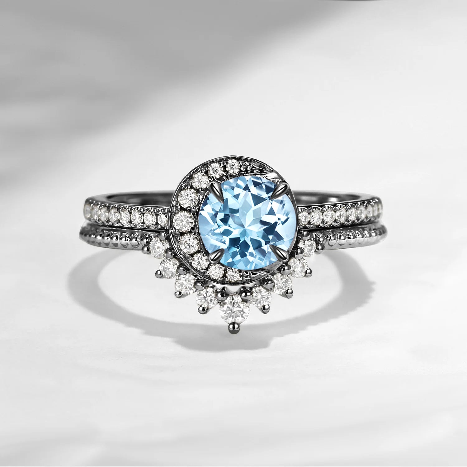 Crescent Moon | Natural Aquamarine Engagement Ring Set 2pcs - Full Moon
