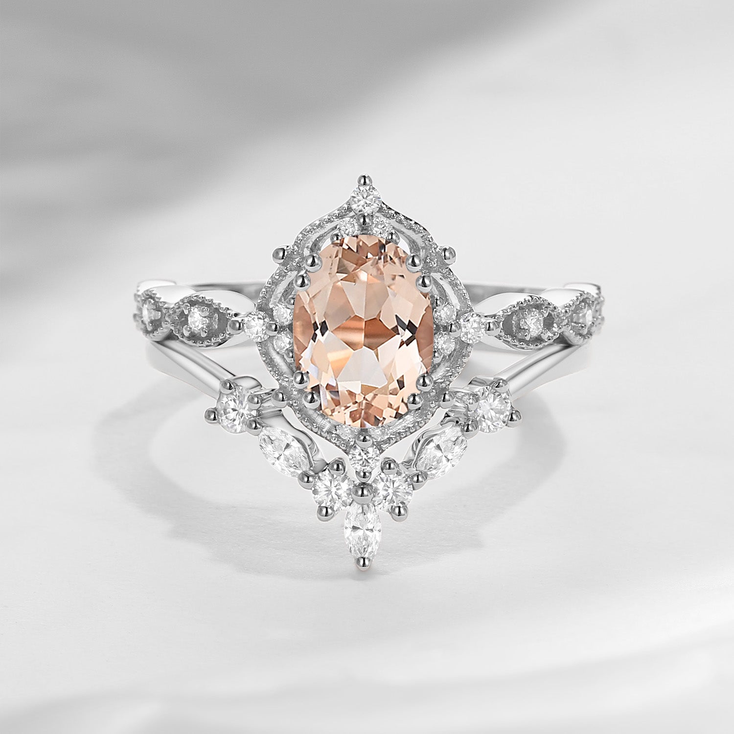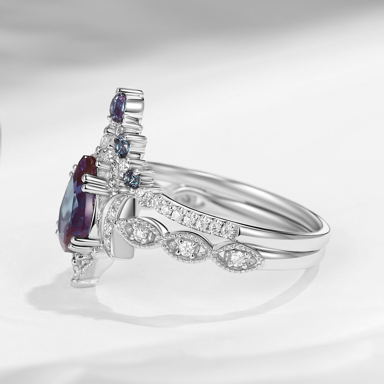 Crescent Moon | Pear Shaped Infinity Halo Ring Set 2PCS