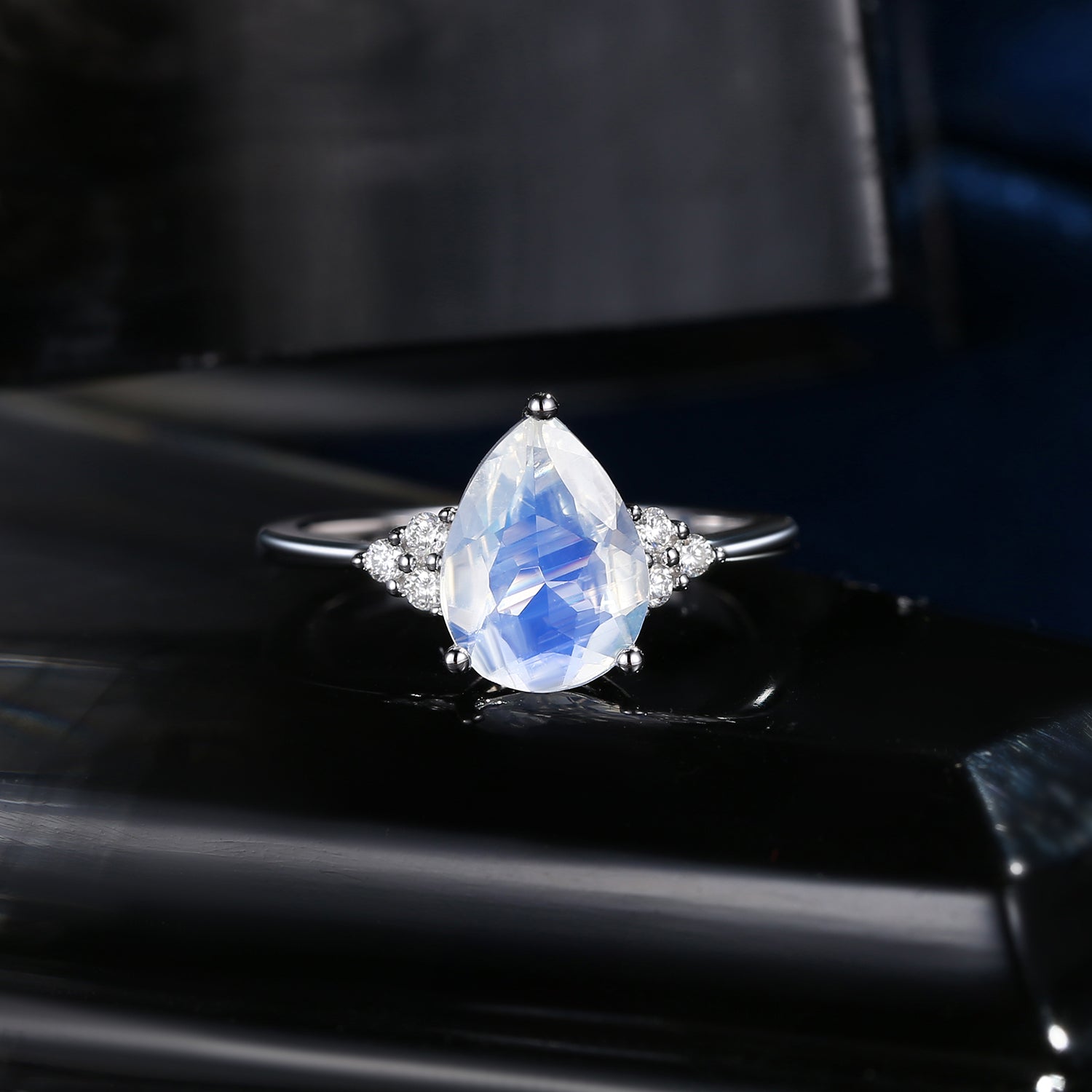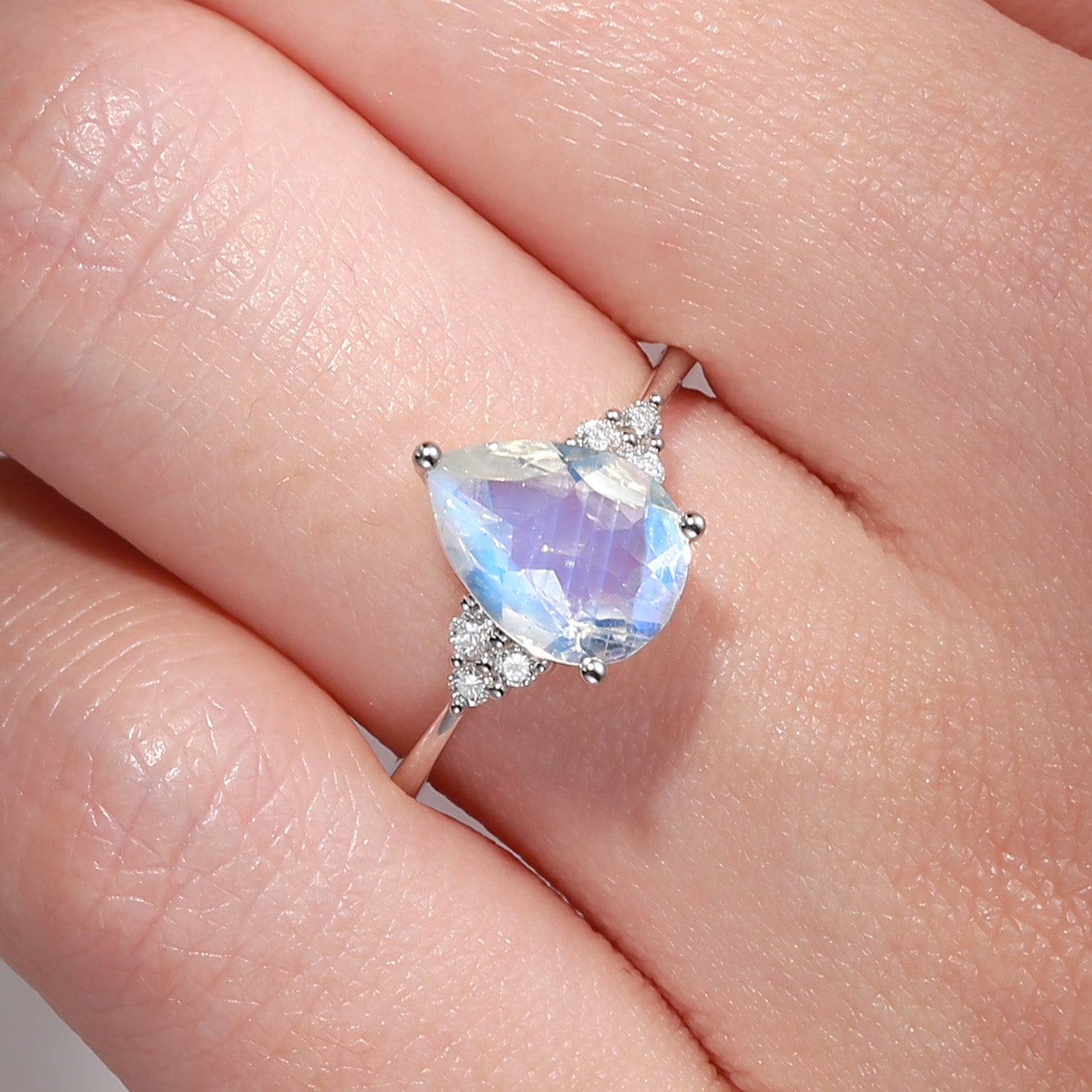 Pear Shaped Moonstone Engagement Ring Cluster Ring