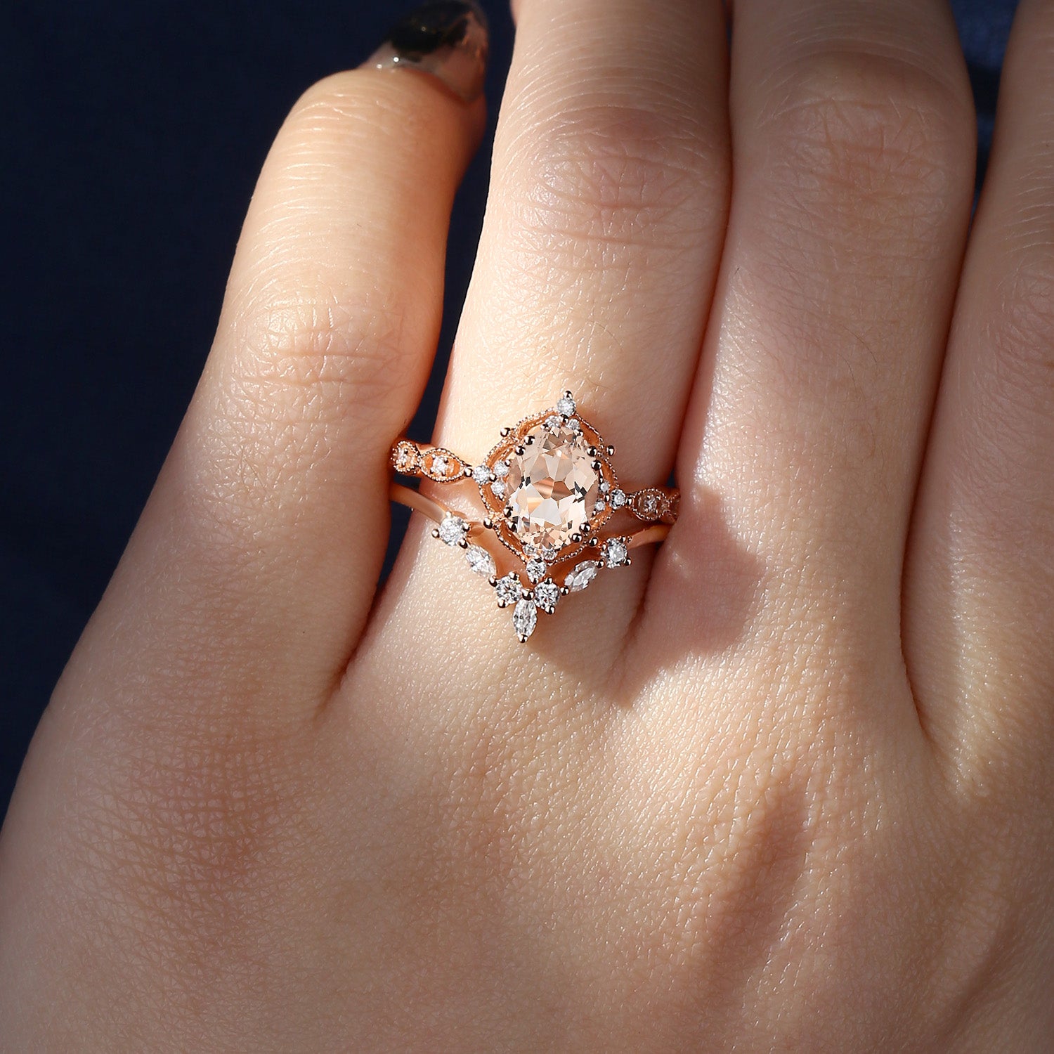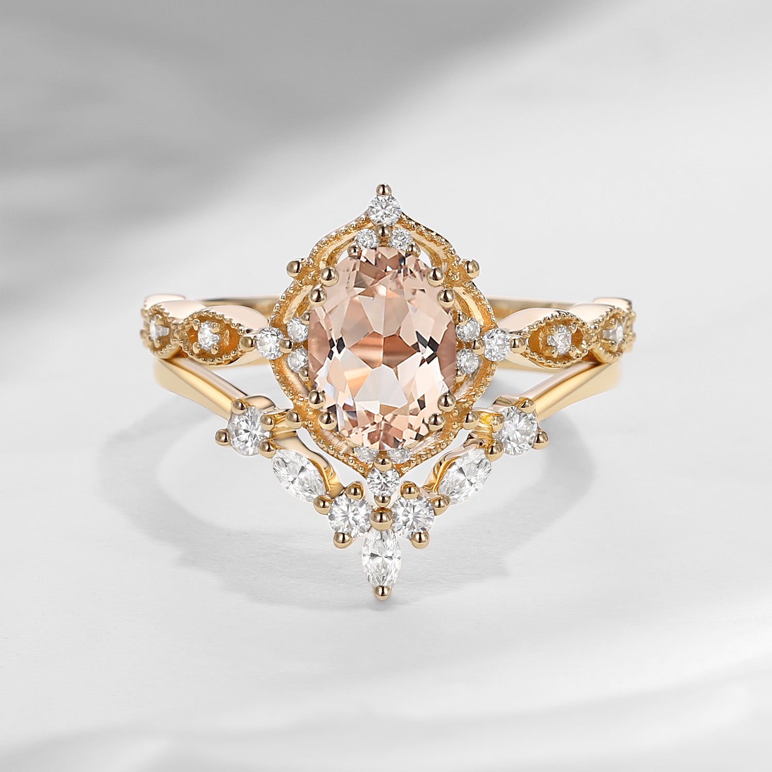 Crescent Moon | Moonstone Crescent Engagement Ring Set 3pcs In Pear 18K