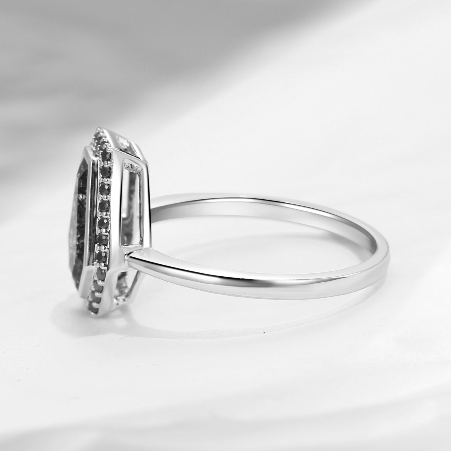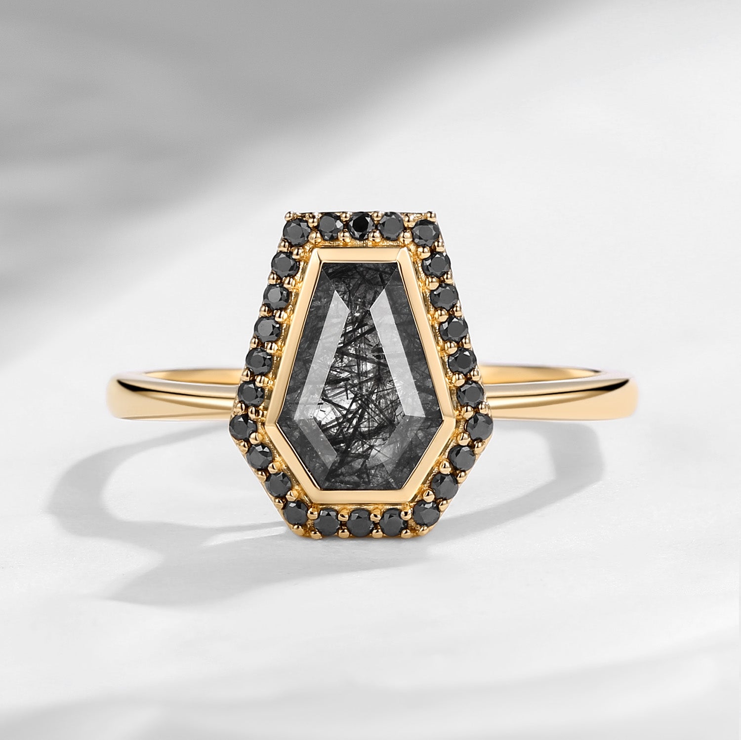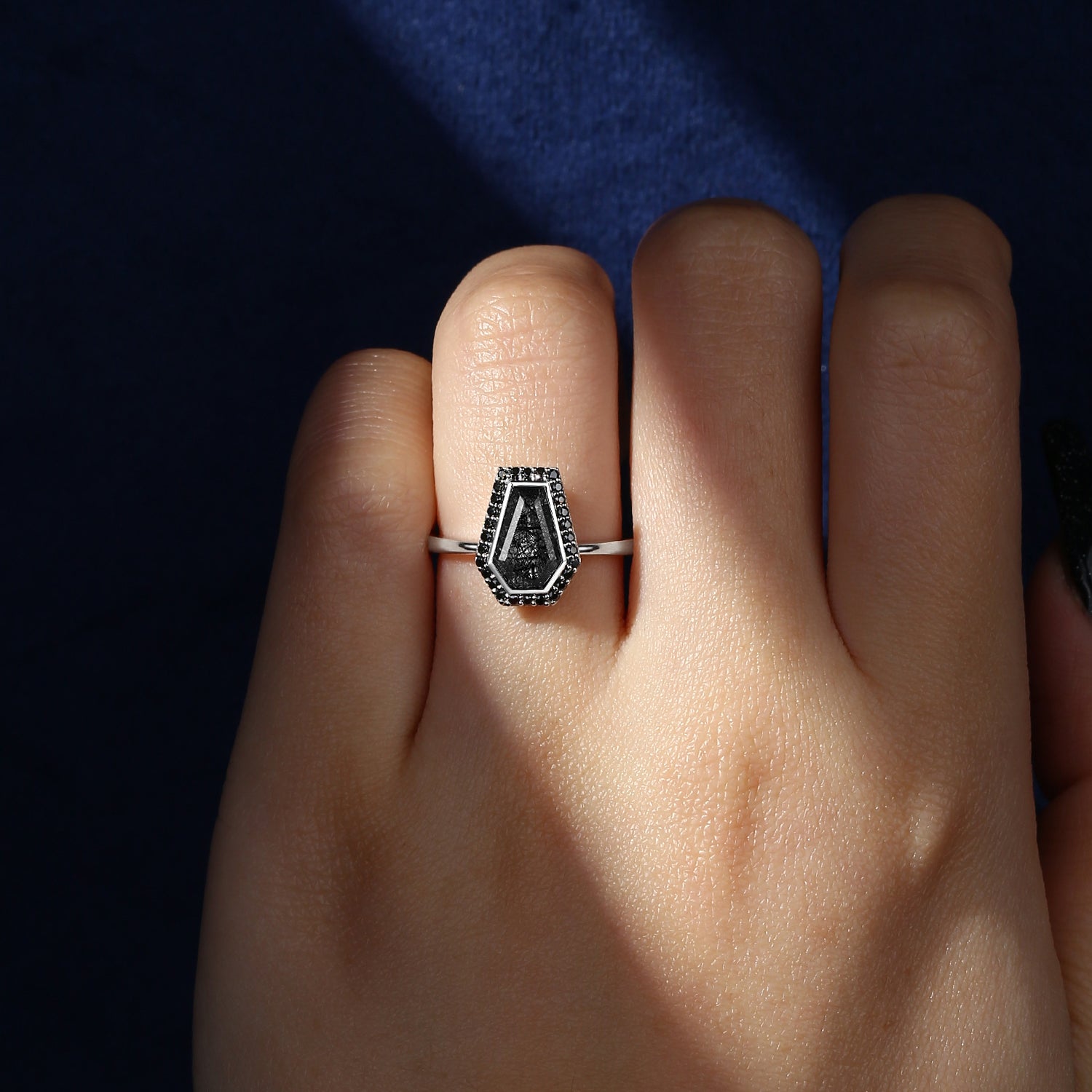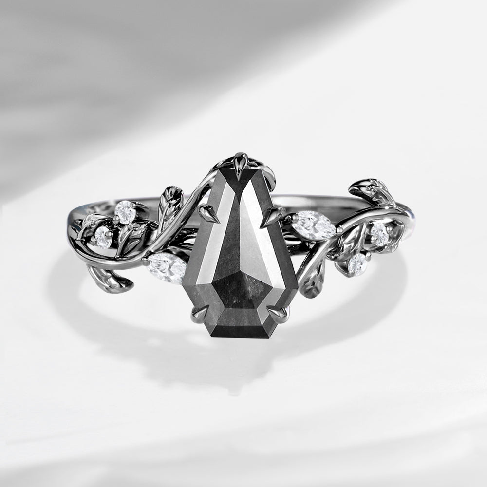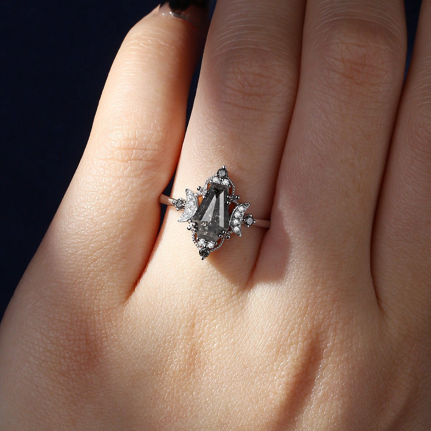 Crescent Moon | Unique Coffin Salt And Pepper Diamond 'Evermore' Engagement Ring