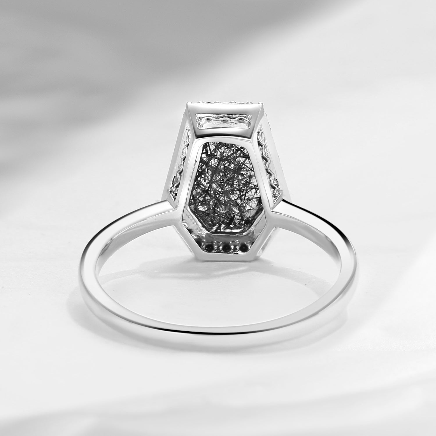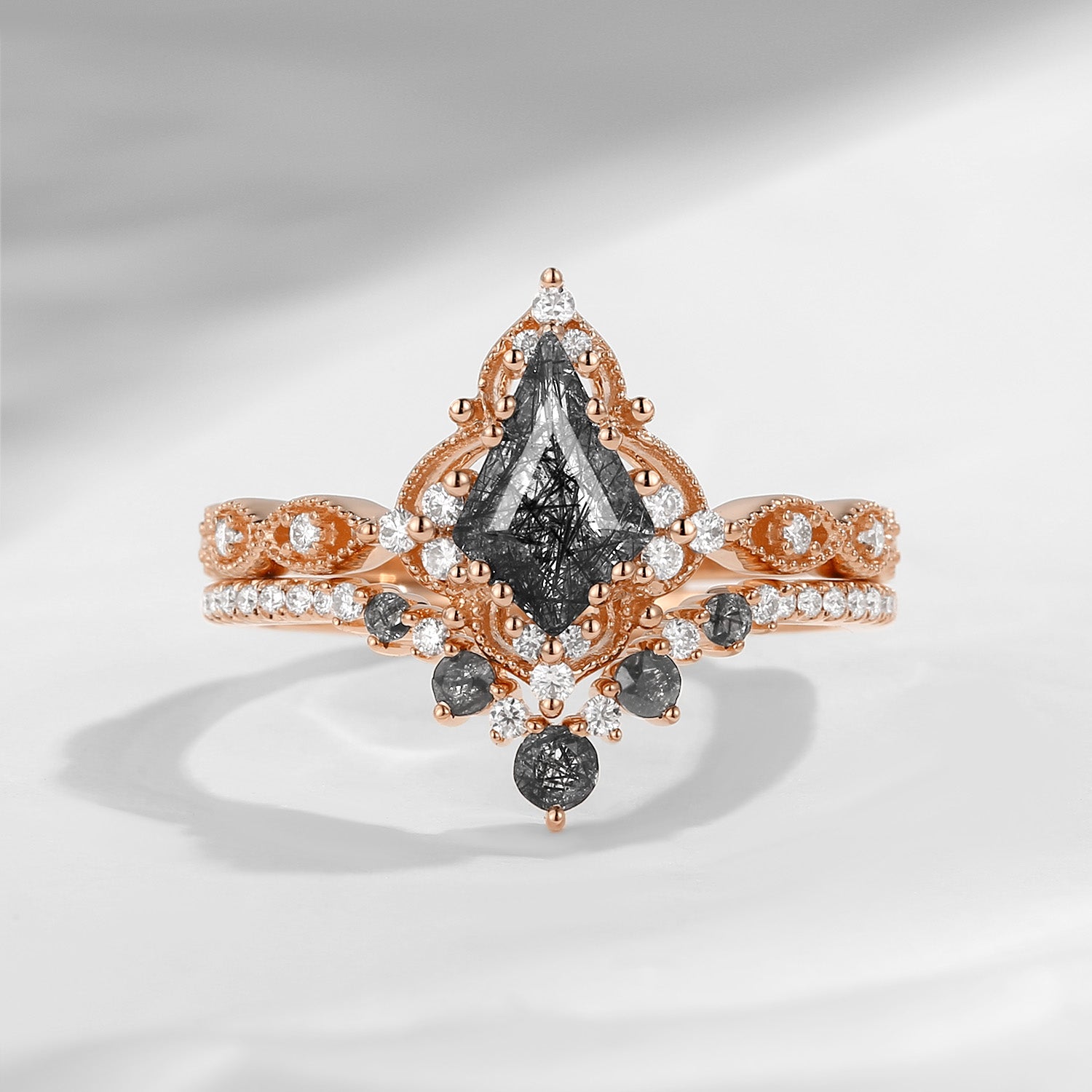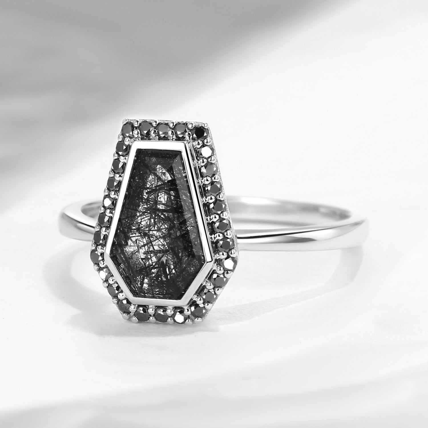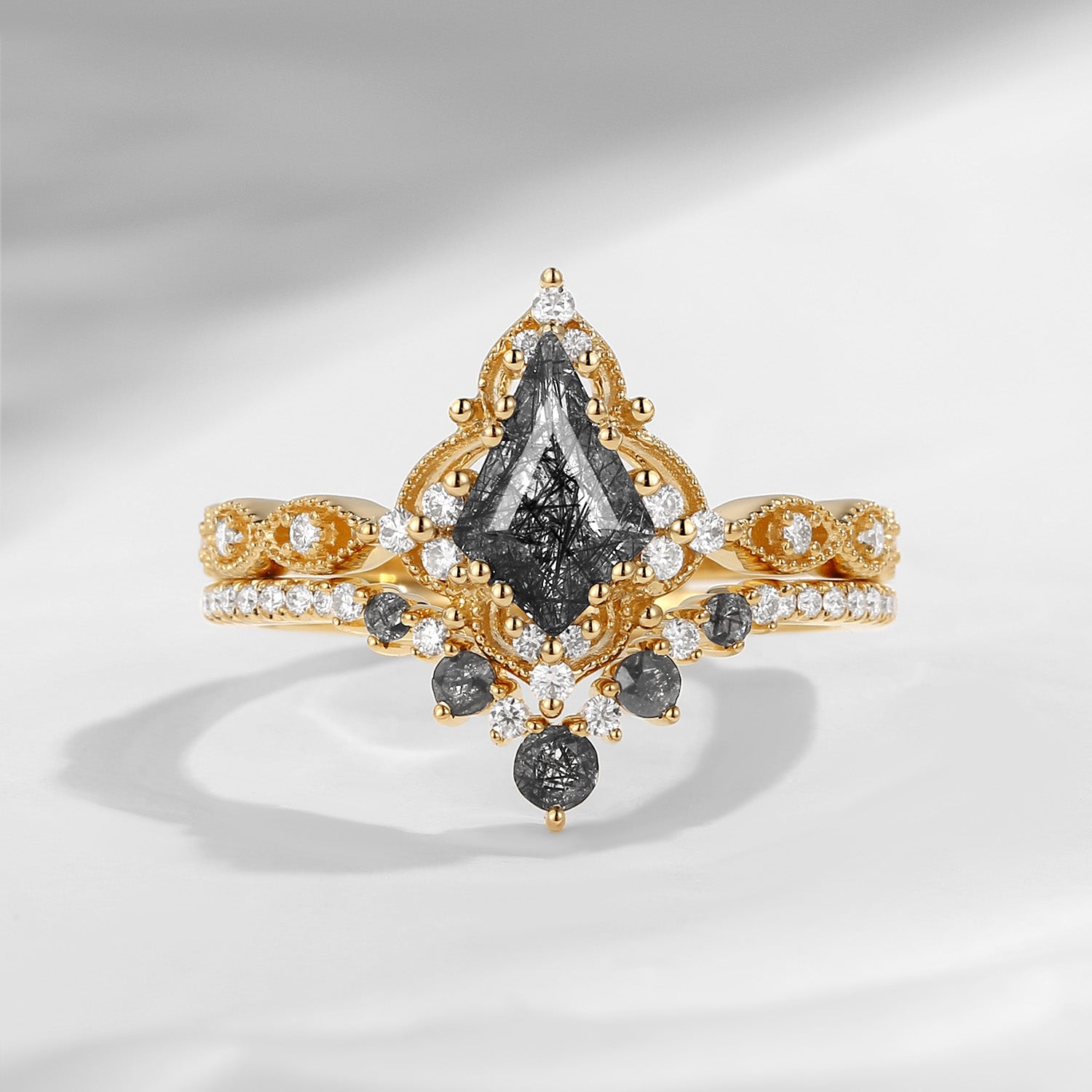 Crescent Moon | Coffin Cut Black Rutilated Quartz Engagement Ring Set 2pcs - Infinity Galaxy