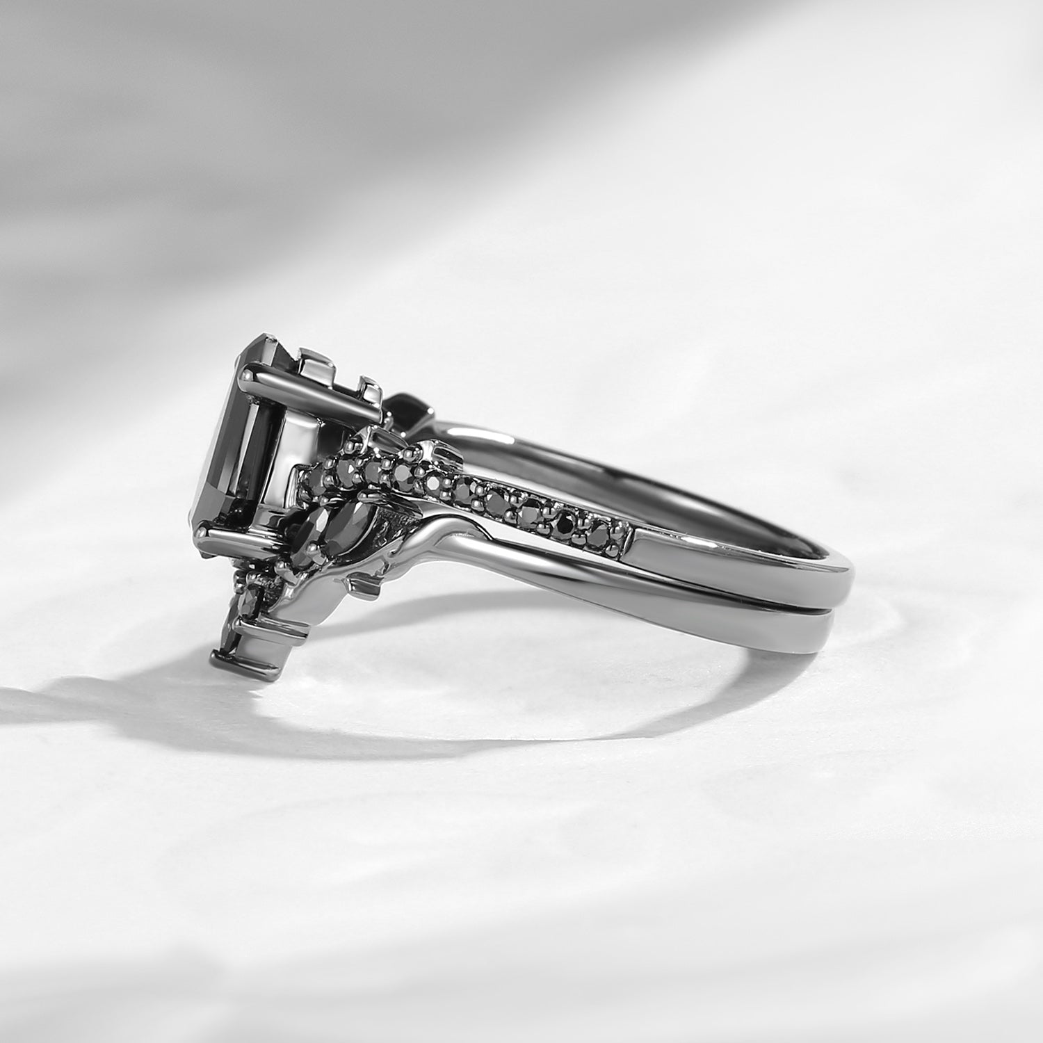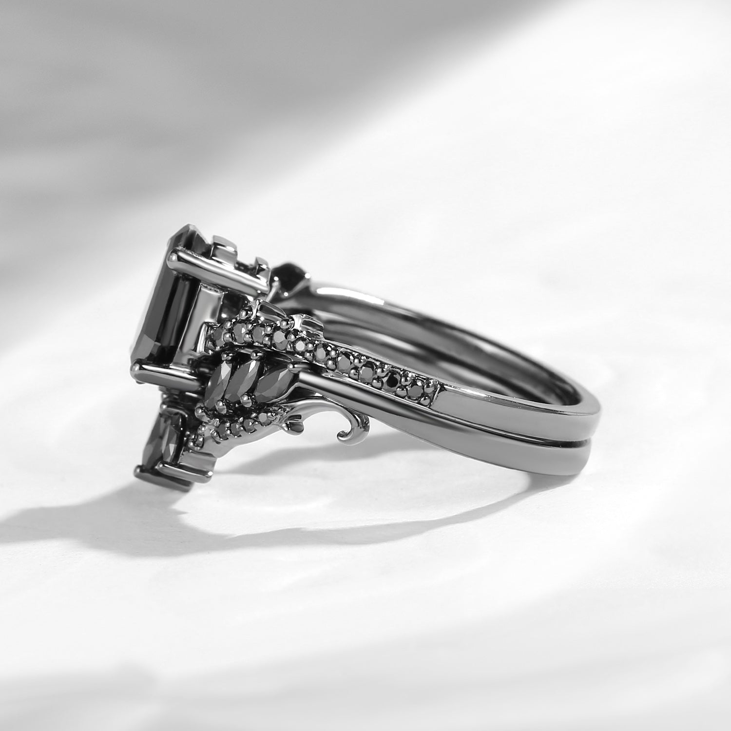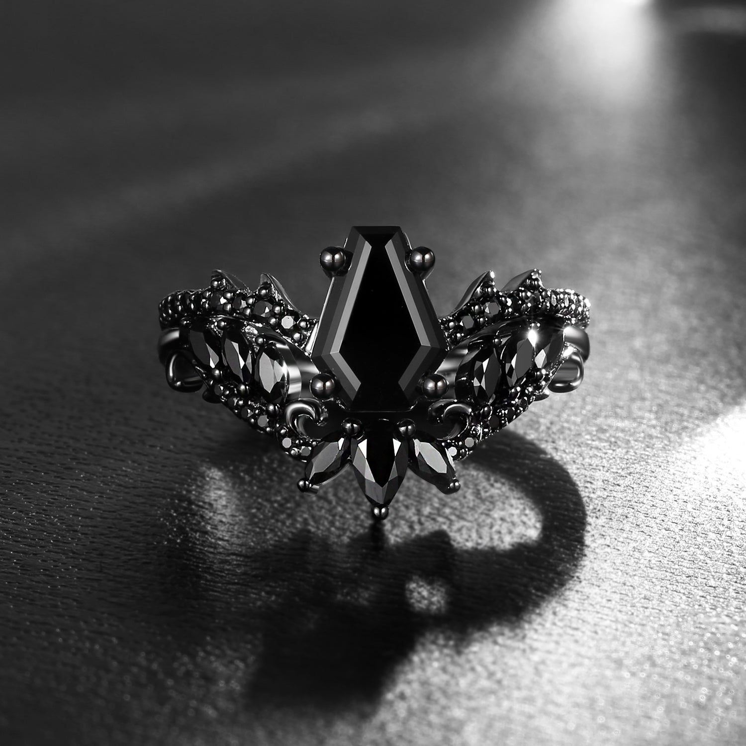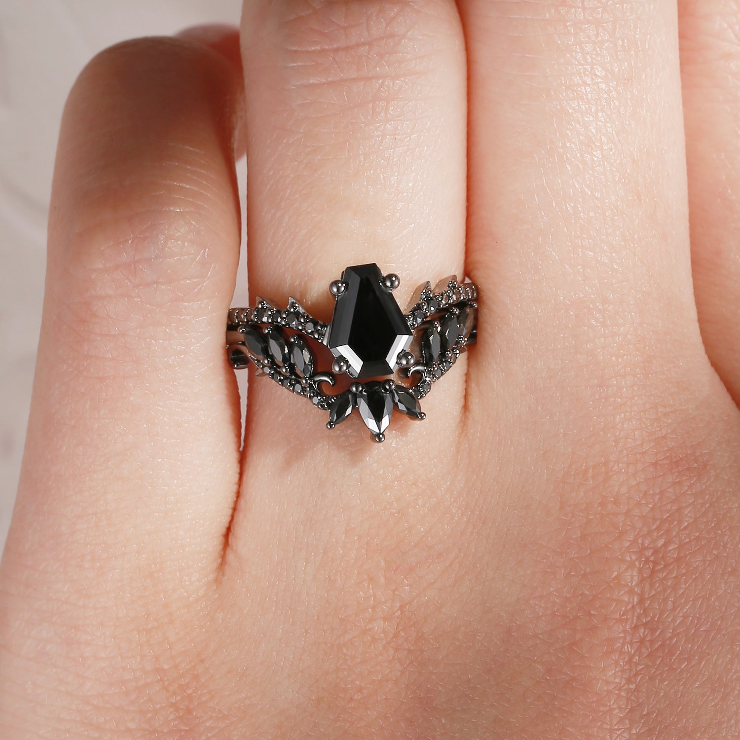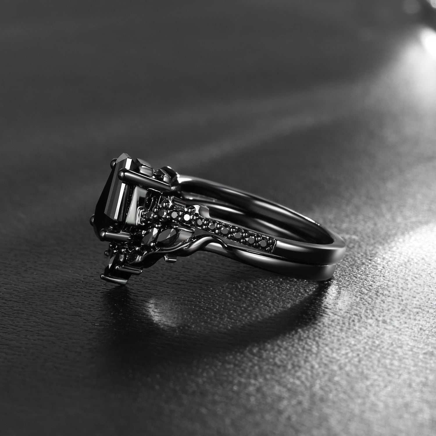Gothic Style Coffin Black Moissanite Vine And Thorns Engagement Ring 2pcs