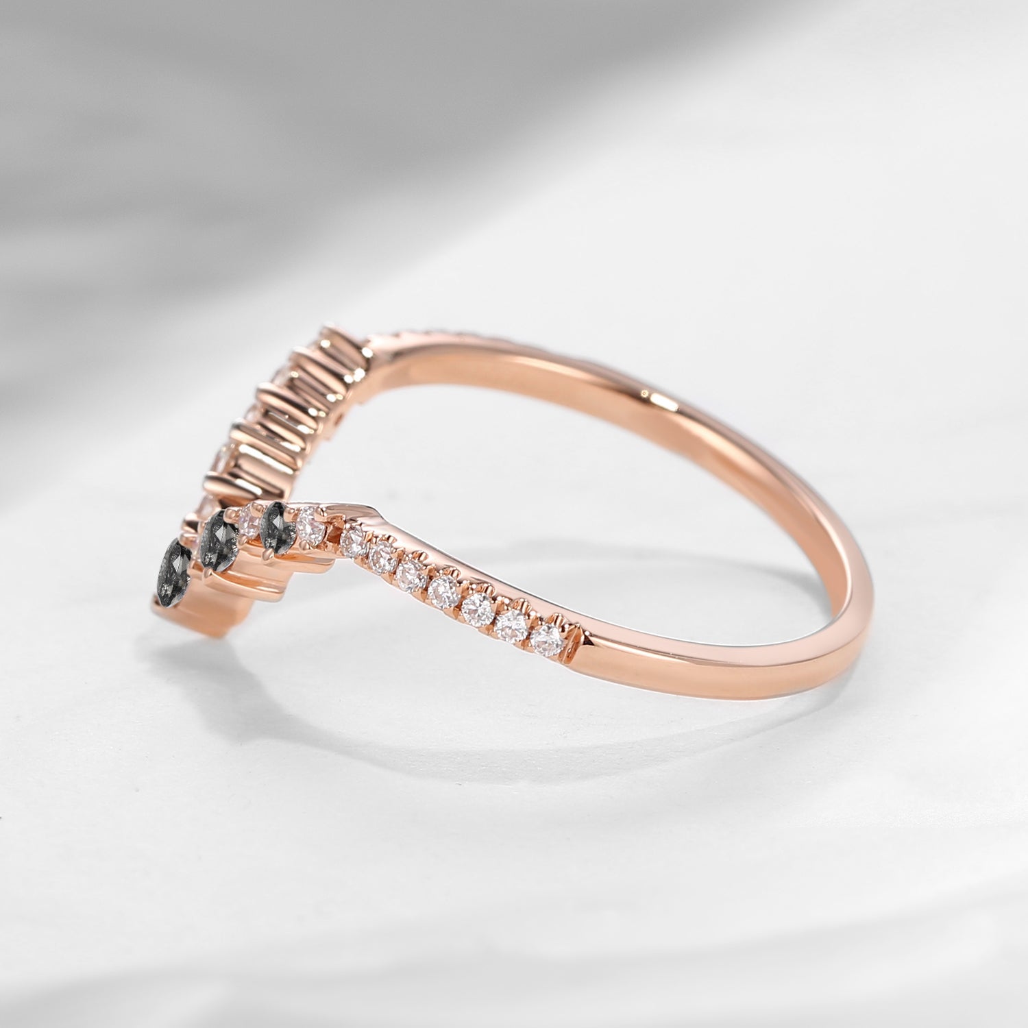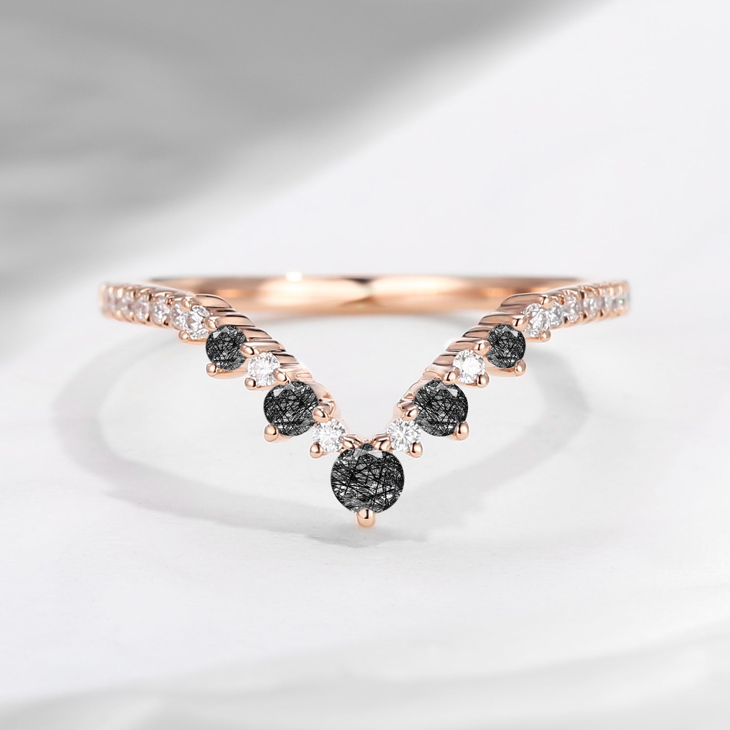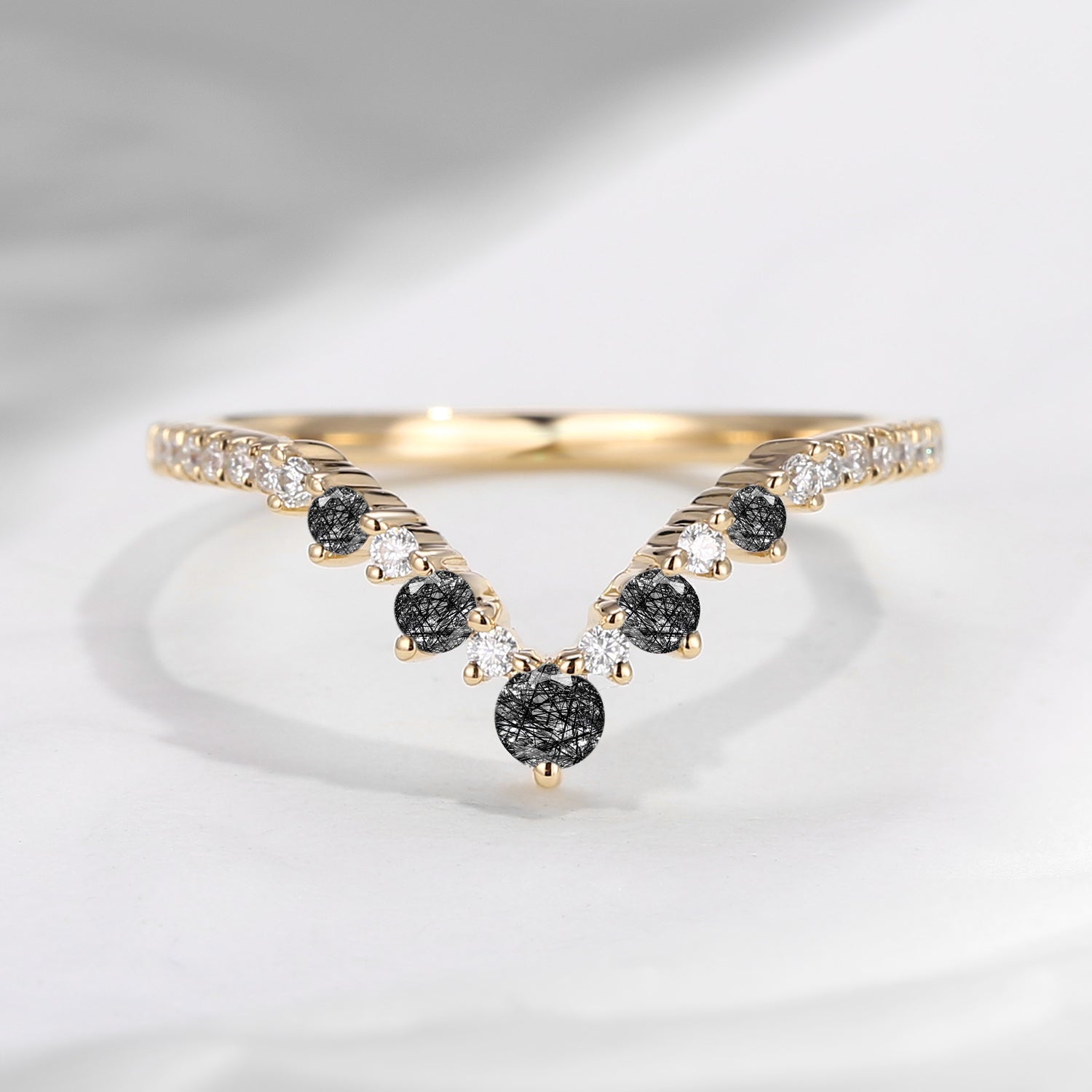 Black Rutilated Quartz Curved Wedding Band