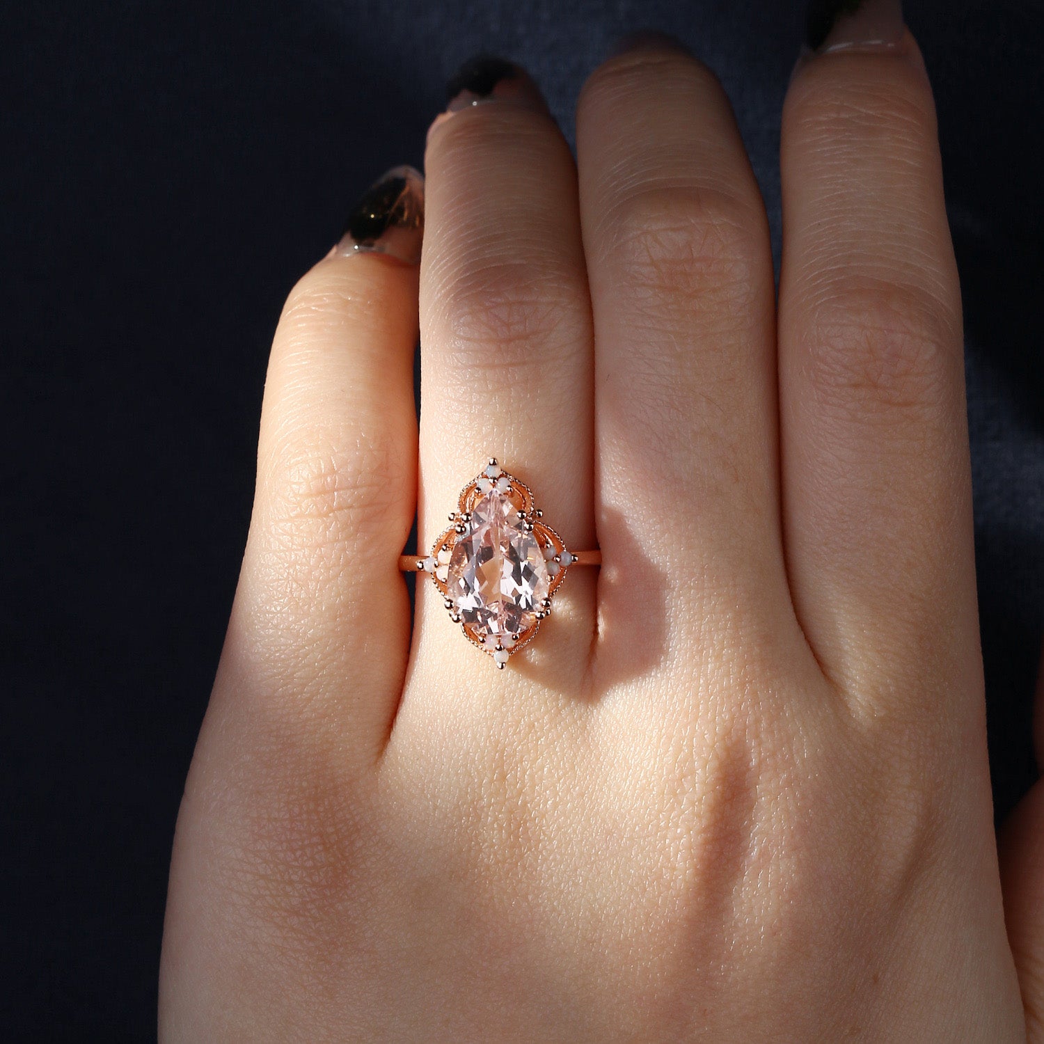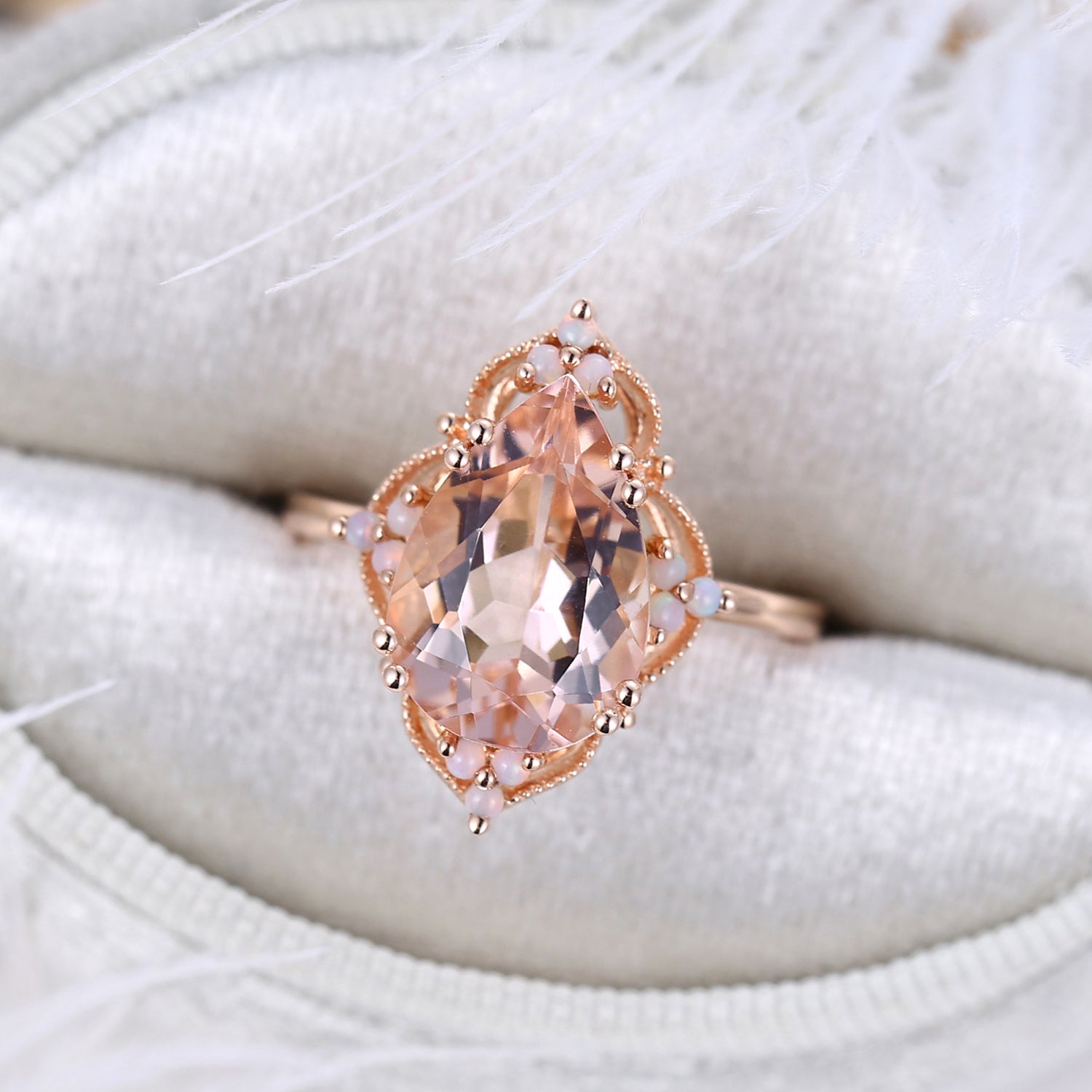 Vintage style 3ct Morganite OPAL Engagement Ring in pear shape