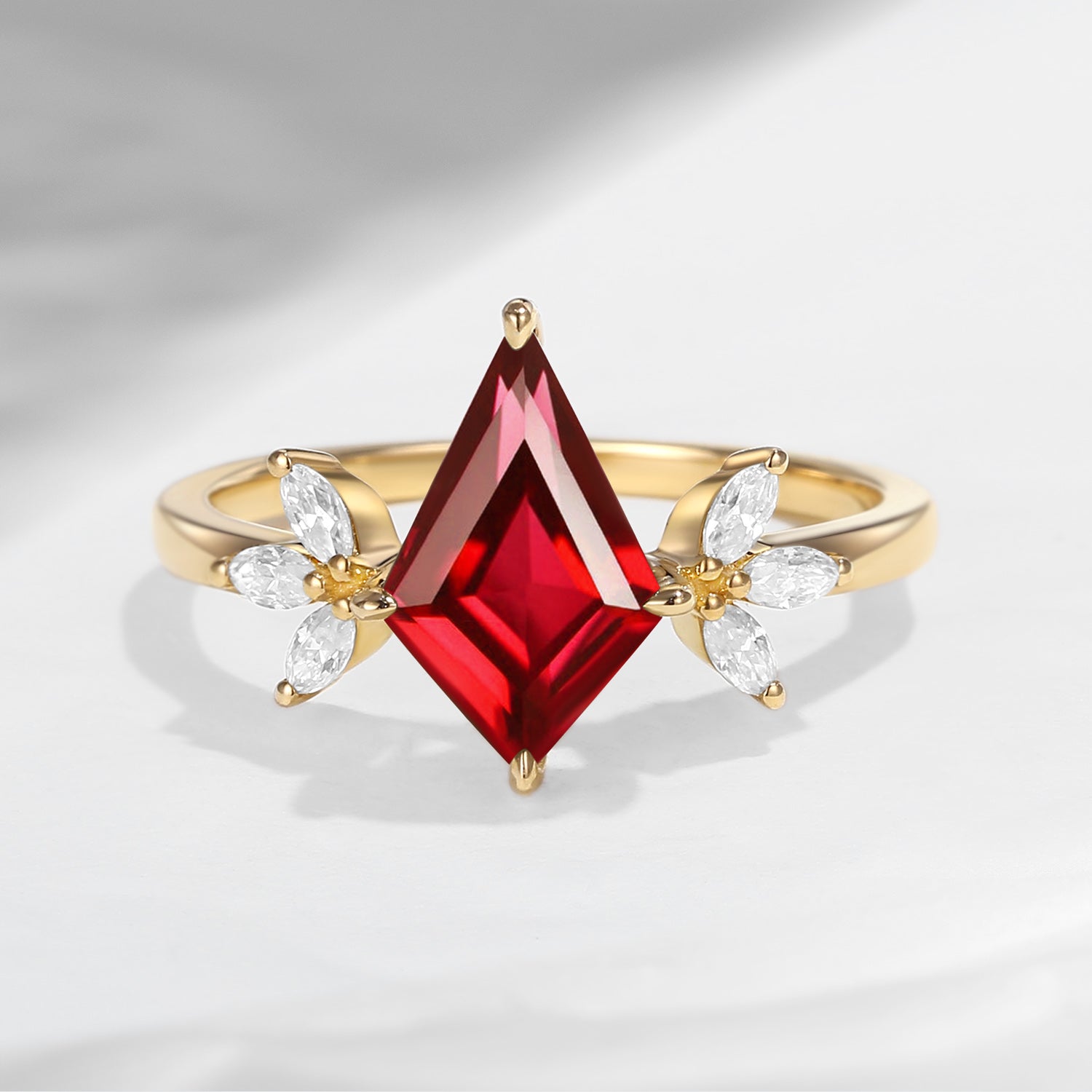 Unique Kite Shaped Lab Ruby Butterfly Engagement Ring
