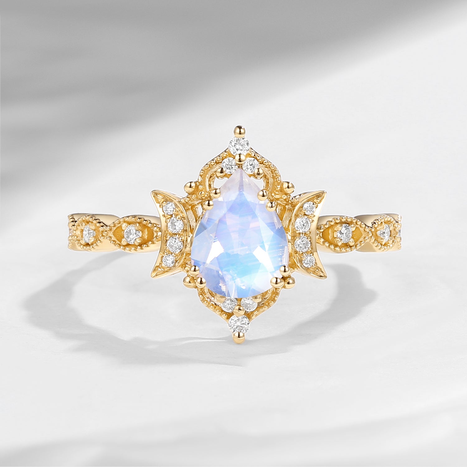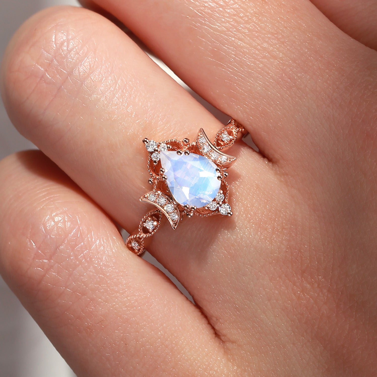 Crescent Moon | Unique Antique Pear Shaped Moonstone Engagement Ring Moon Ring