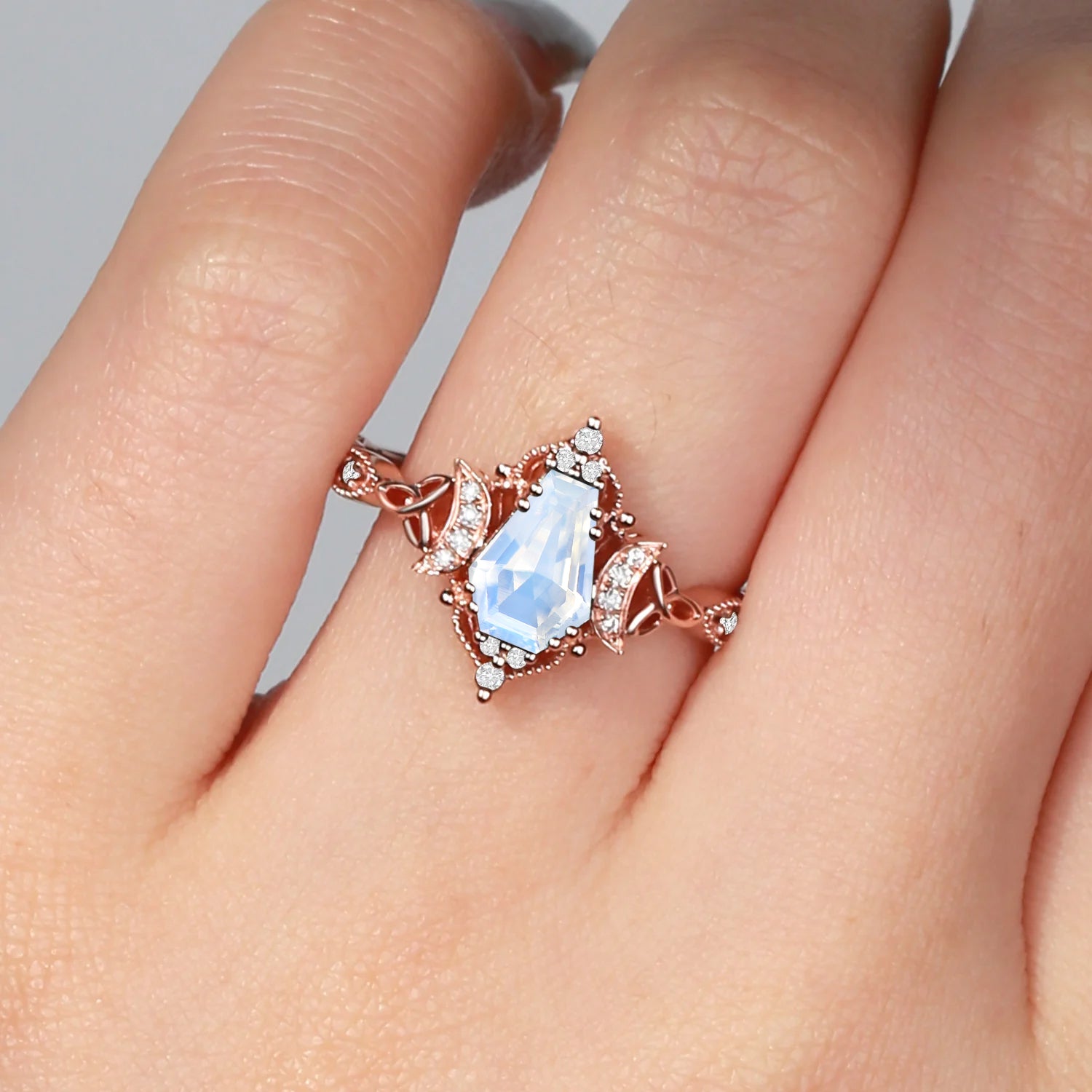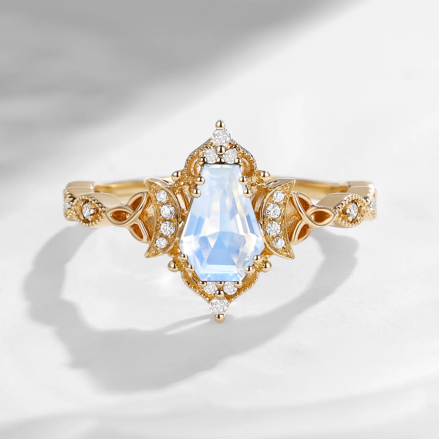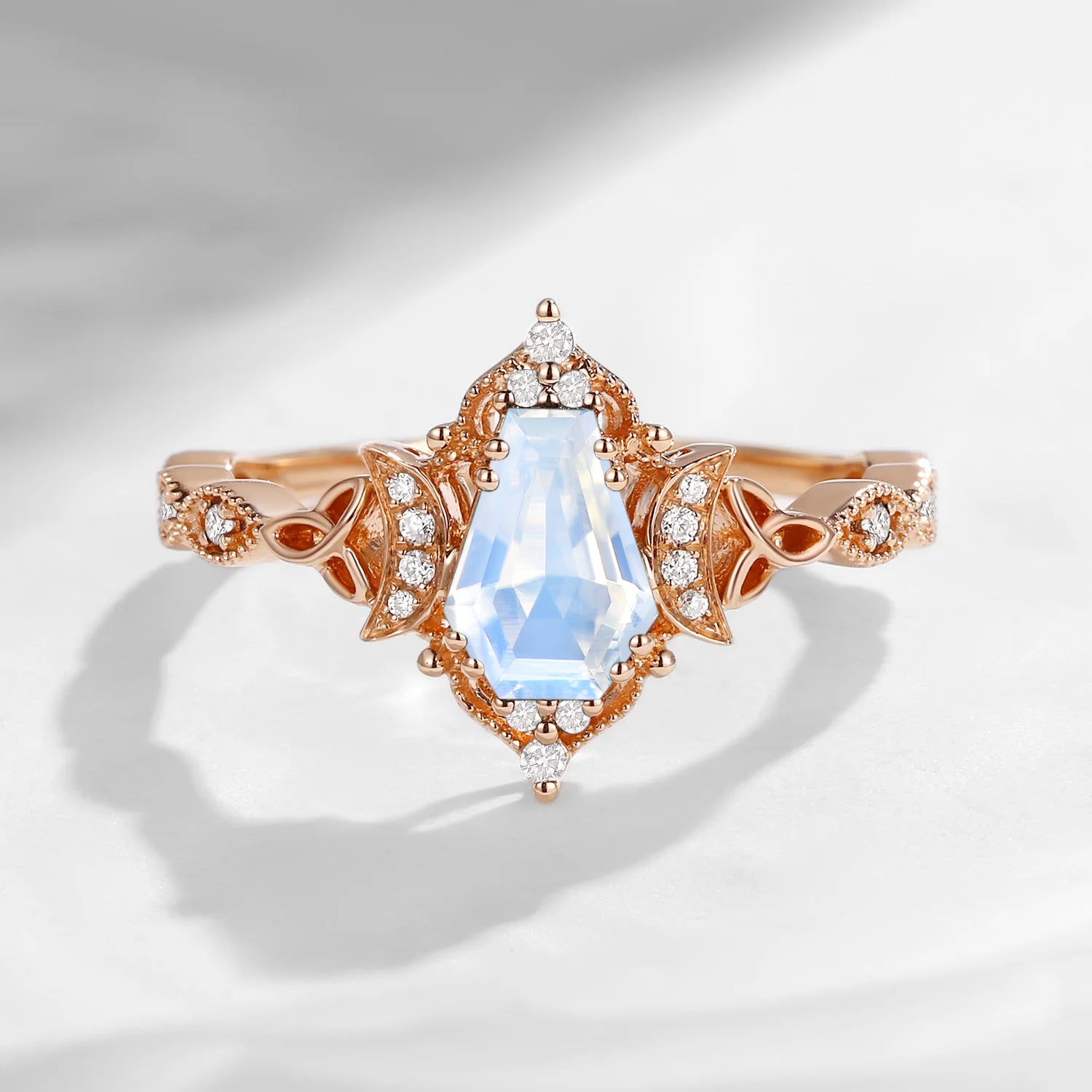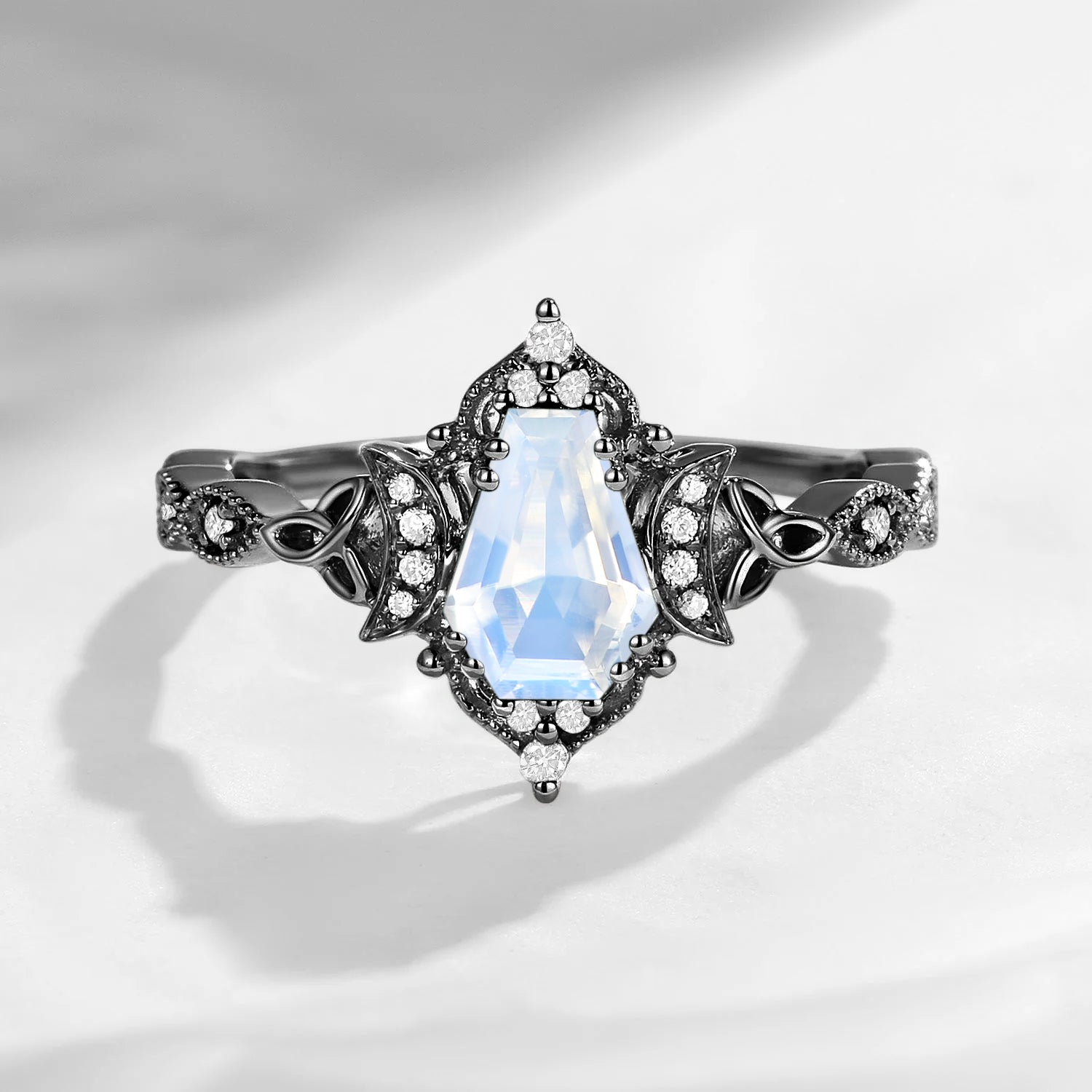 Crescent Moon | Unique Coffin Moonstone Infinity Celtic Engagement Ring