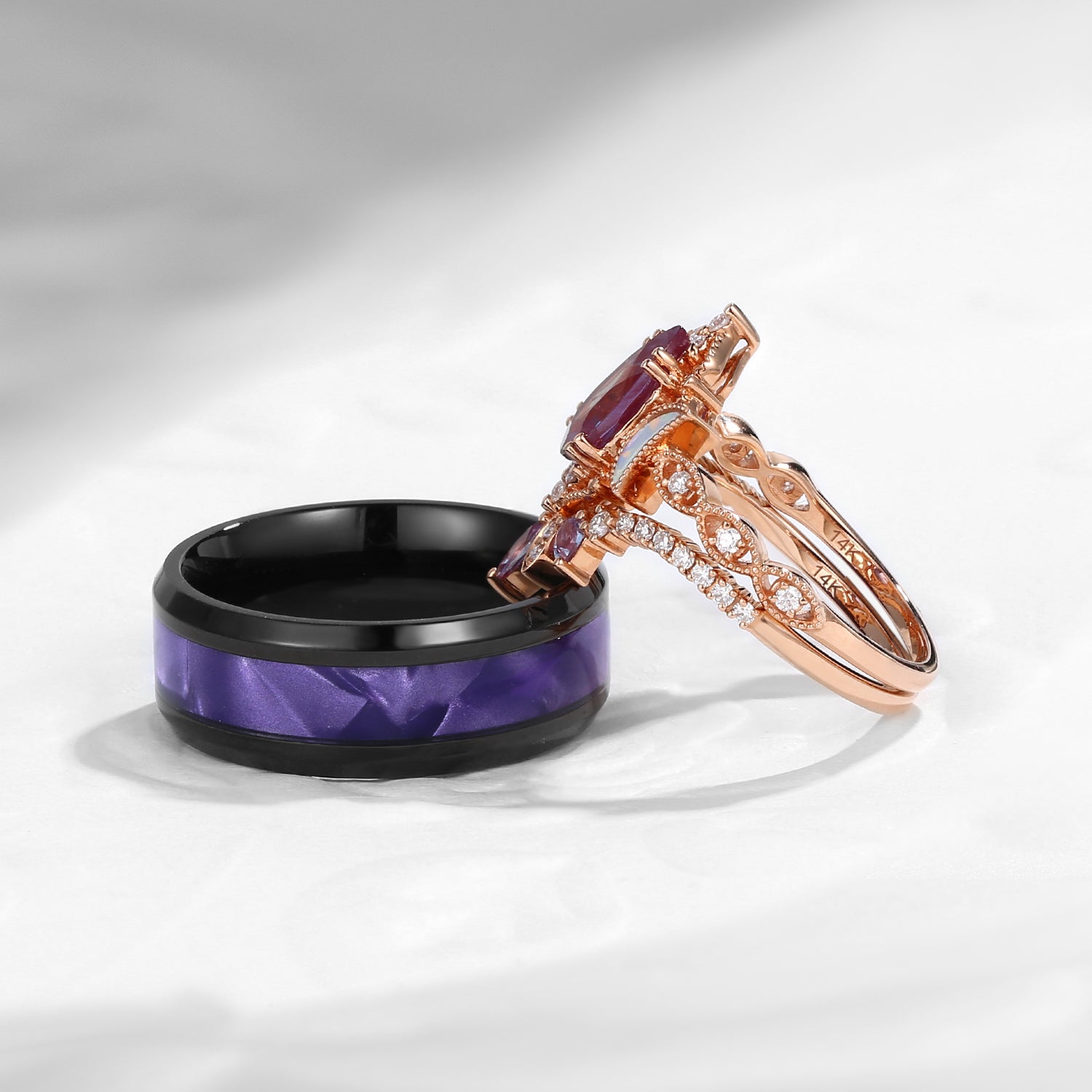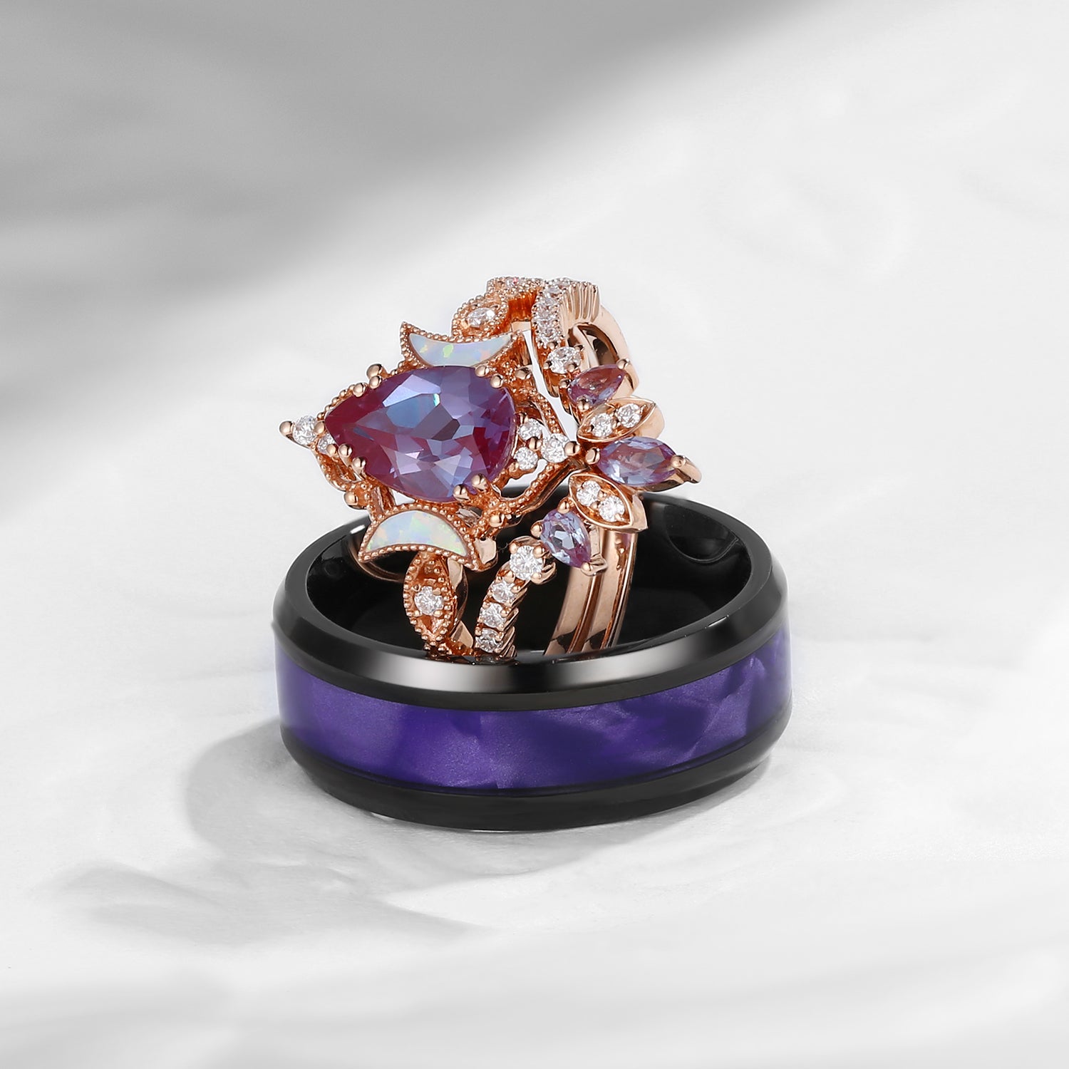 Fantasy Cut Elegant Vintage Style Marquise Alexandrite Bridal Set 3pcs