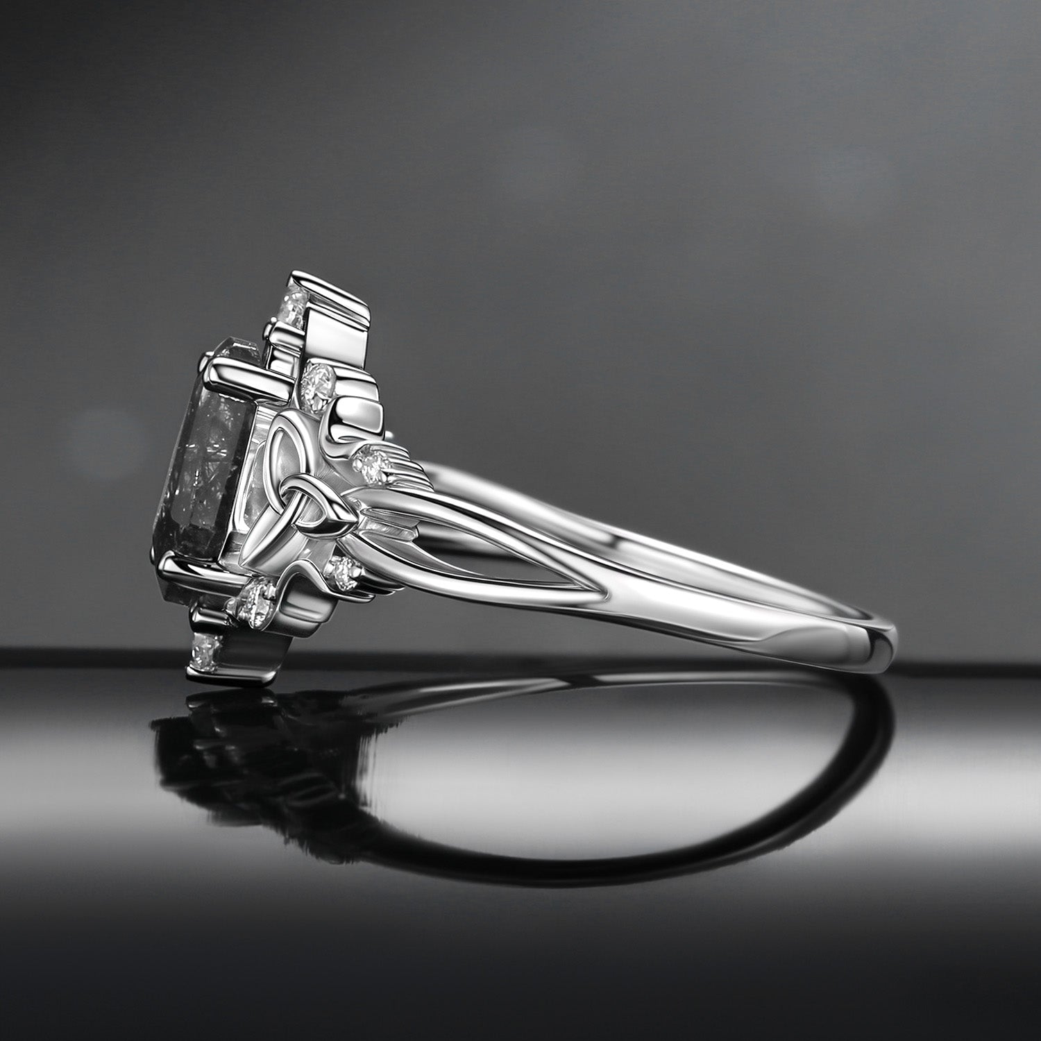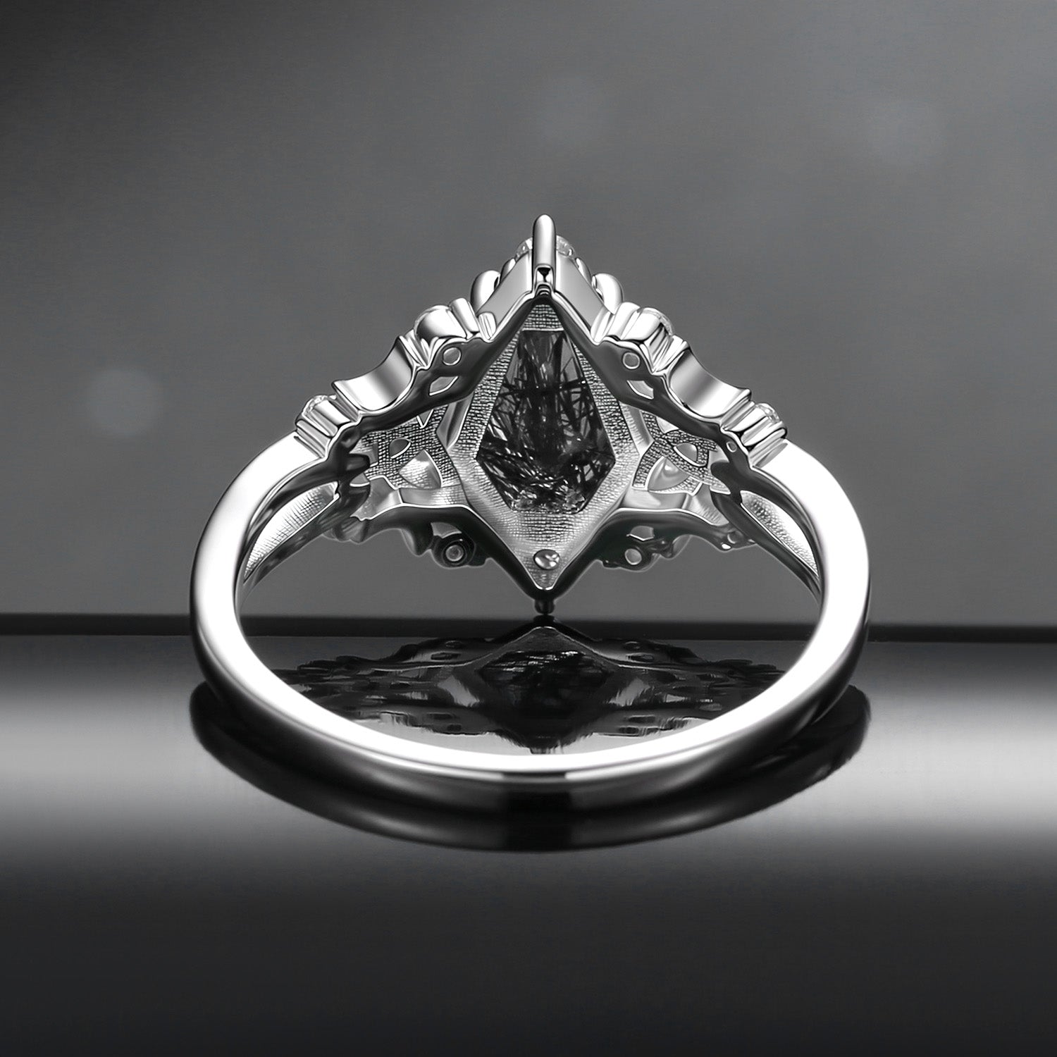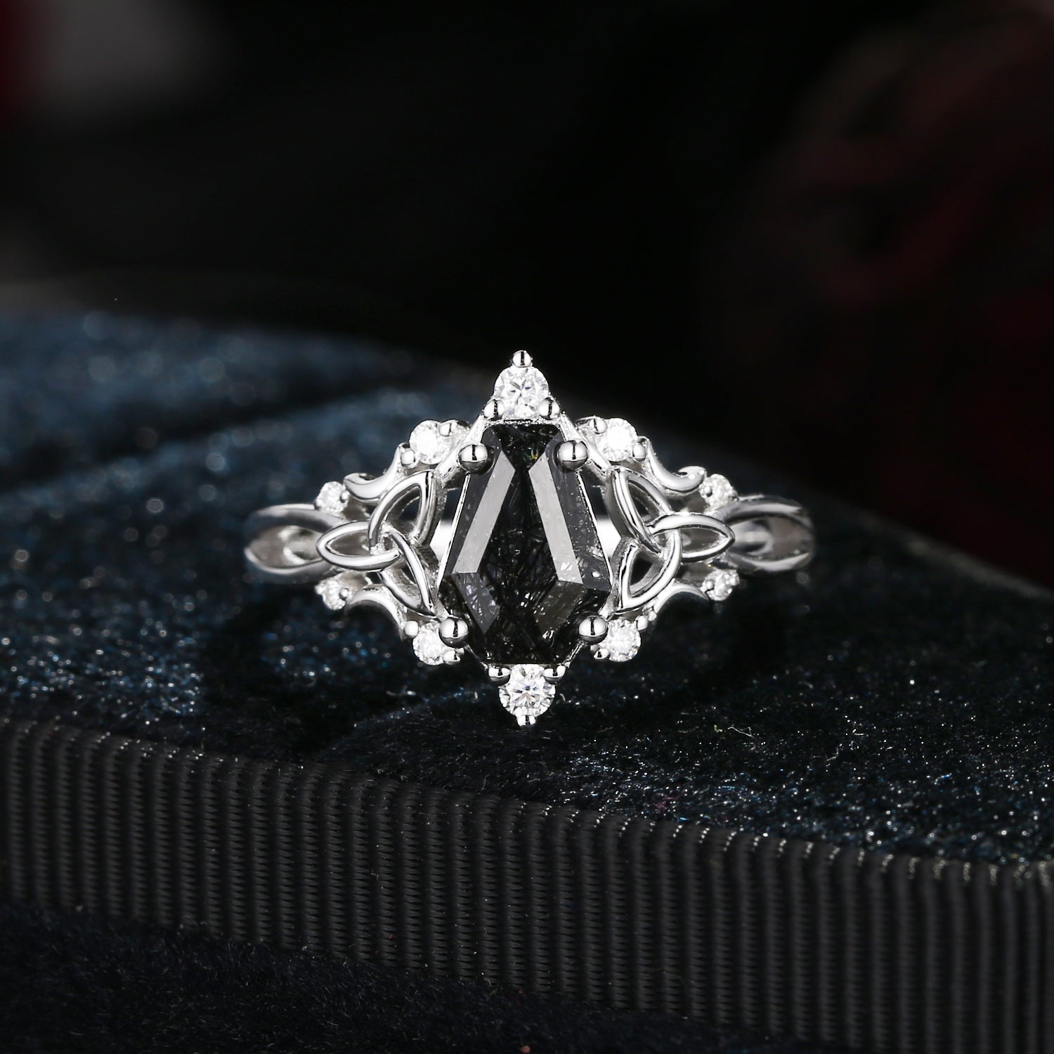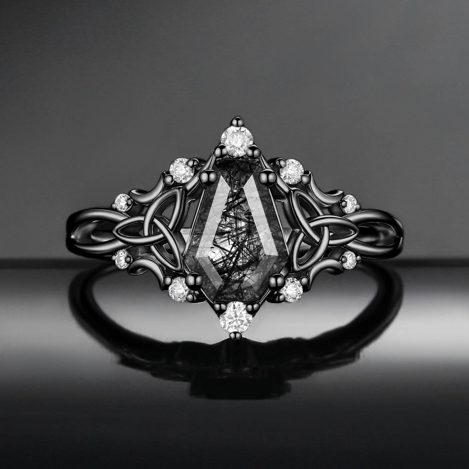 Celtic Moon | Coffin Black Rutilated Quartz Celtic Engagement Ring