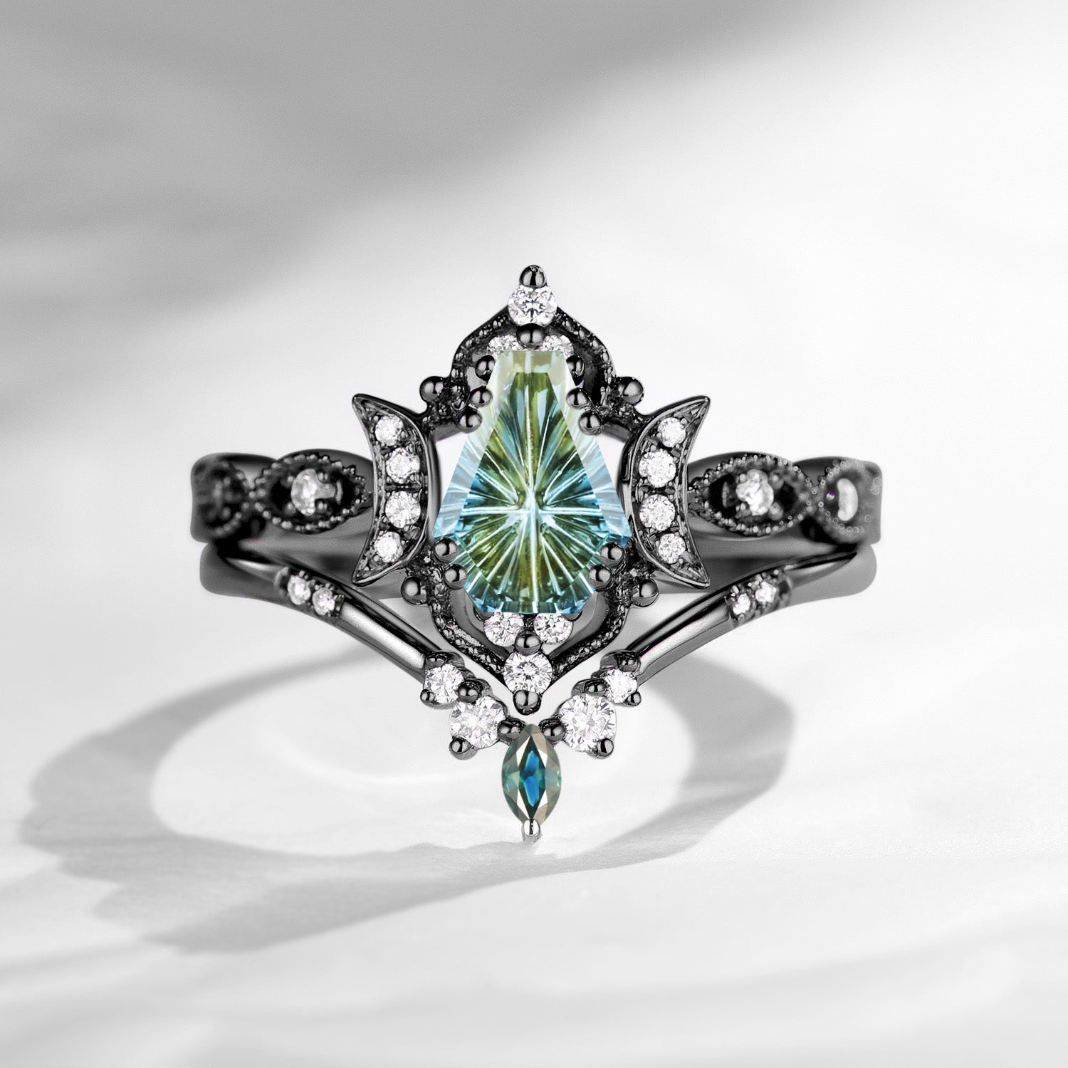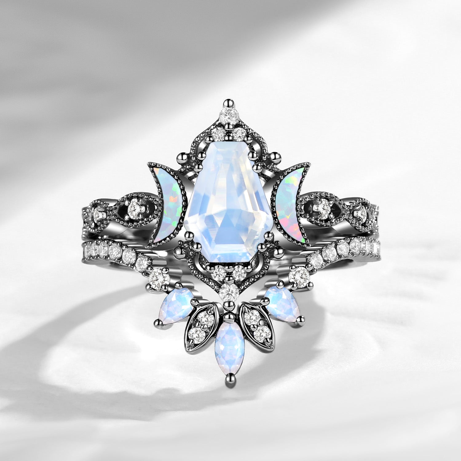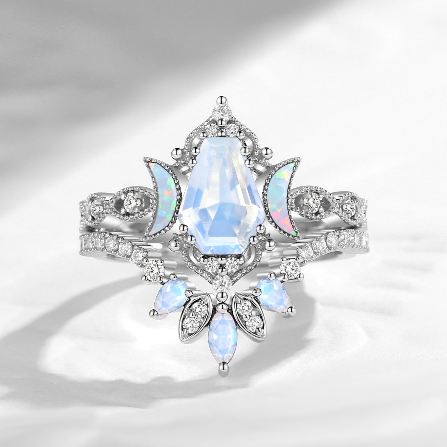 Crescent Moon | Coffin Cut Moonstone 'Ultra Galaxy' Engagement Ring Set 2pcs